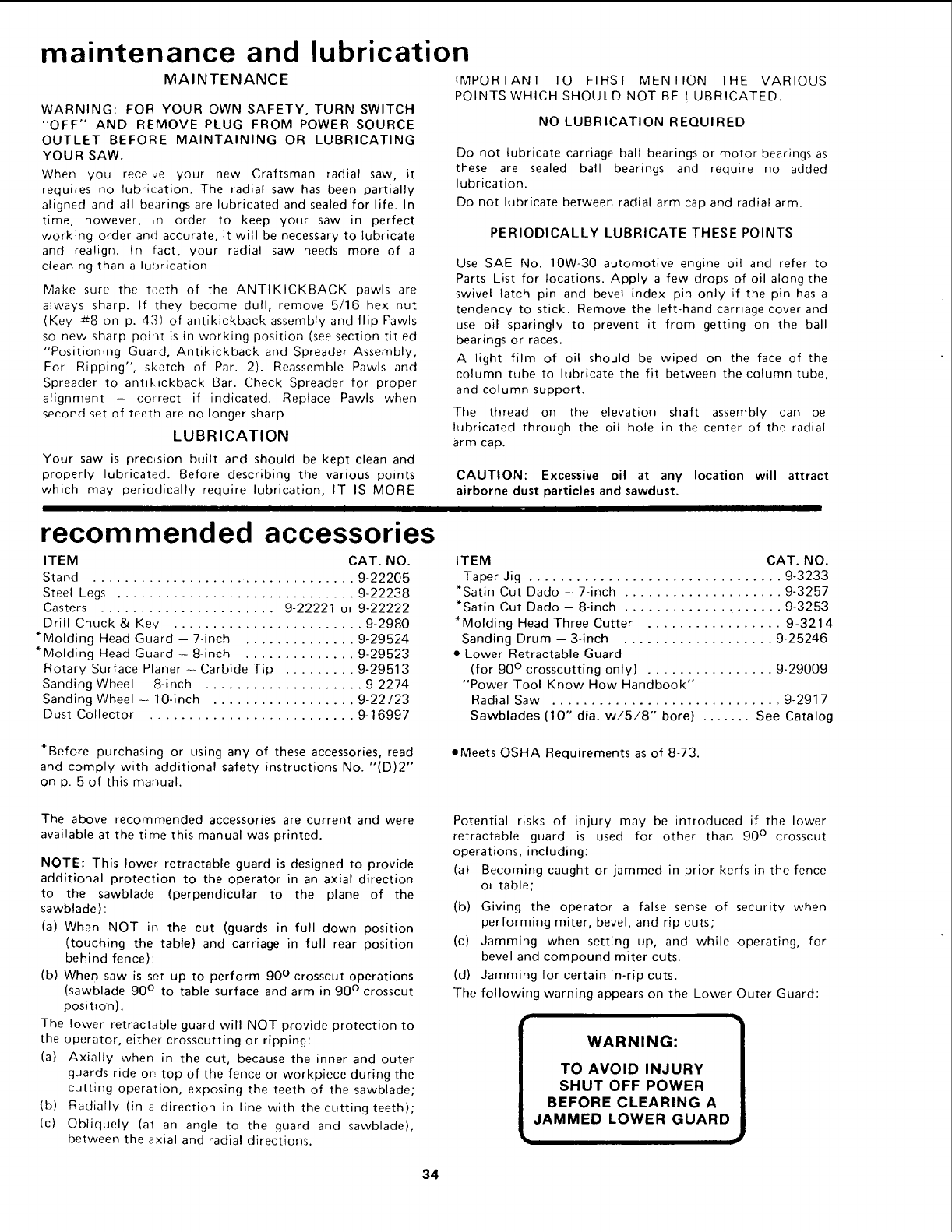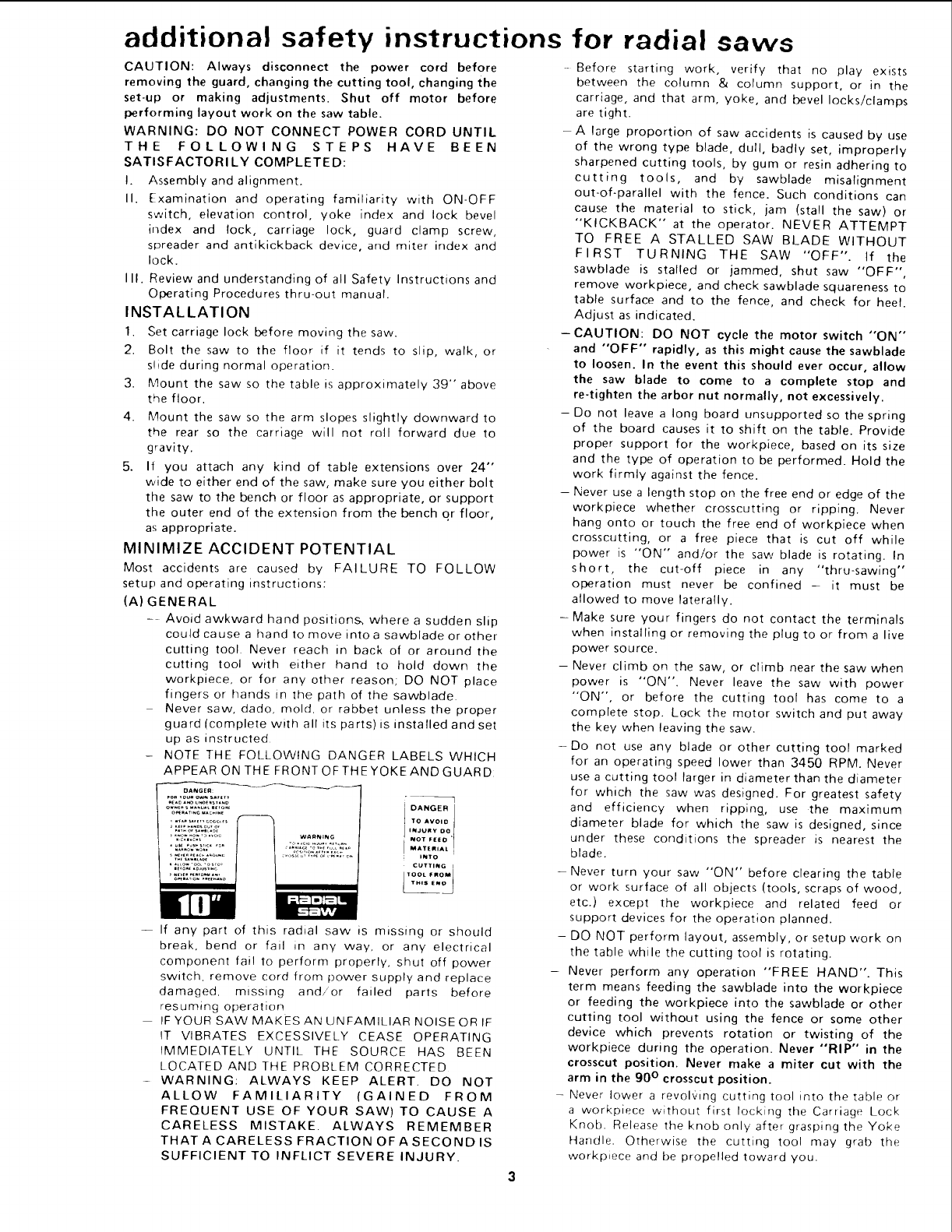 CRAFTSMAN Saw Radial Manual L0902098 CRAFTSMAN Saw Radial Owner's Manual, CRAFTSMAN Saw Radial installation guides