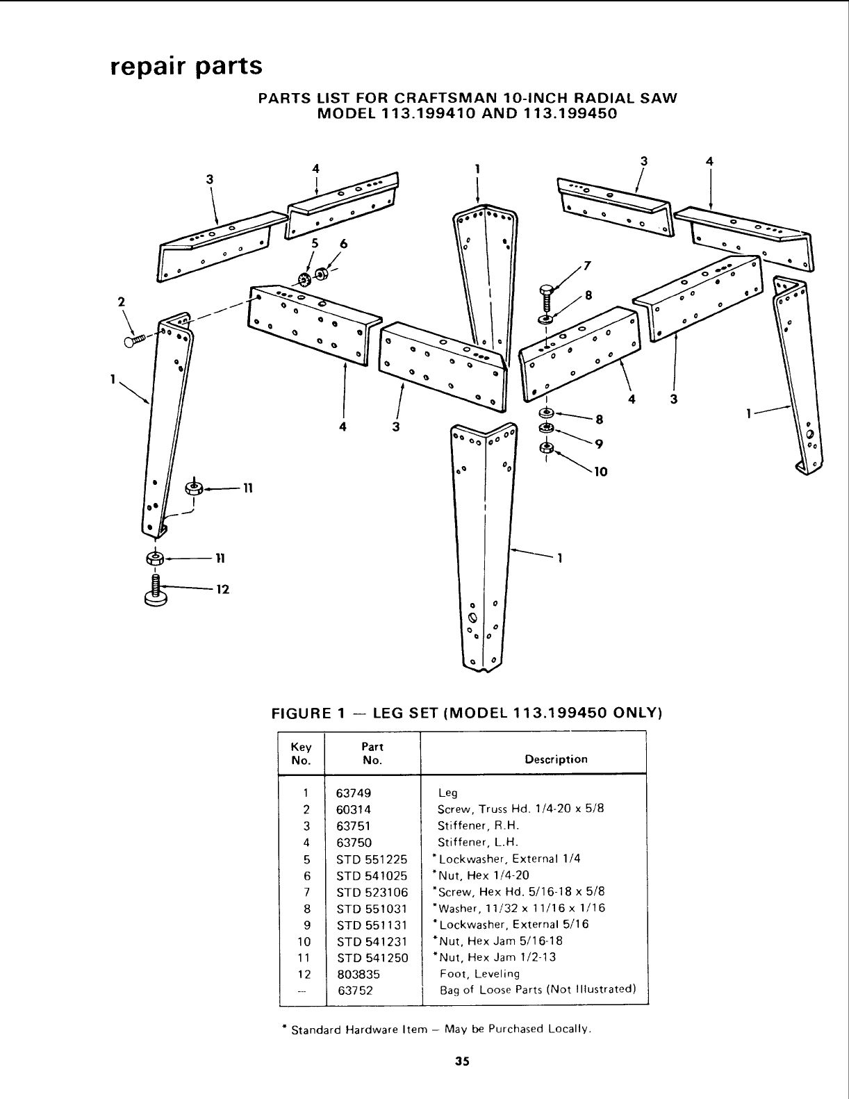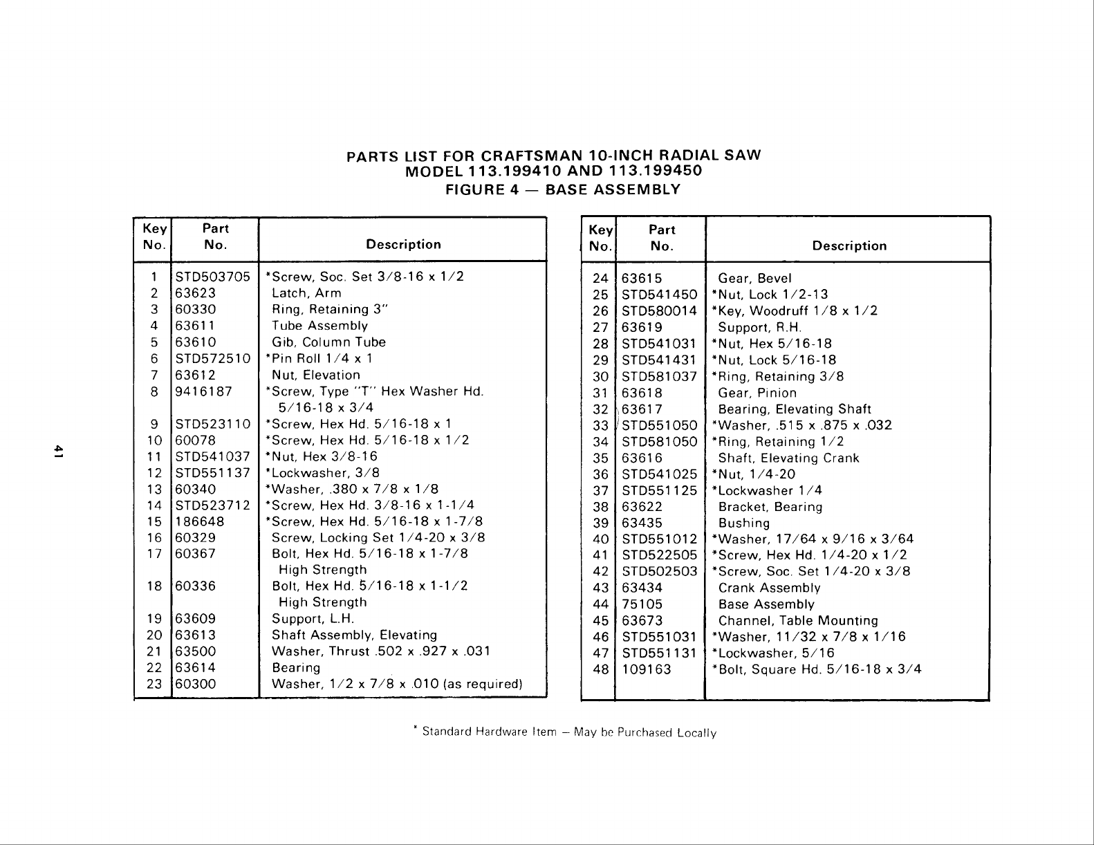 * Standard Hardware Item -- May be Purchased Locally.