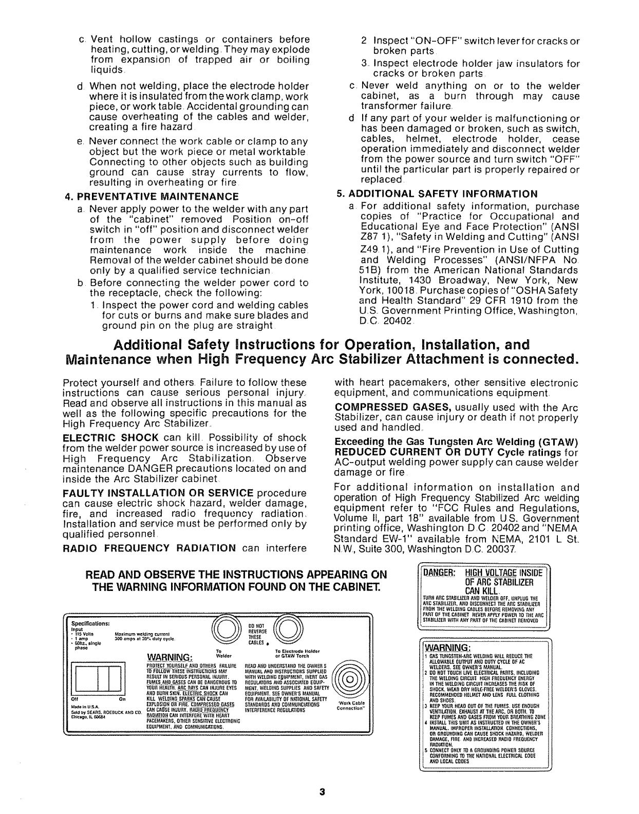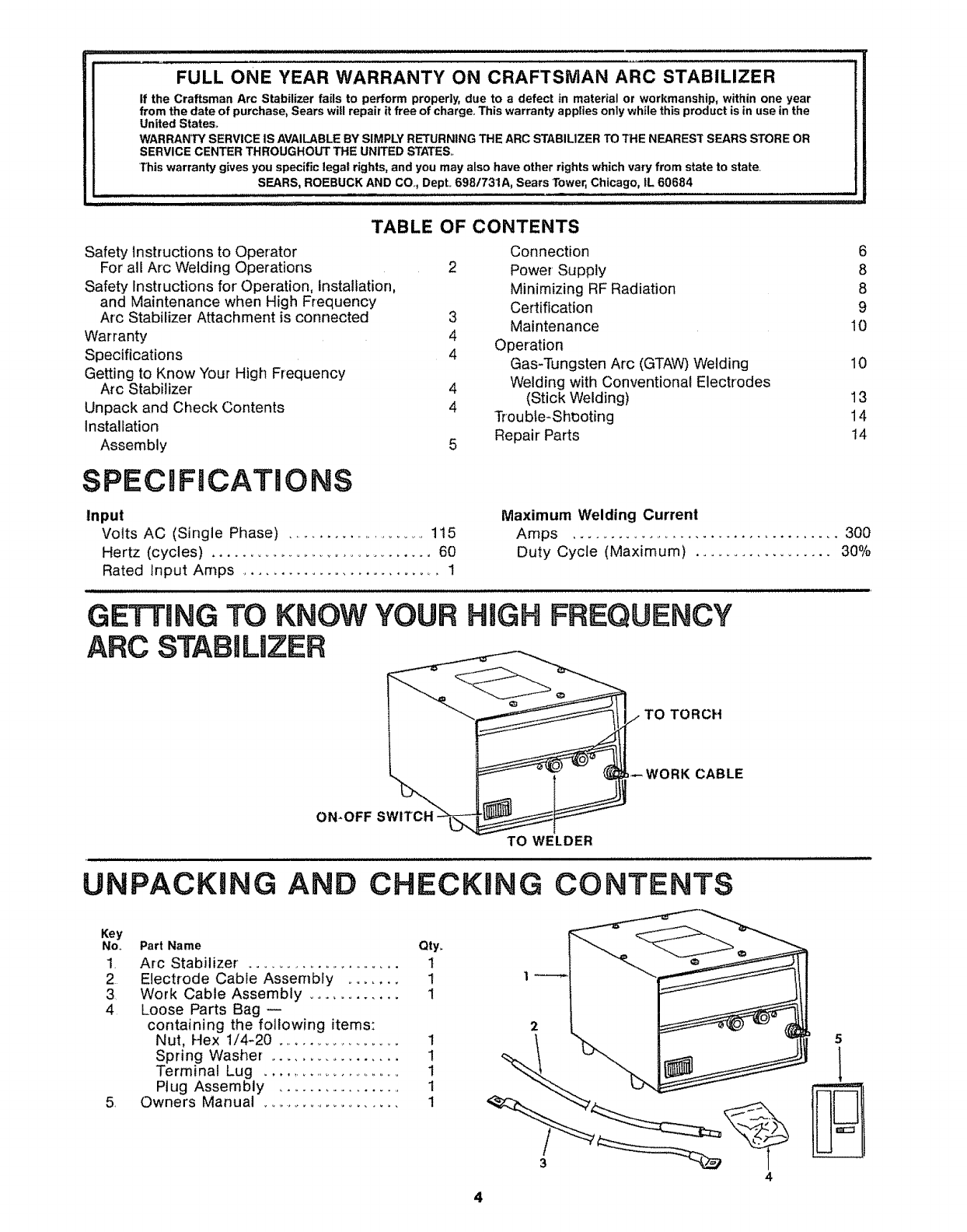 Craftsman 113201170 User Manual 300 AMP HIGH FREQUENCY ARC STABILIZER ATTACHMENT Manuals And Guides L0810363