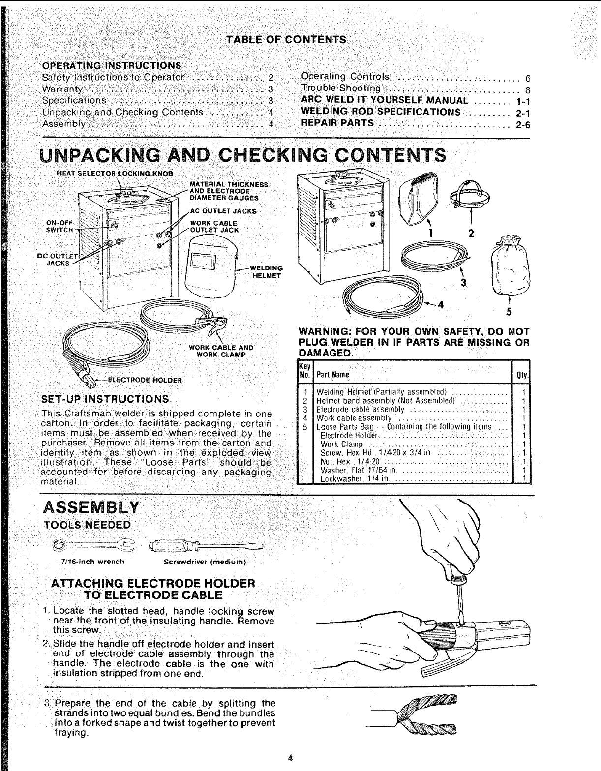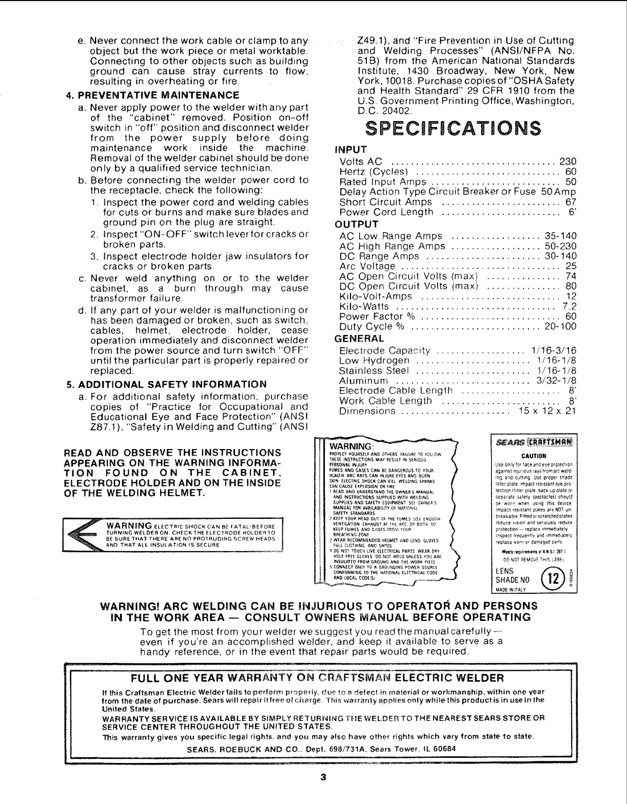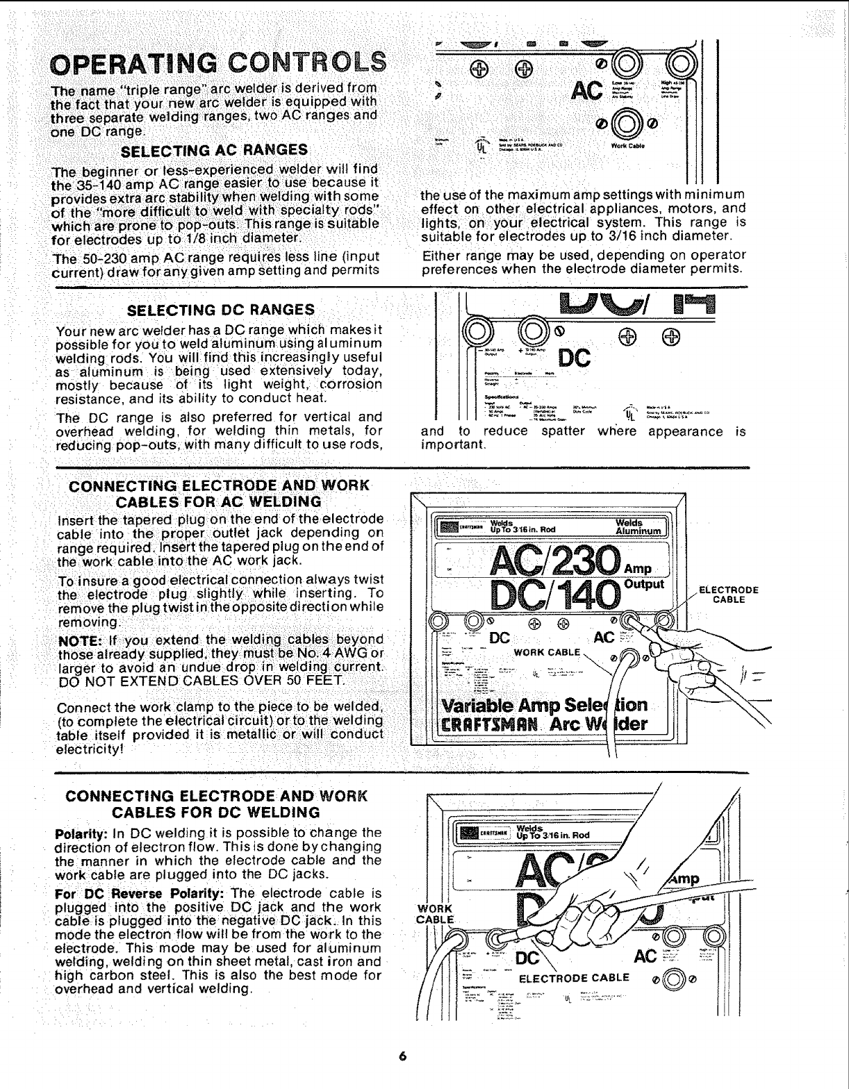 Craftsman 113201892 User Manual TRIPLE RANGE ARC WELDER Manuals And Guides L0904586
