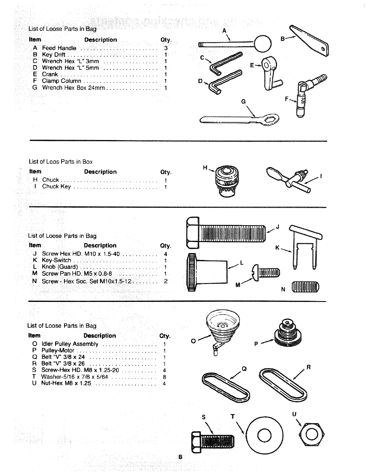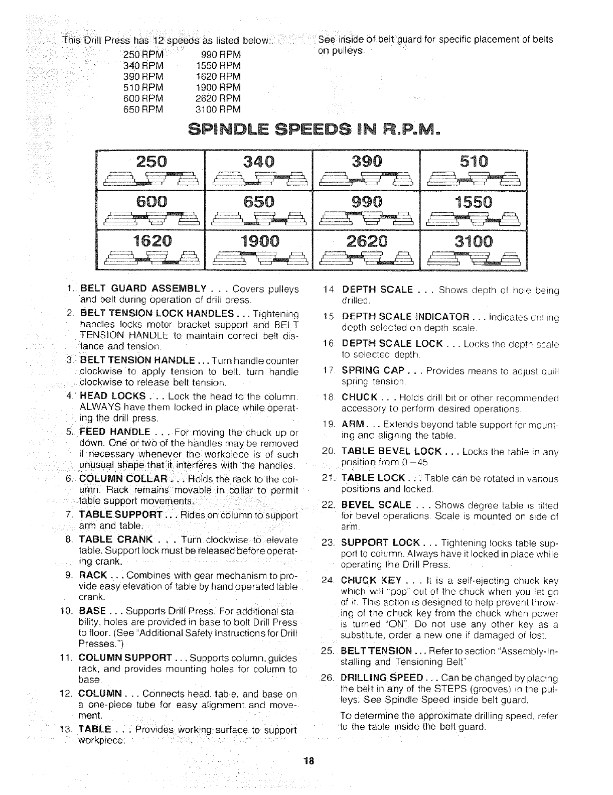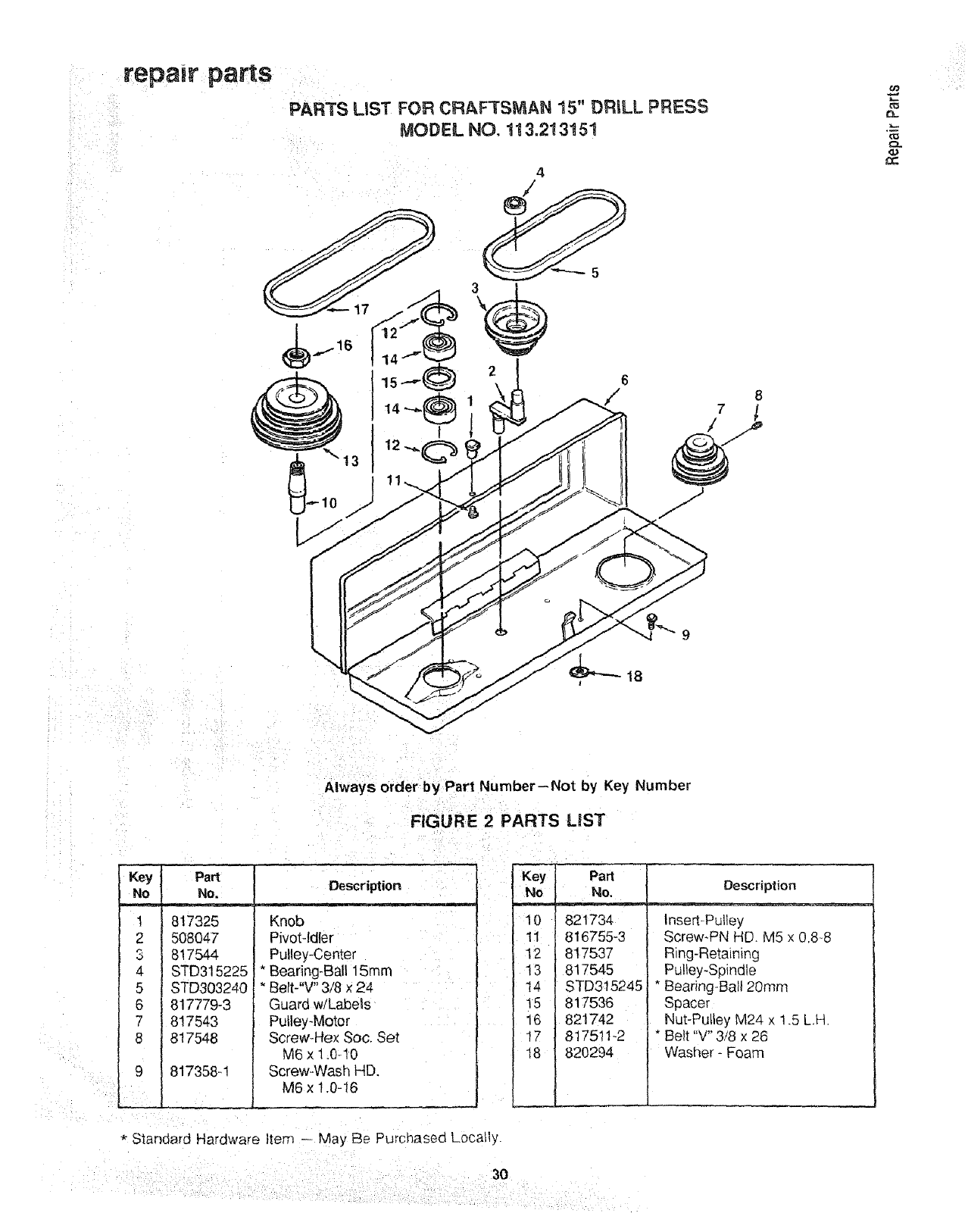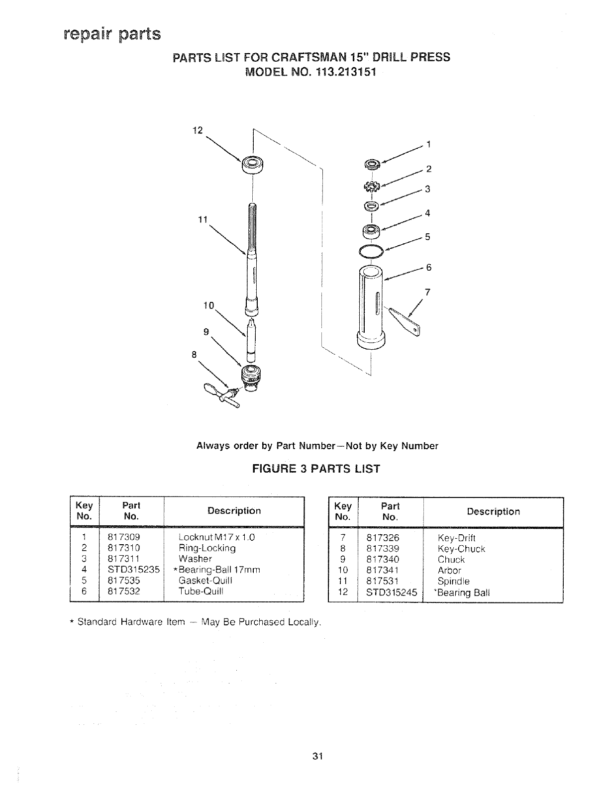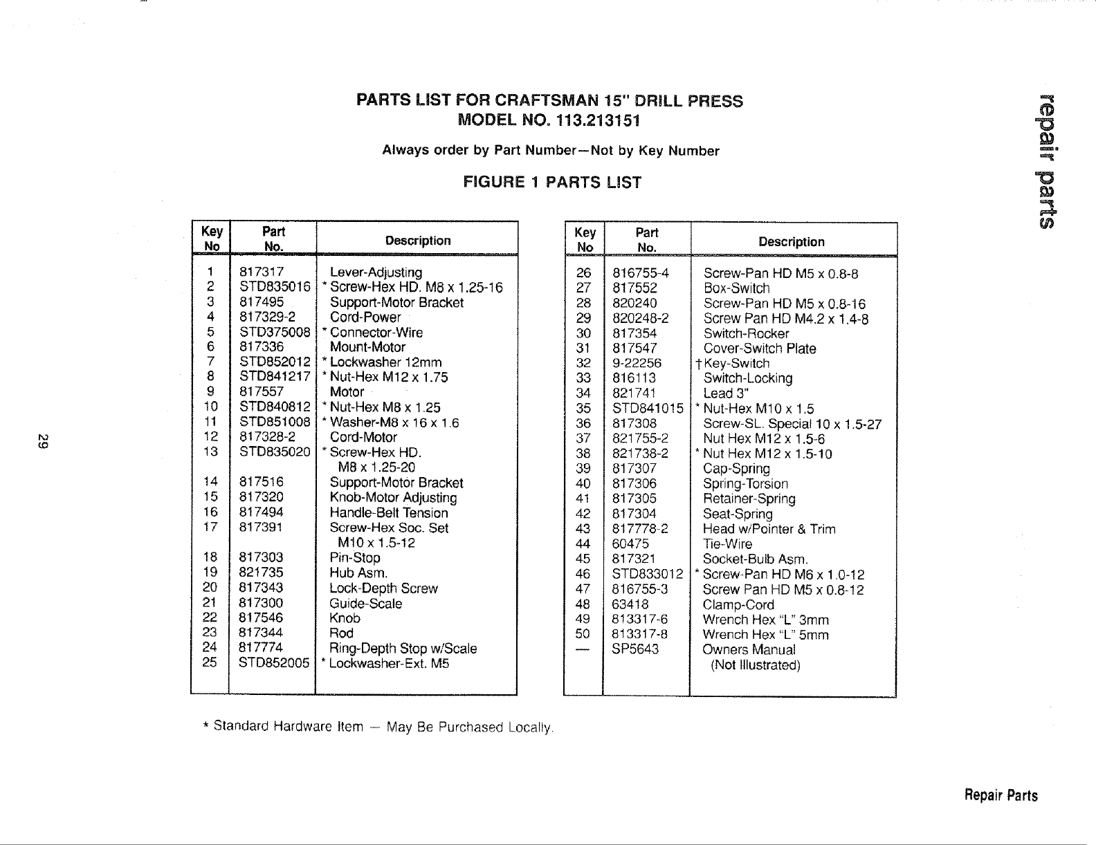 PARTS LIST FOR CRAFTSMAN 15" DRILL PRESS