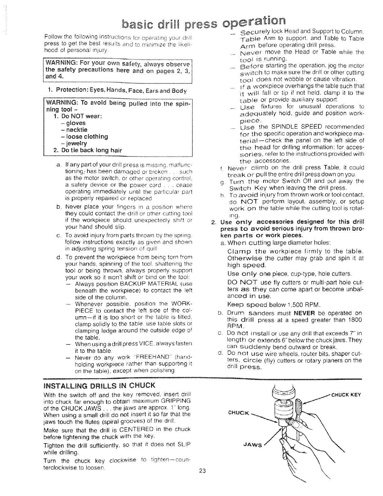 User Manual: Craftsman 113213151 113213151 CRAFTSMAN 15 FLOOR DRILL PRESS - Manuals and Guides View the owners manual for your CRAFTSMAN 15 FLOOR DRILL PRESS #113213151. Home:Tool Parts:Craftsman Parts:Craftsman 15 FLOOR DRILL PRESS Manual