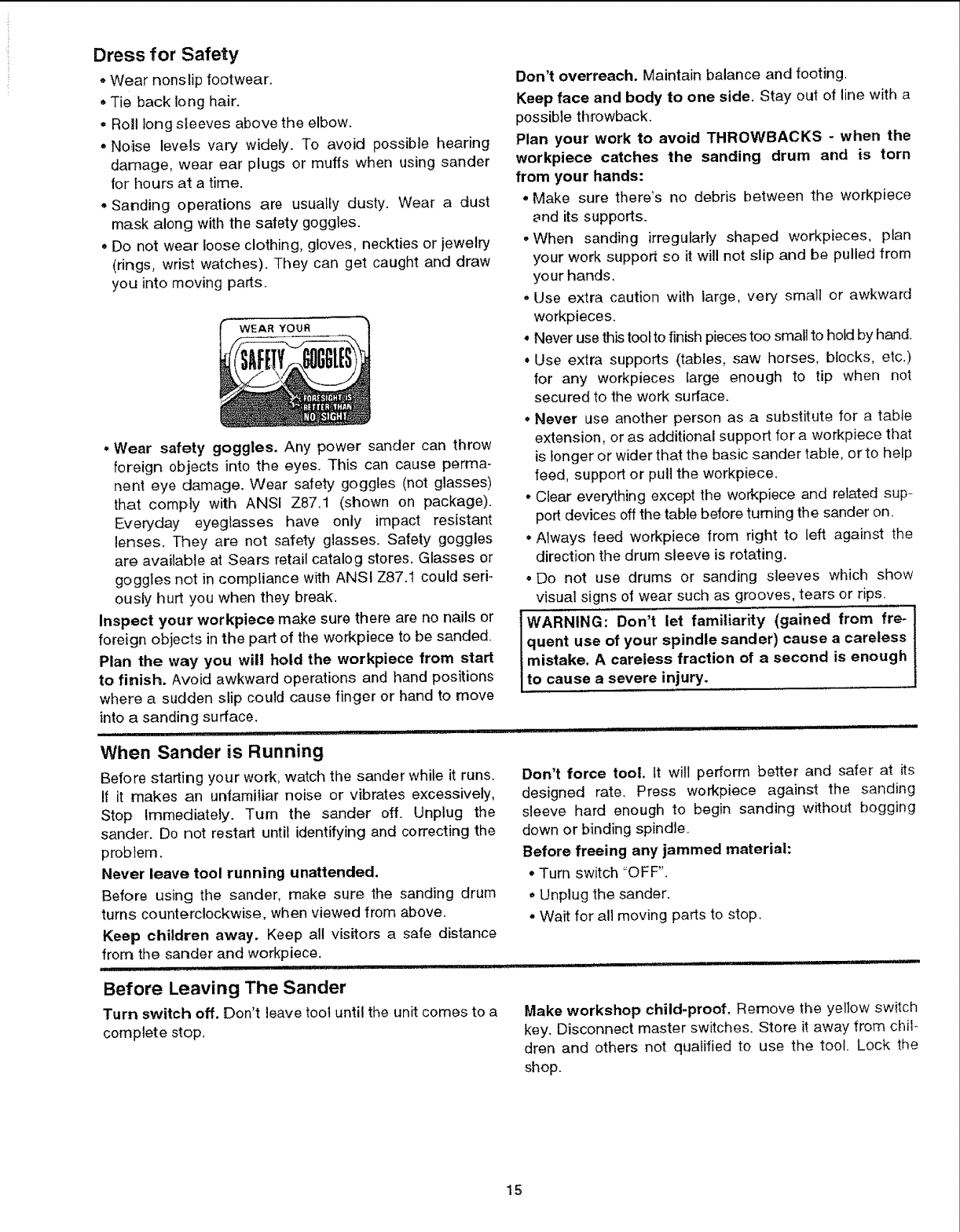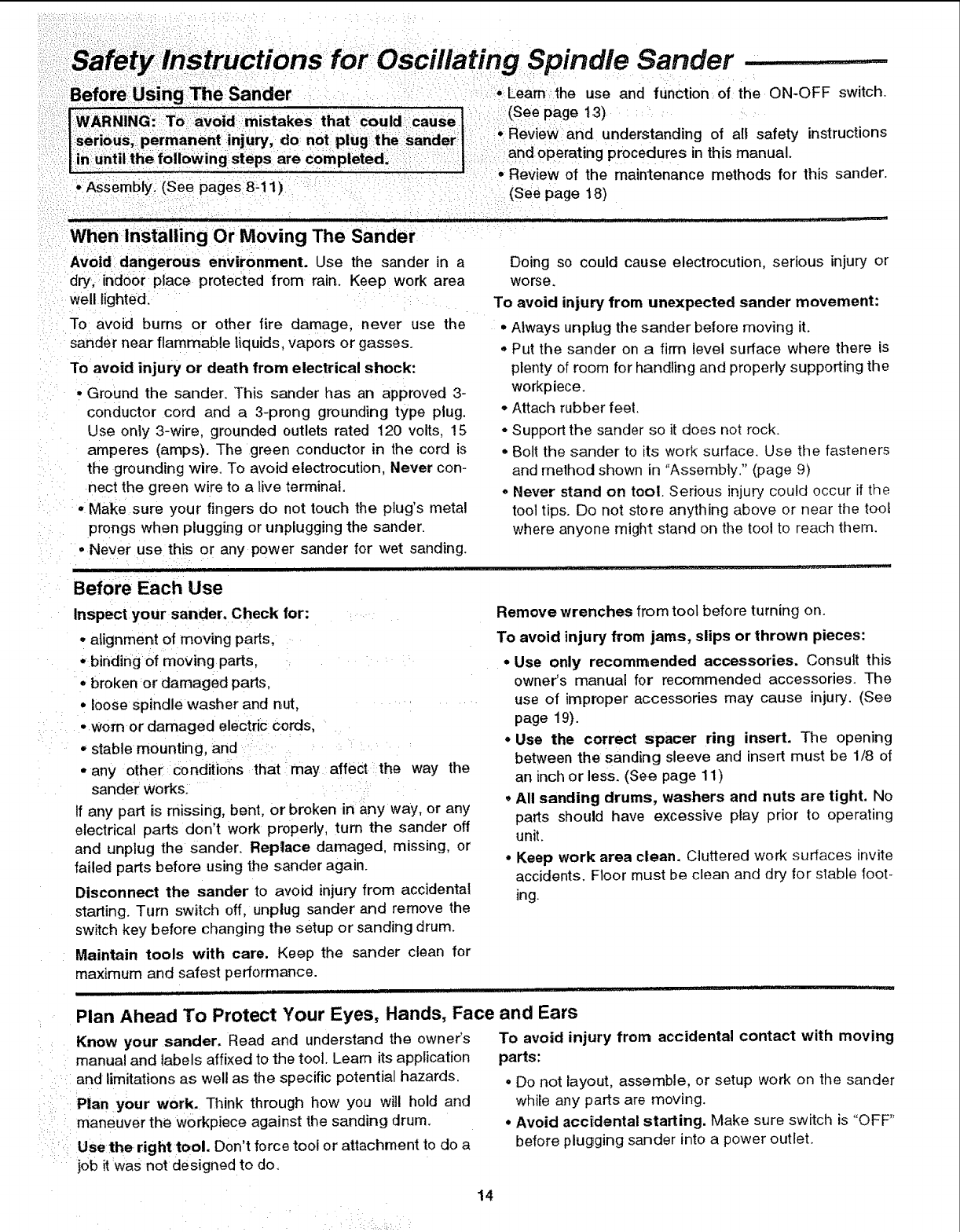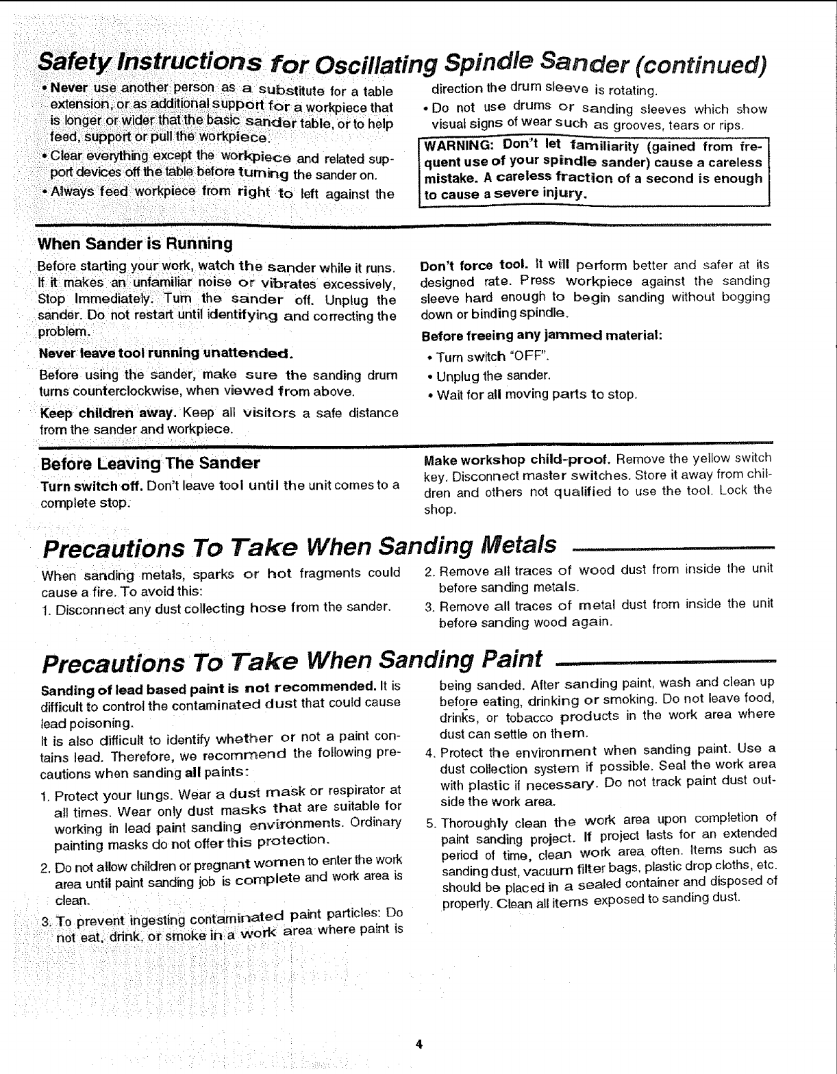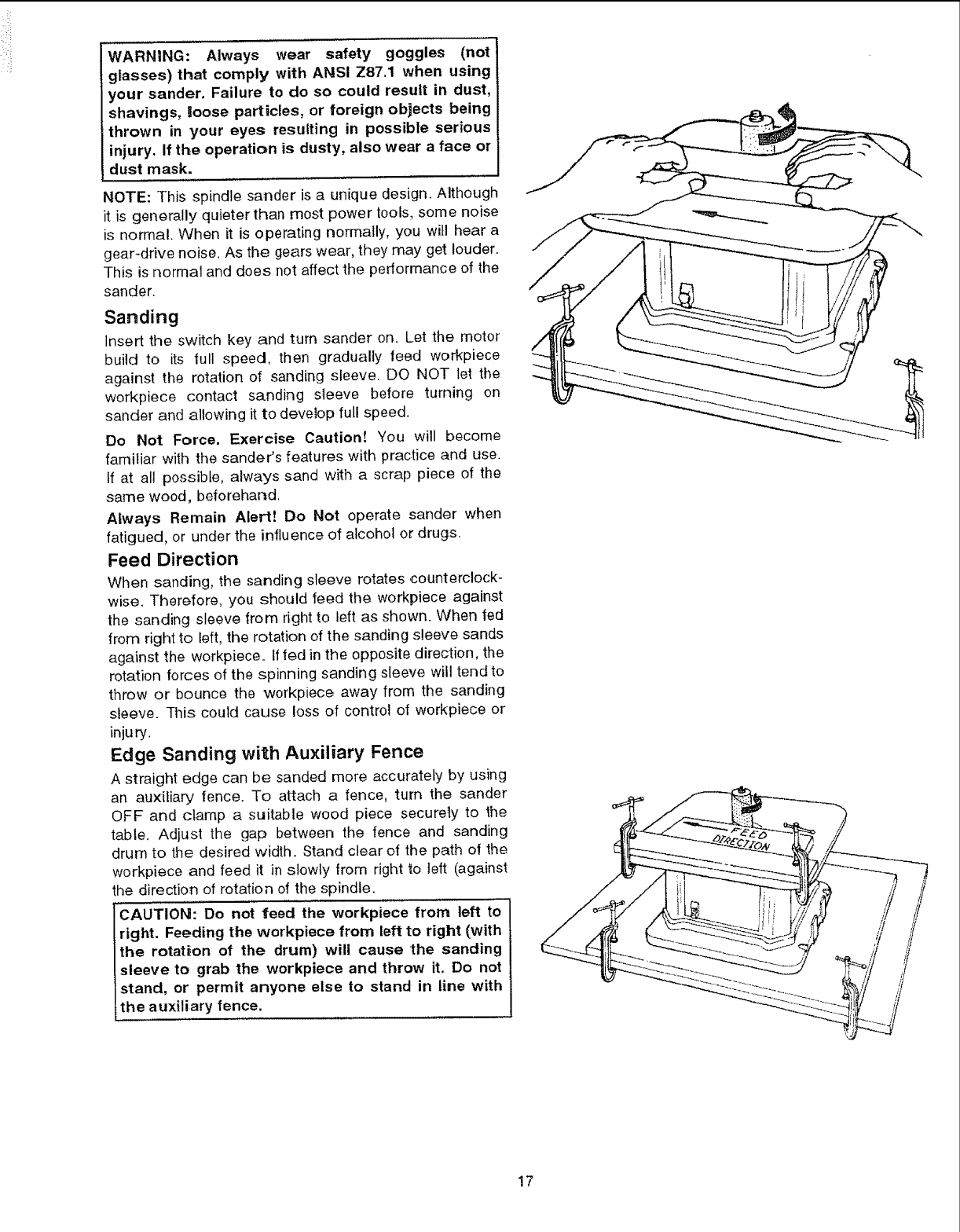 Safety is a combination of common sense, staying alert and knowing how your oscillating spindle sander works. Read