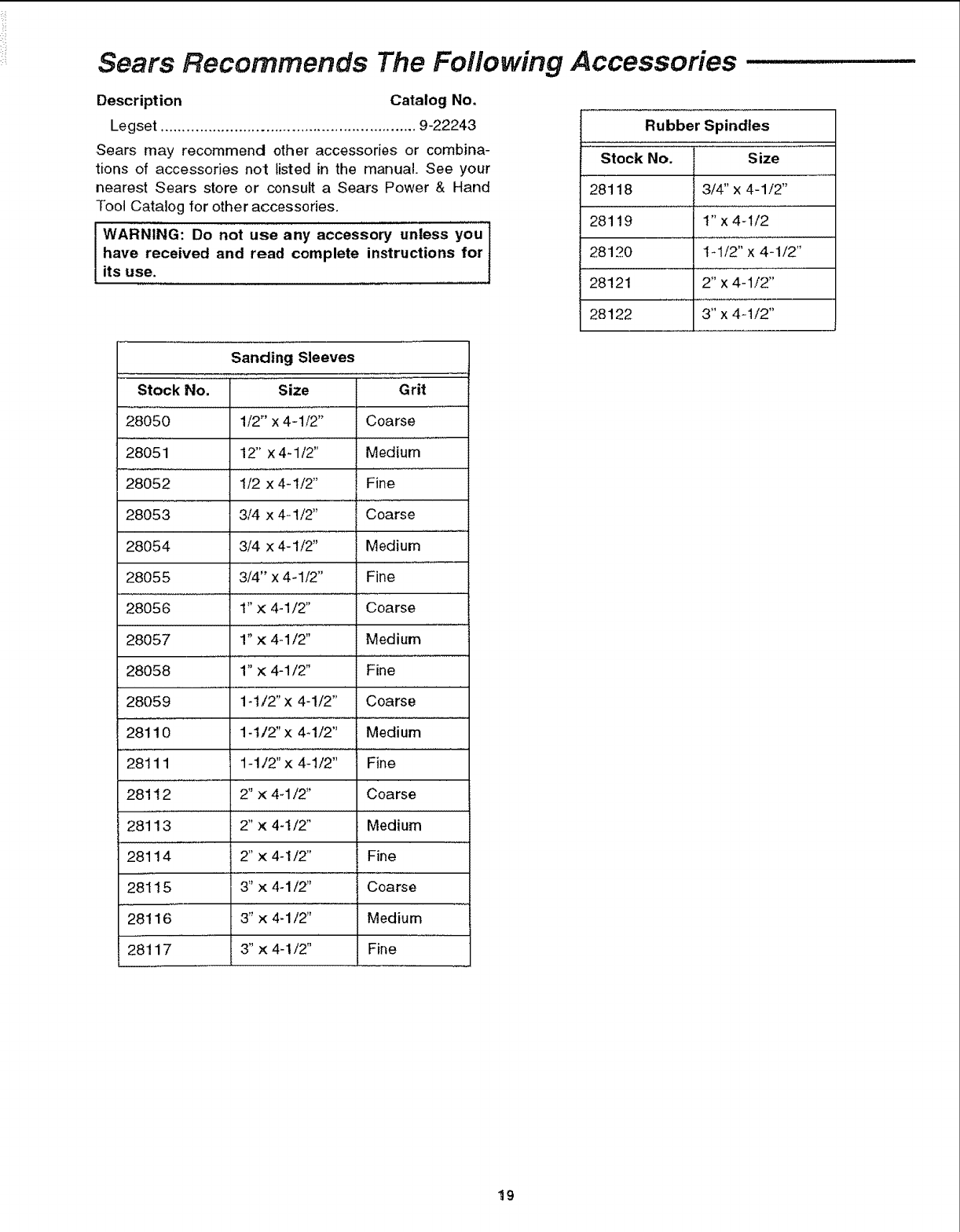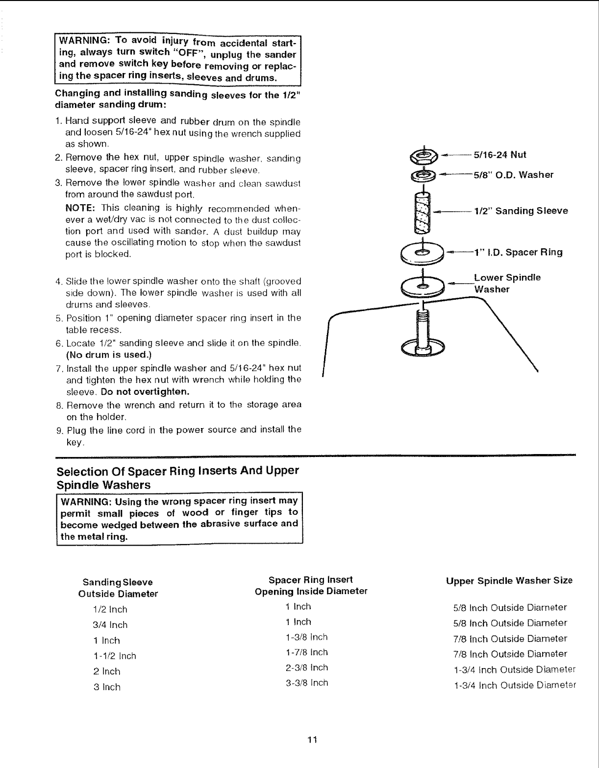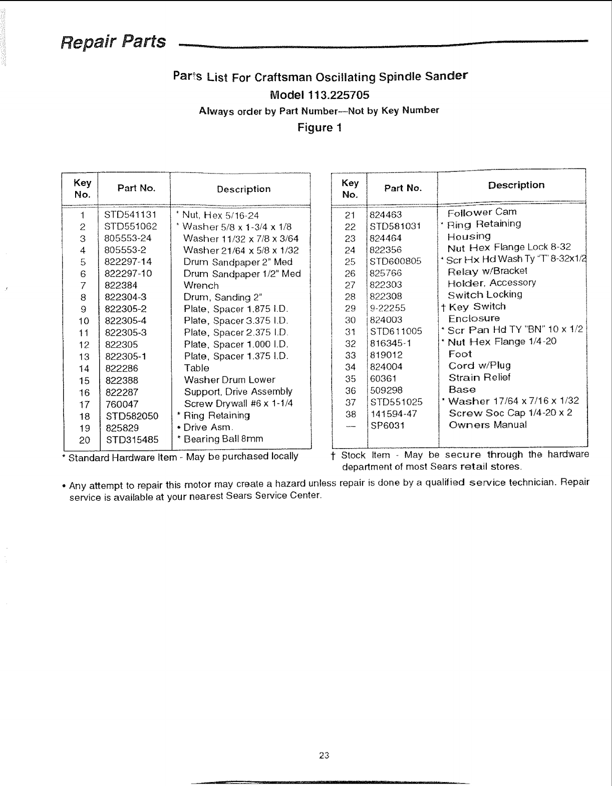 User Manual: Craftsman 113225705 113225705 CRAFTSMAN OSCILLATING SPINDLE SANDER - Manuals and Guides View the owners manual for your CRAFTSMAN OSCILLATING SPINDLE SANDER #113225705. Home:Tool Parts:Craftsman Parts:Craftsman OSCILLATING SPINDLE SANDER Manual
