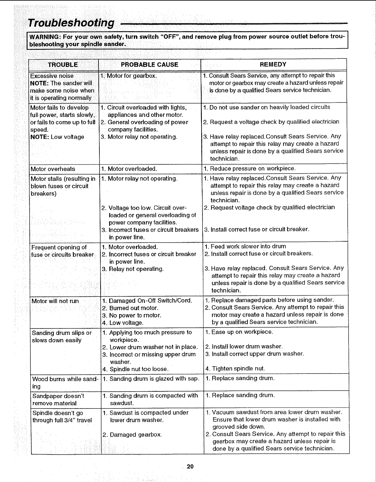 Craftsman 113225705 User Manual OSCILLATING SPINDLE SANDER Manuals And Guides L0901089
