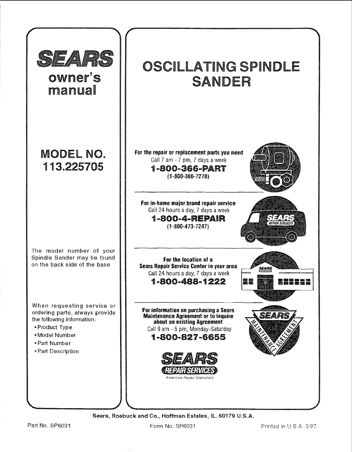 Part No. SP6031 Form No. SP603! Printed in U,S.A. 3!97