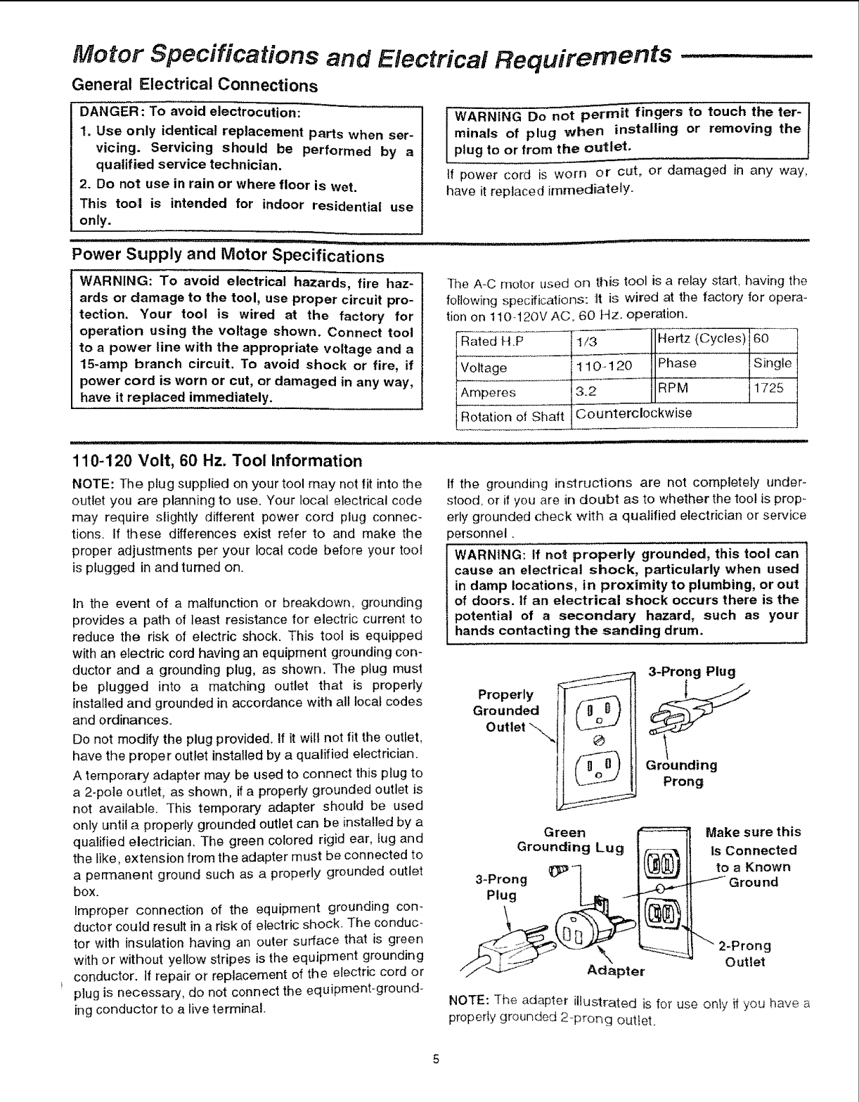 Use only 3_wire, grounded outlets rated 120 volts, 15