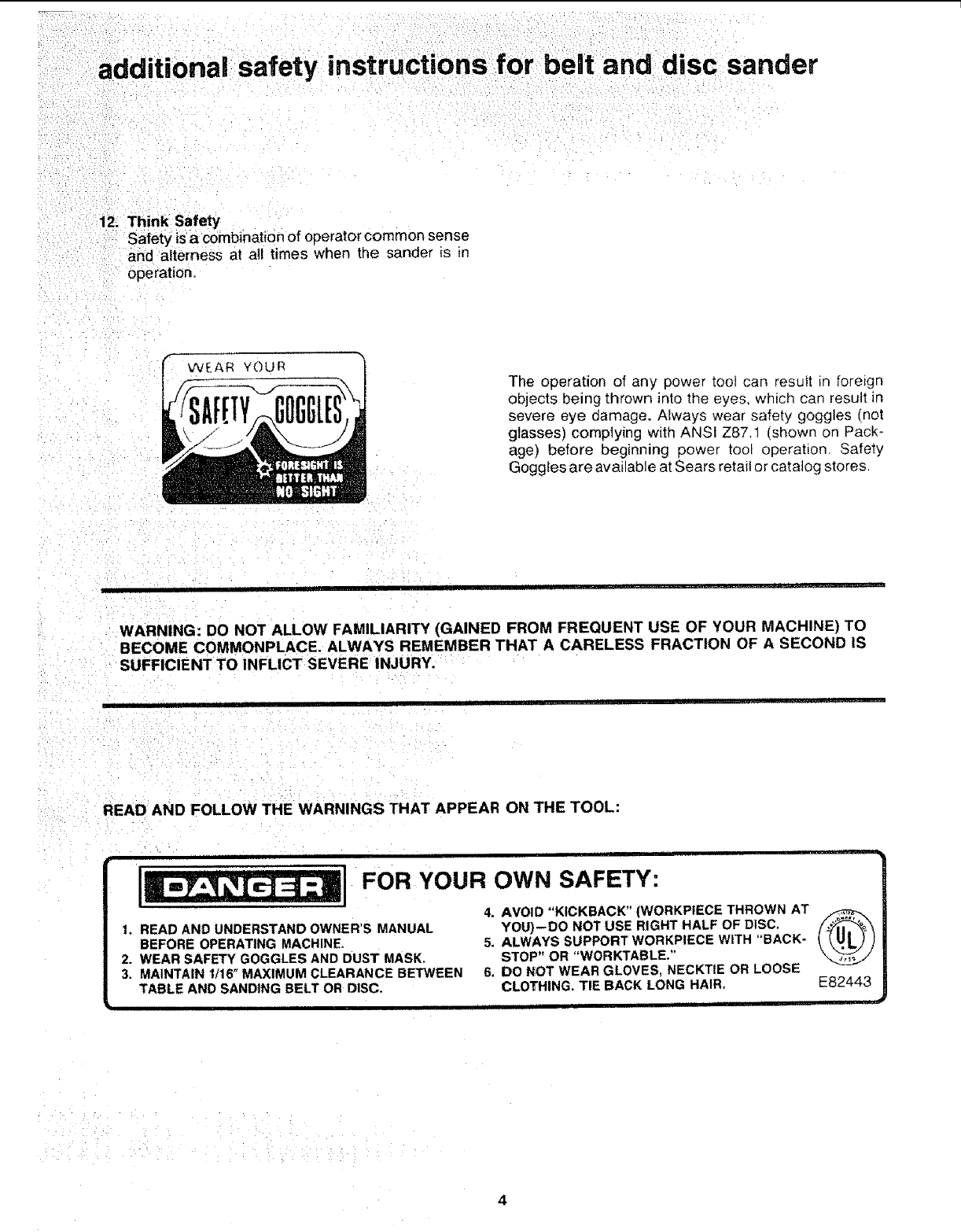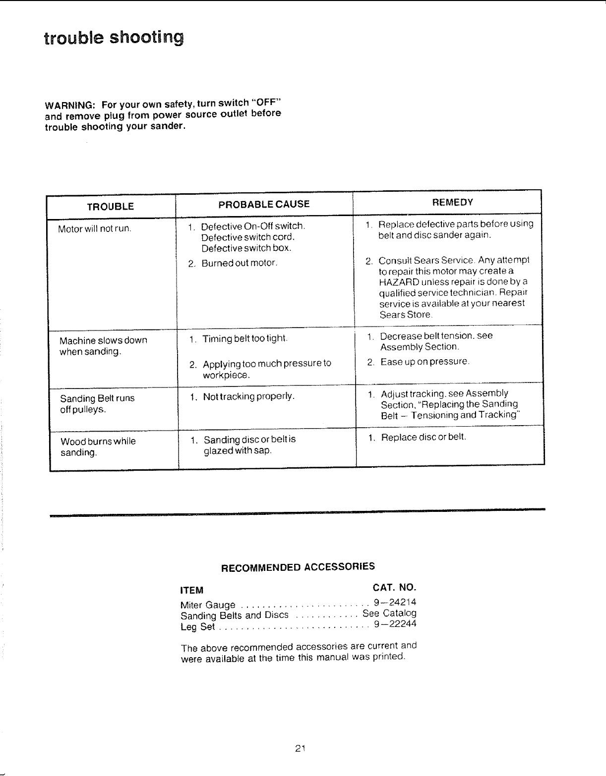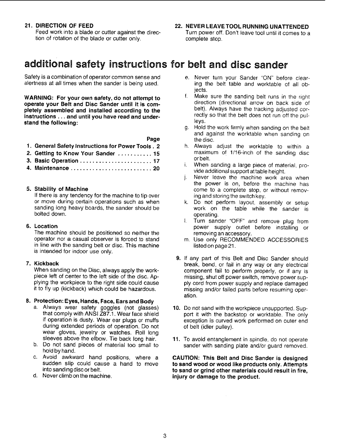 Craftsman 113226423 User Manual BELT AND DISC SANDER Manuals Guides L0803415