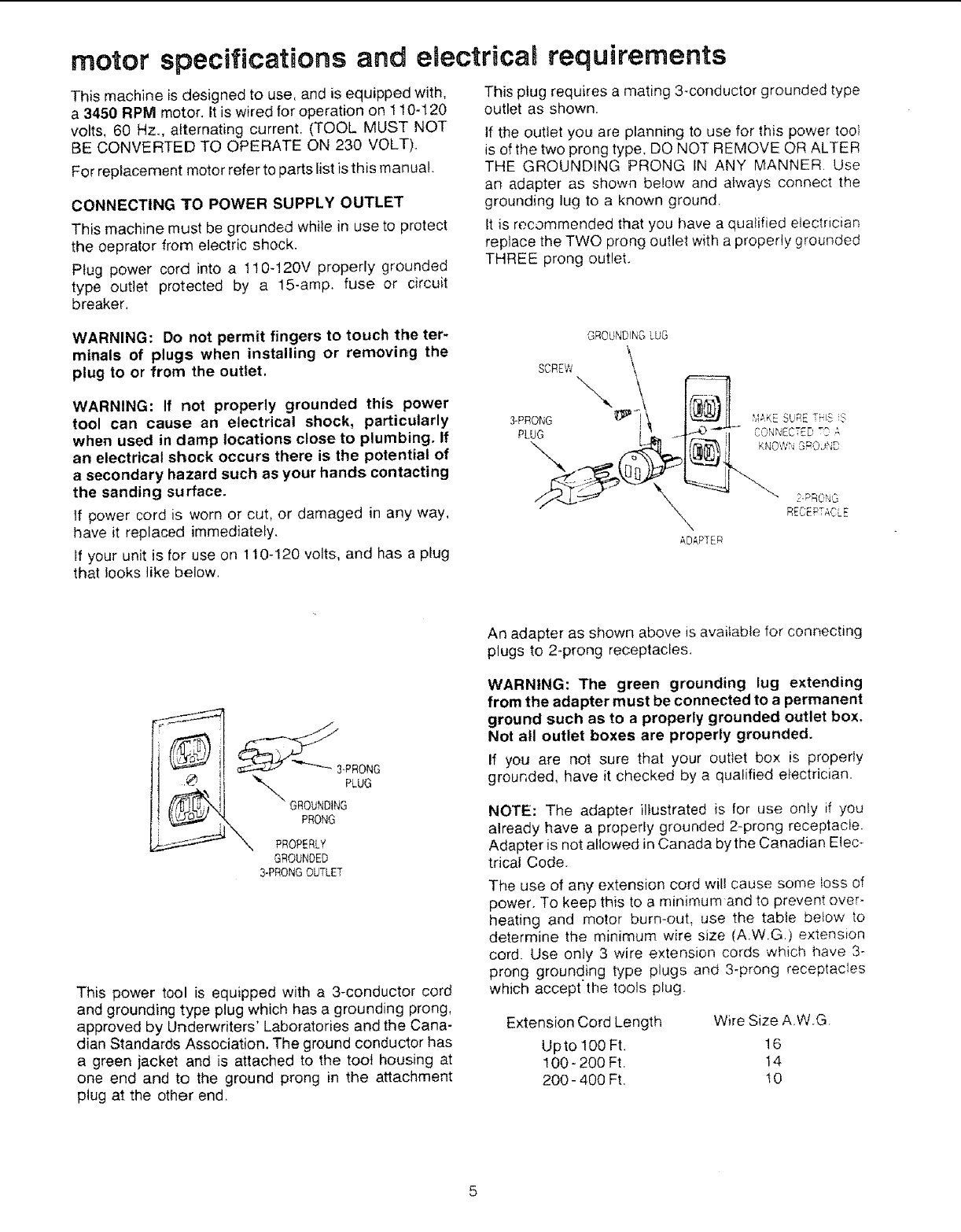 cord and a 3-prong grounding type plug to fit the
