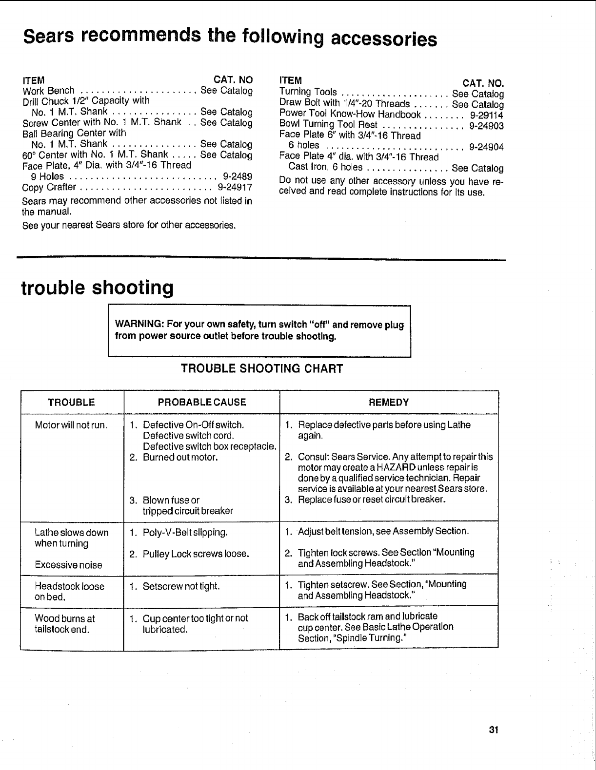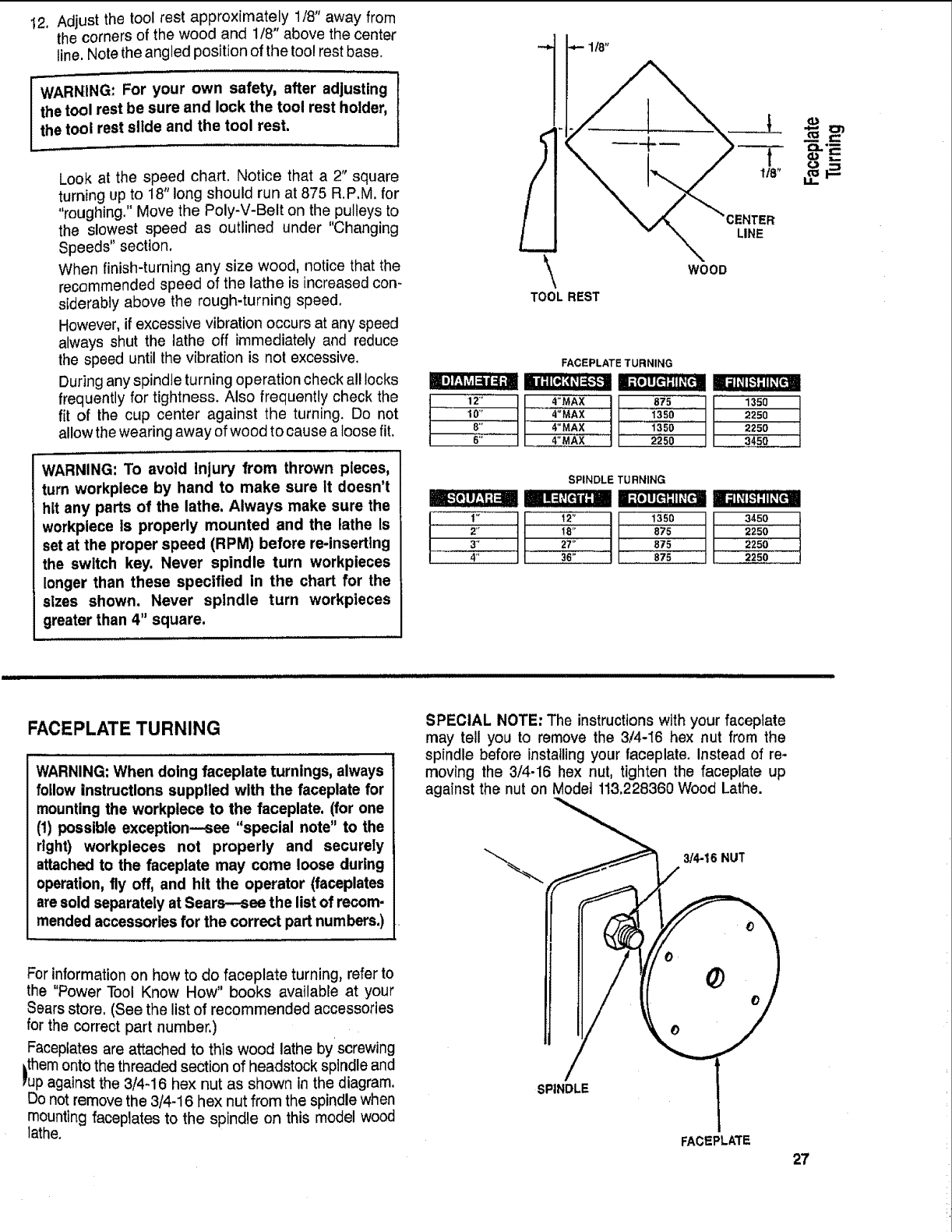 Craftsman 113228360 User Manual 12 INCH WOOD LATHE Manuals And Guides L1001071
