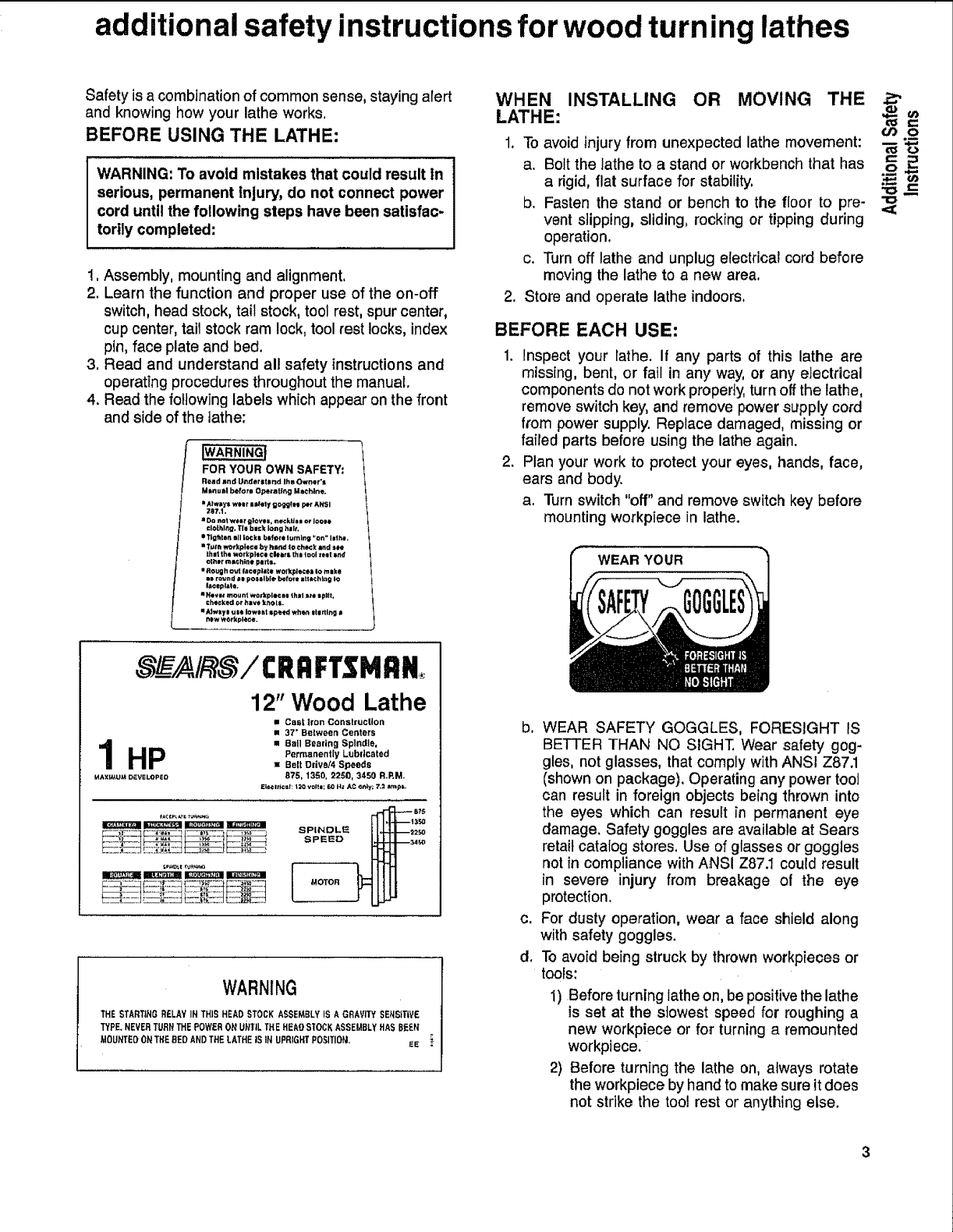 CRAFTSMAN Lathe Manual L1001071 CRAFTSMAN Lathe Owner's Manual, CRAFTSMAN Lathe installation guides