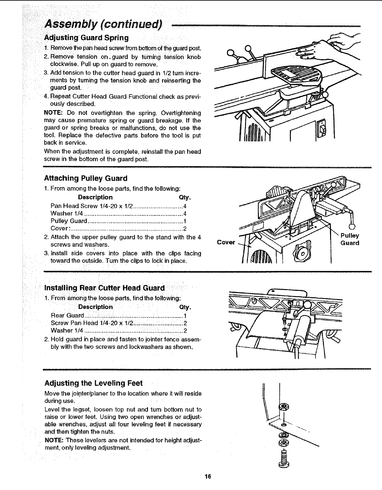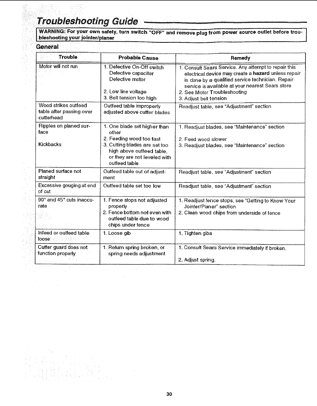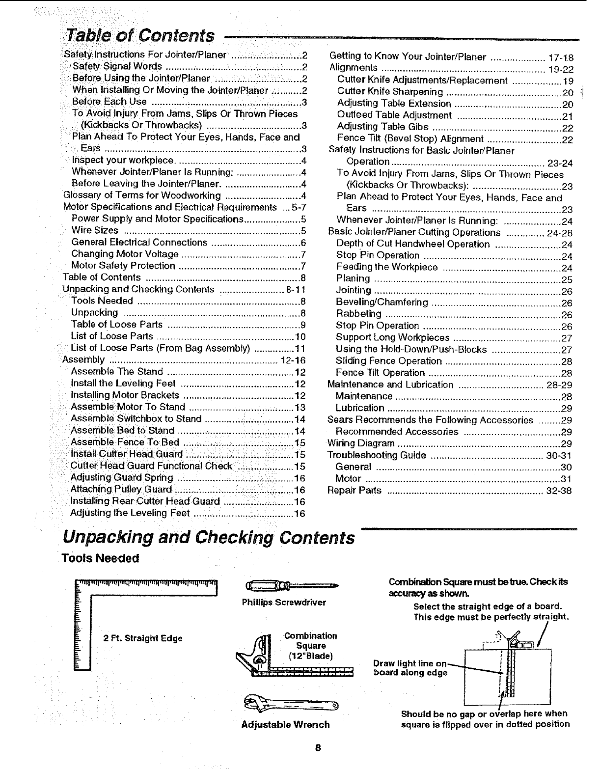 CRAFTSMAN Jointer/Planer Manual L0806062 CRAFTSMAN Jointer/Planer Owner's Manual, CRAFTSMAN Jointer/Planer installation guides