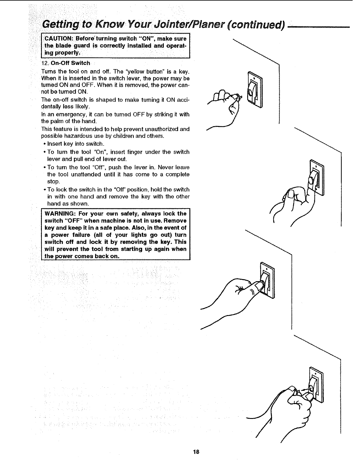 Before Using the Jointer/Pianer