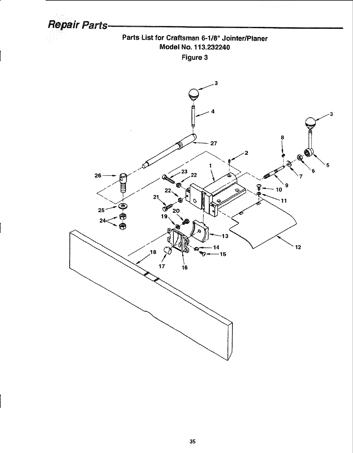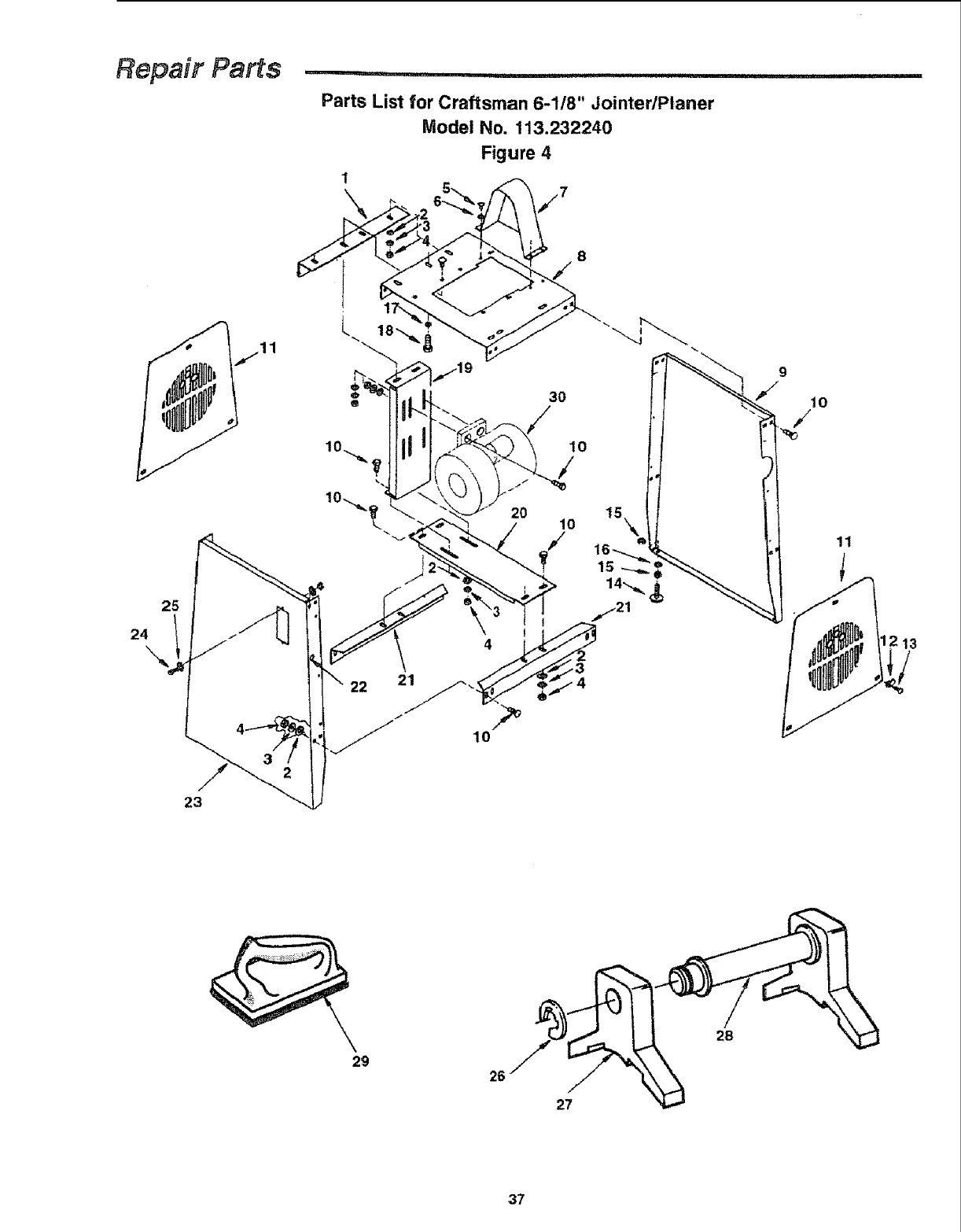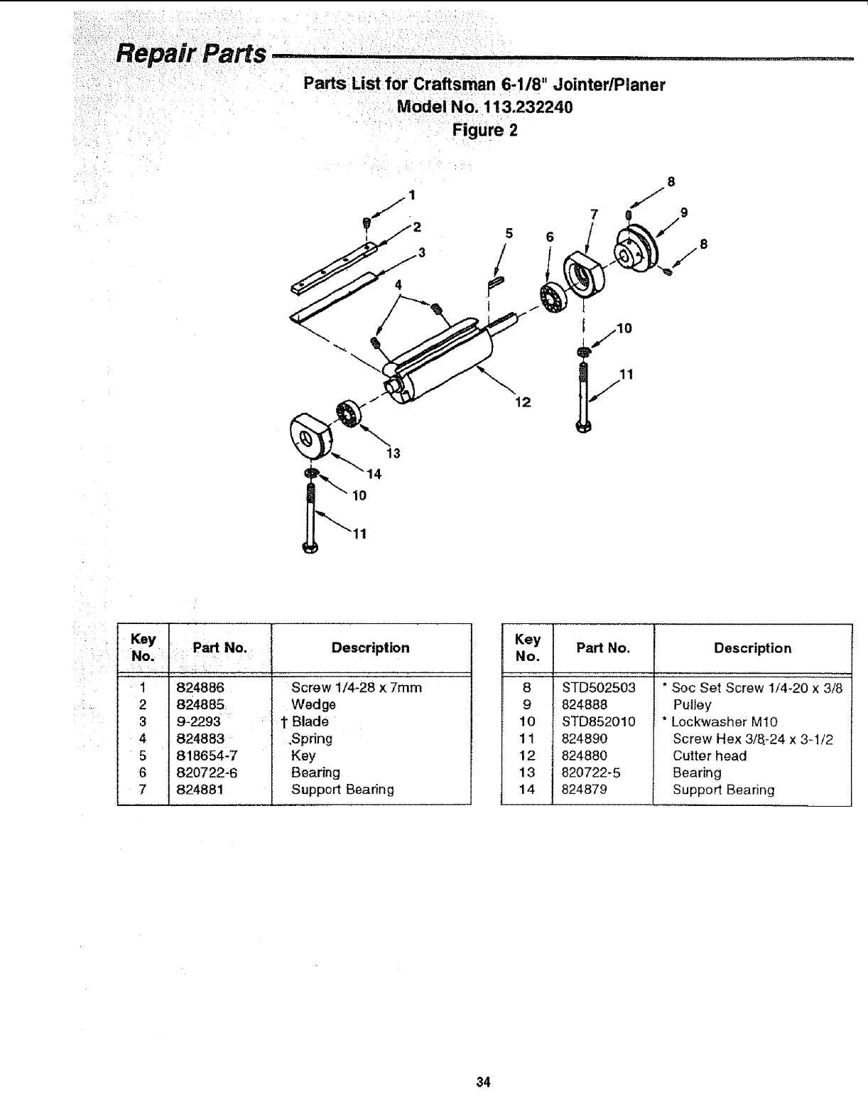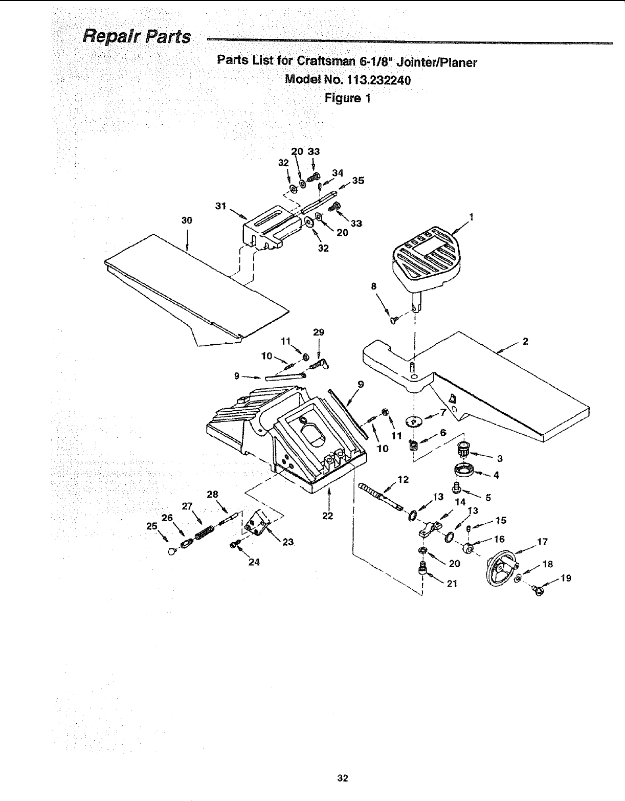 Parts List for Craftsman 6-118" JointedPlaner