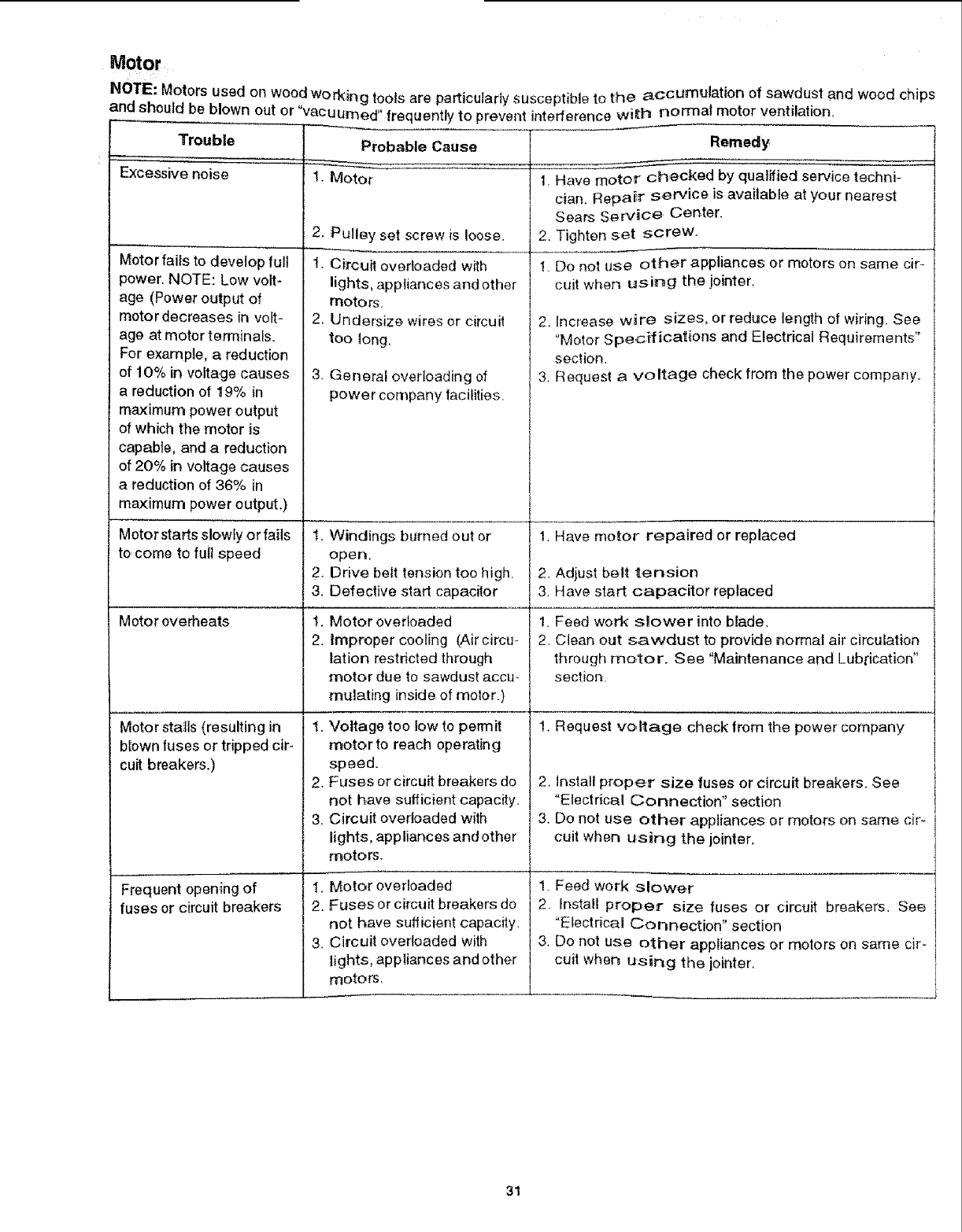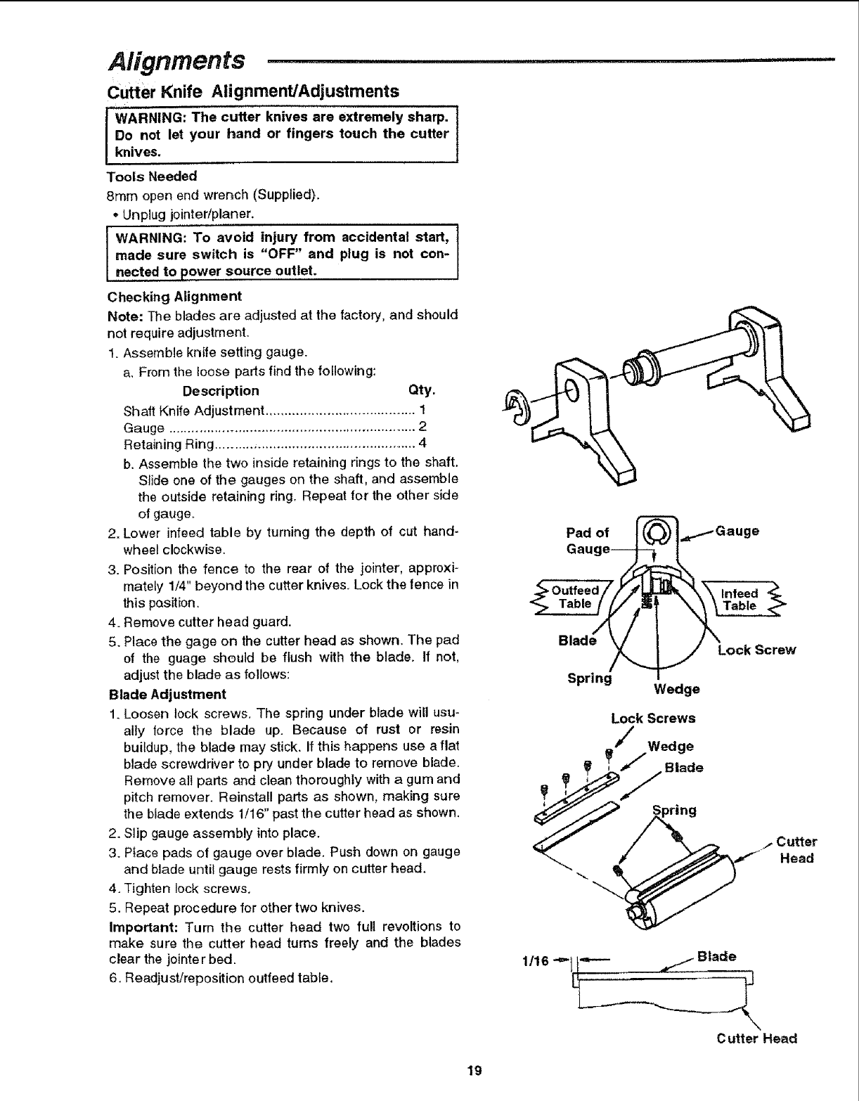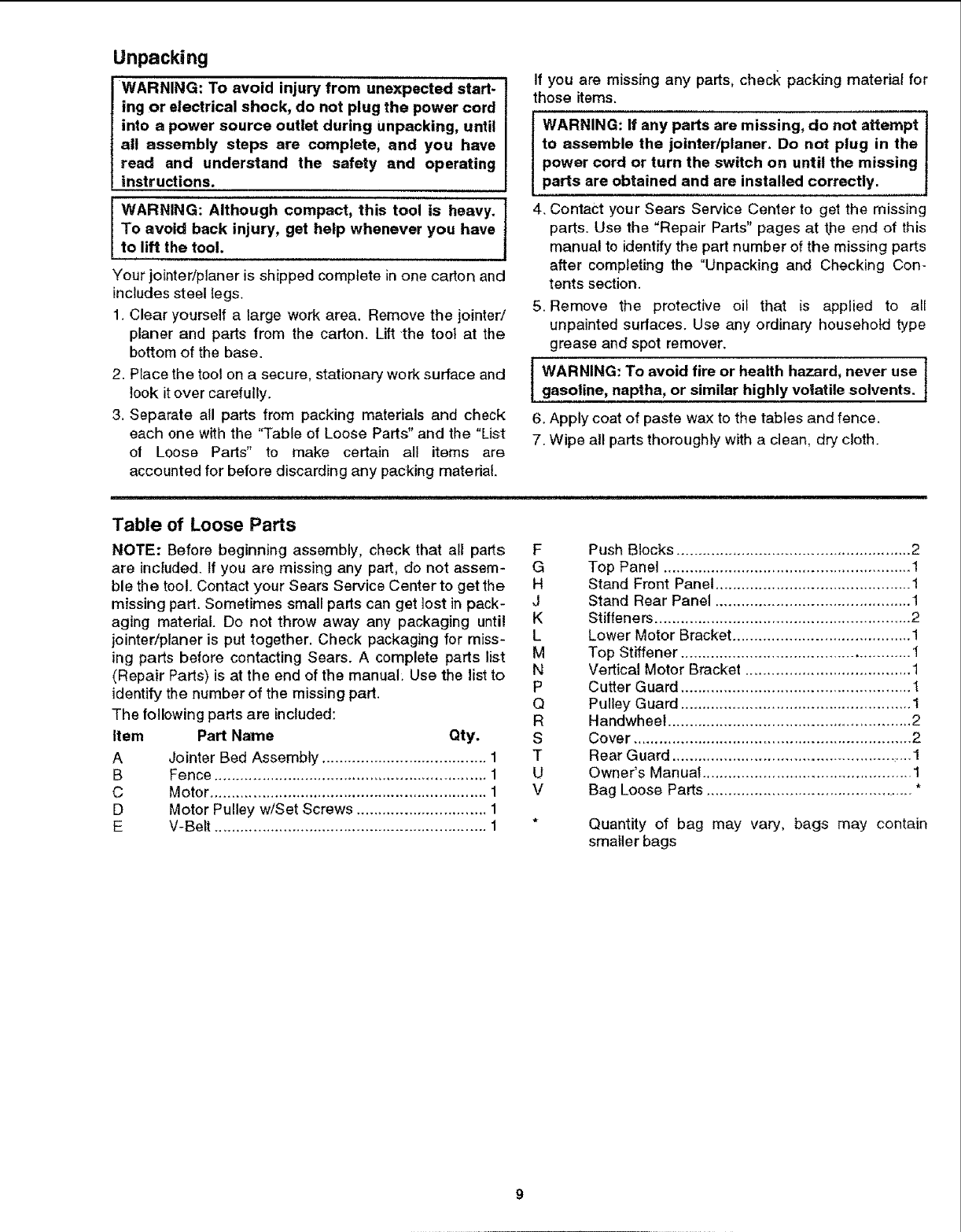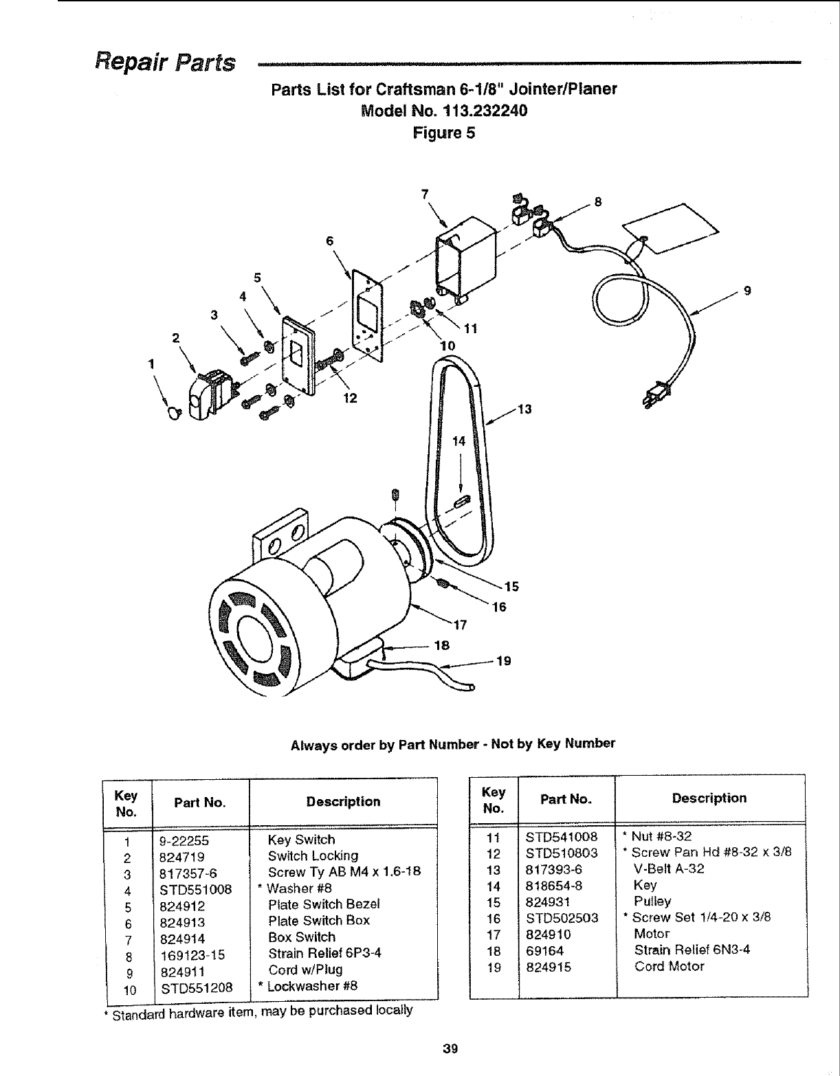 Parts List for Craftsman 6-118" JointedPlaner