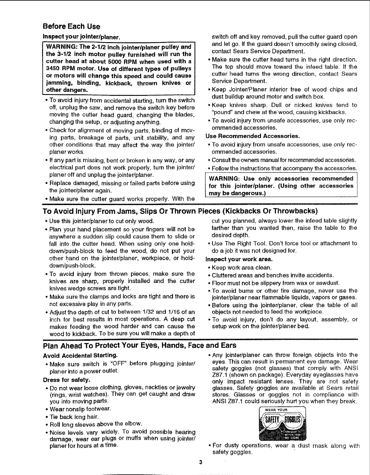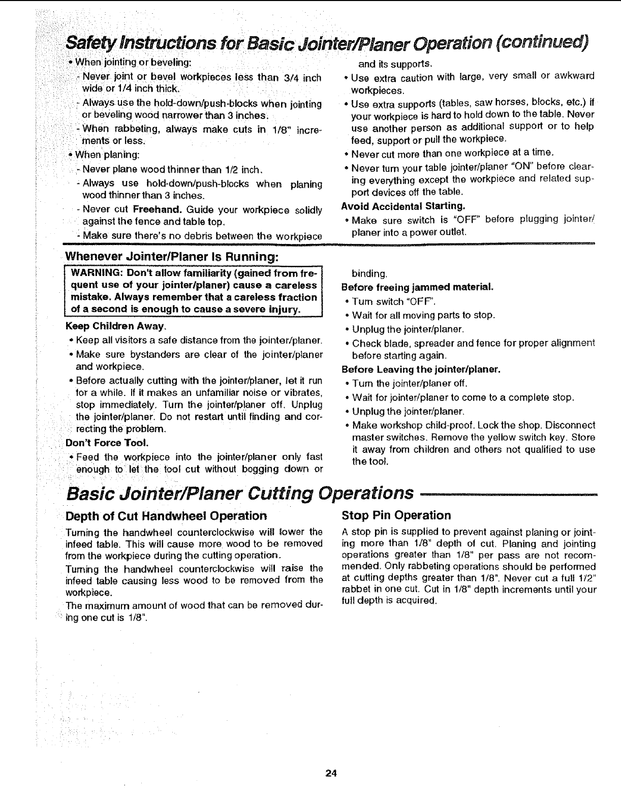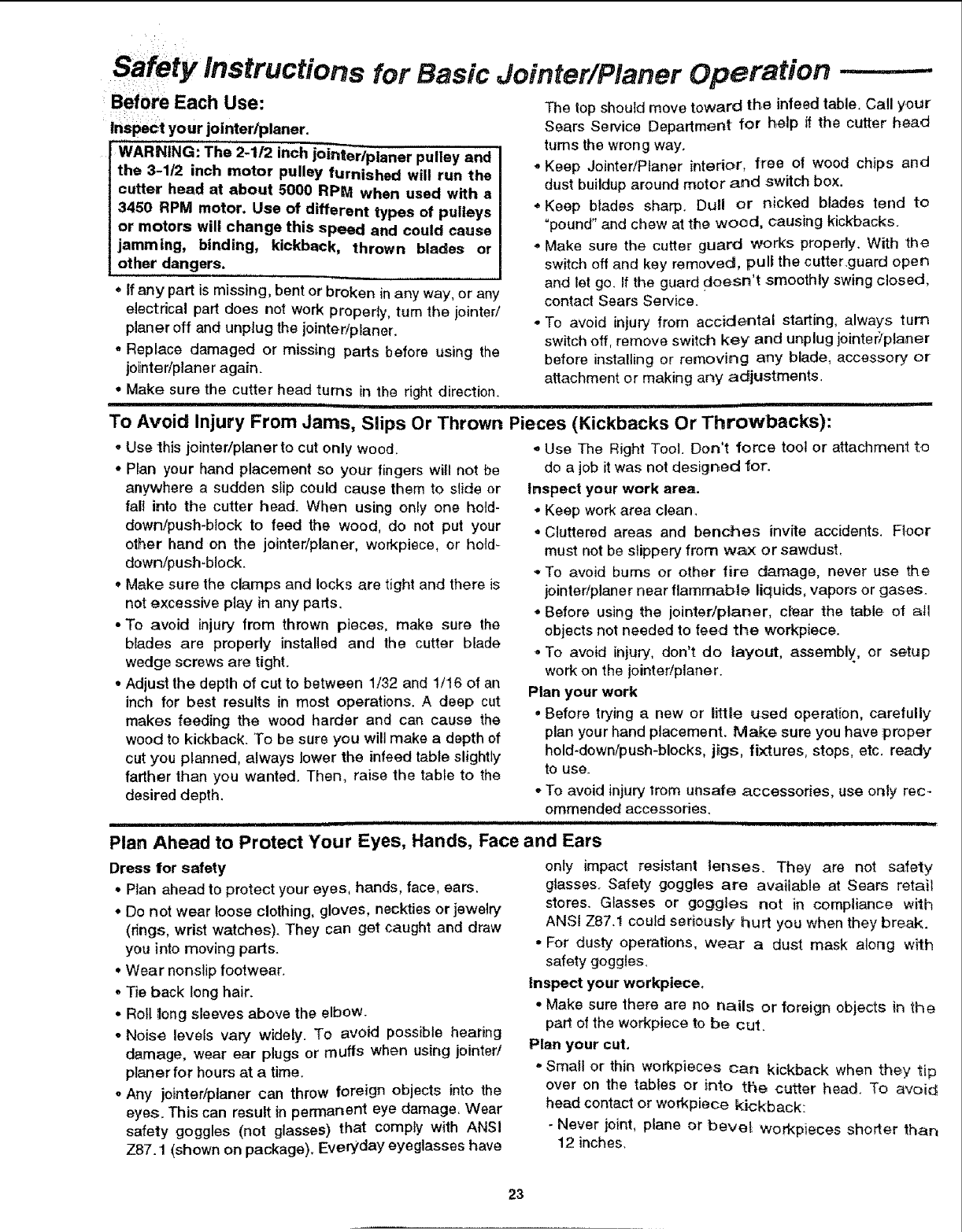 Safety instructions For Jointer/Planer ....