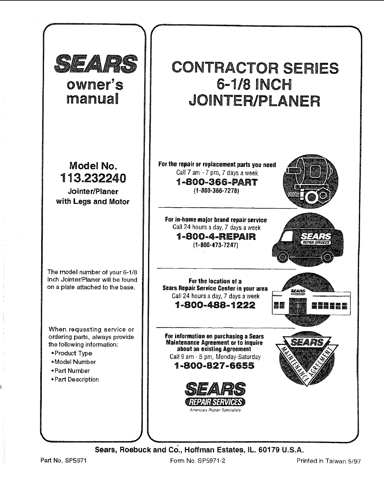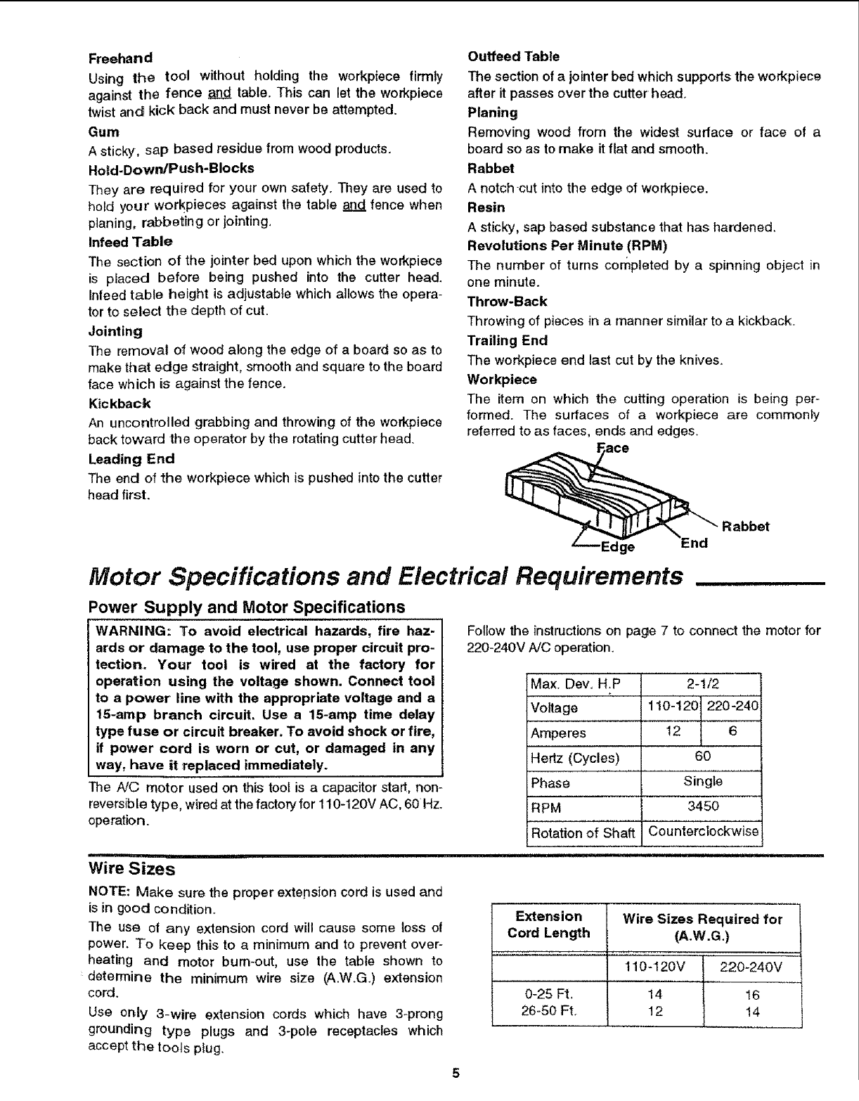 Craftsman 113232240 User Manual 6 1/8 INCH JOINTER/PLANER Manuals And Guides L0806062