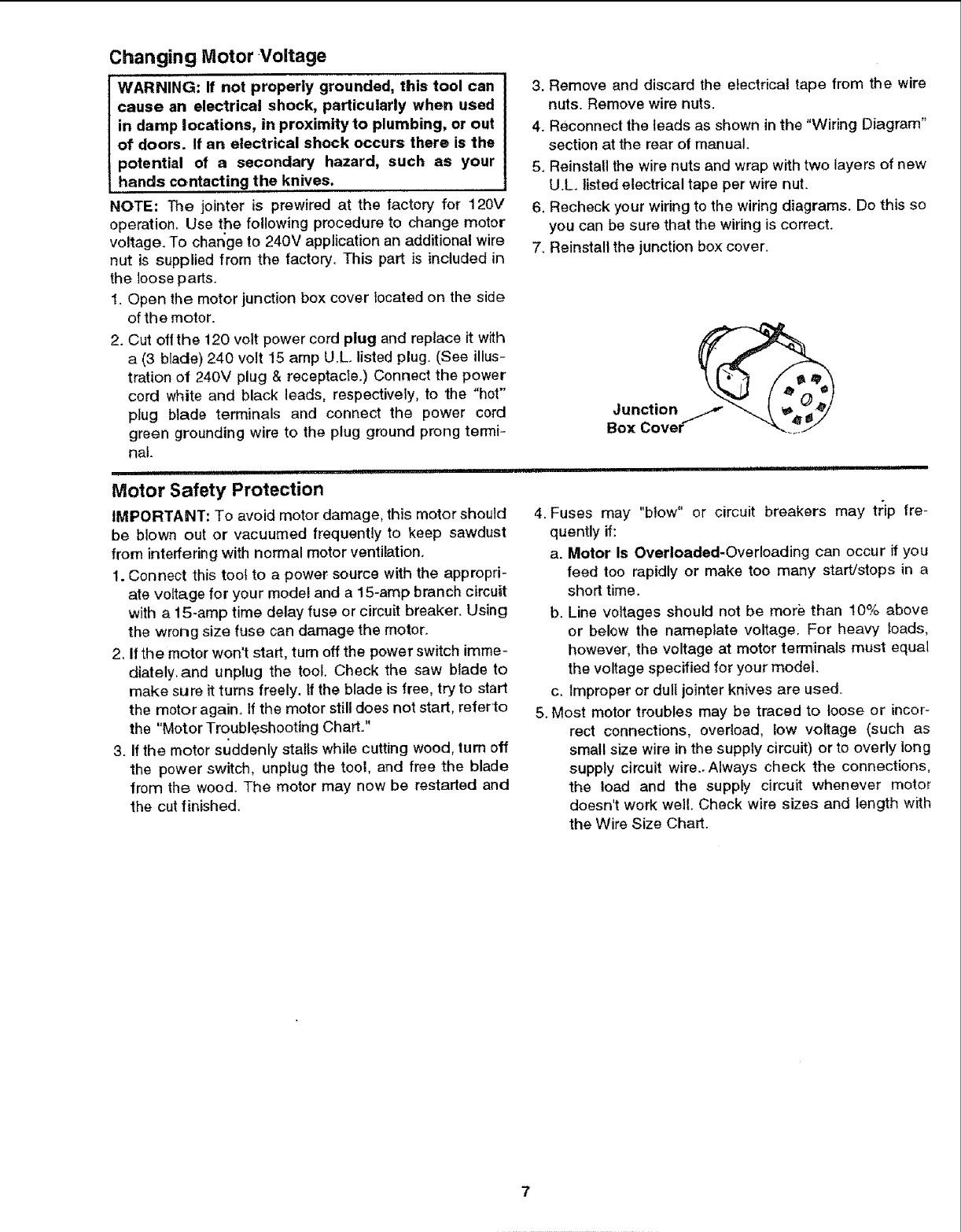 serious, permanent injury, do not plug the jointer/