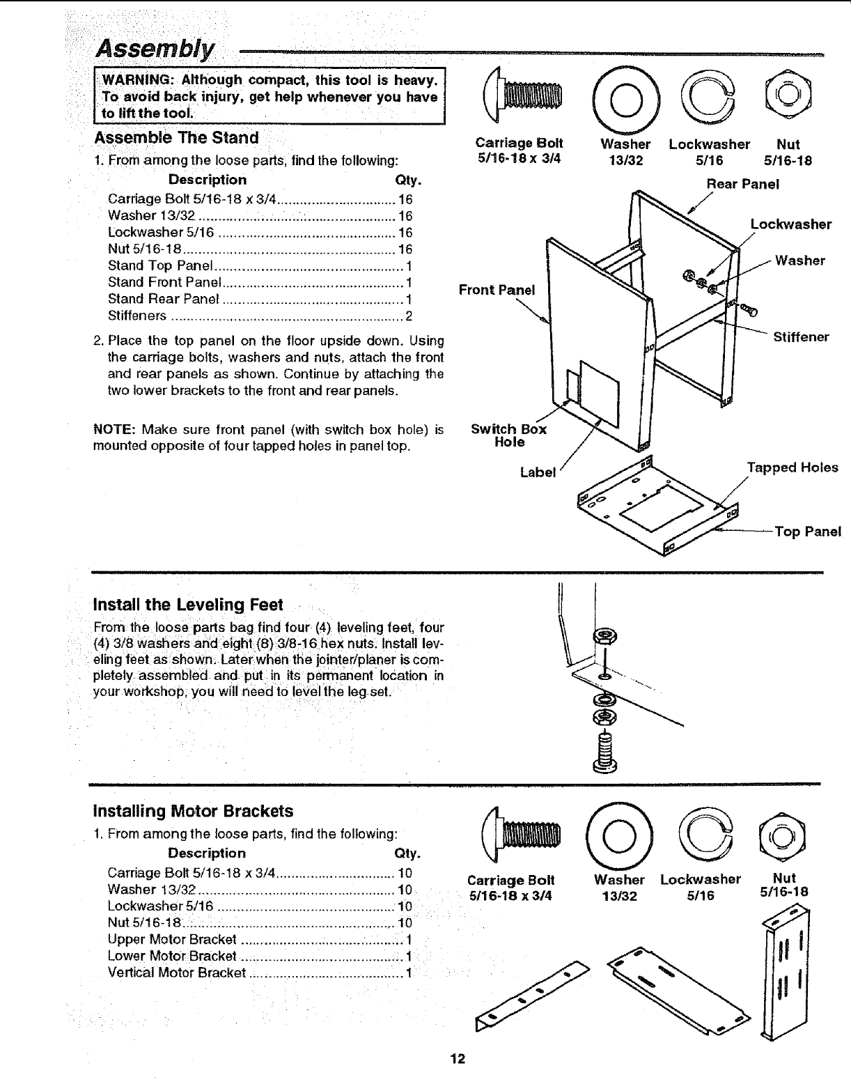 When Installing Or Moving the Jointer/Pianer