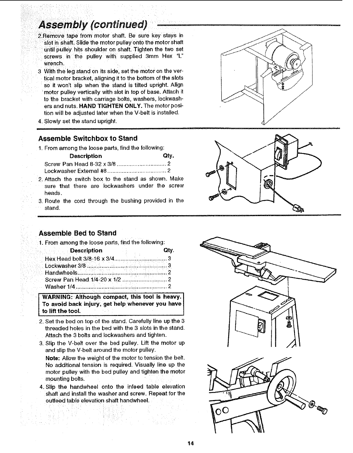 • Bolt or clamp the jointeriplaner to firm level surlace