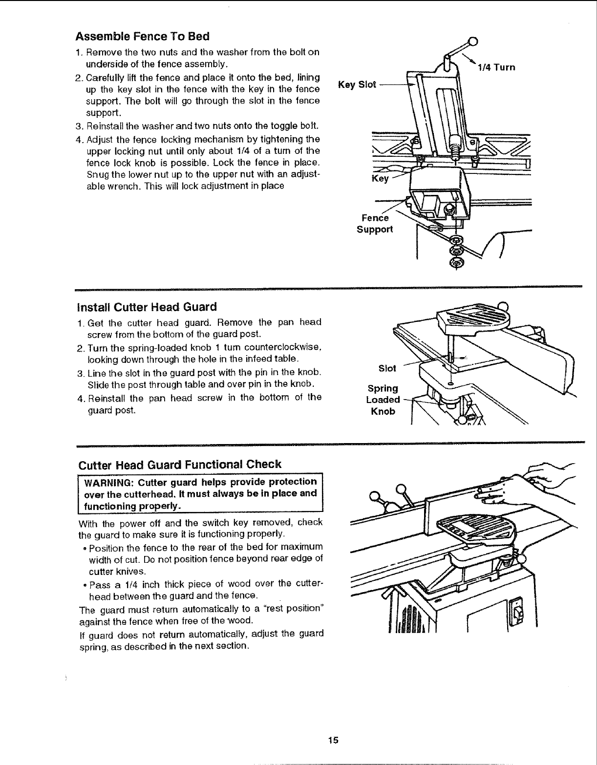 fence slide locking handle, cutter guard; depth of cut