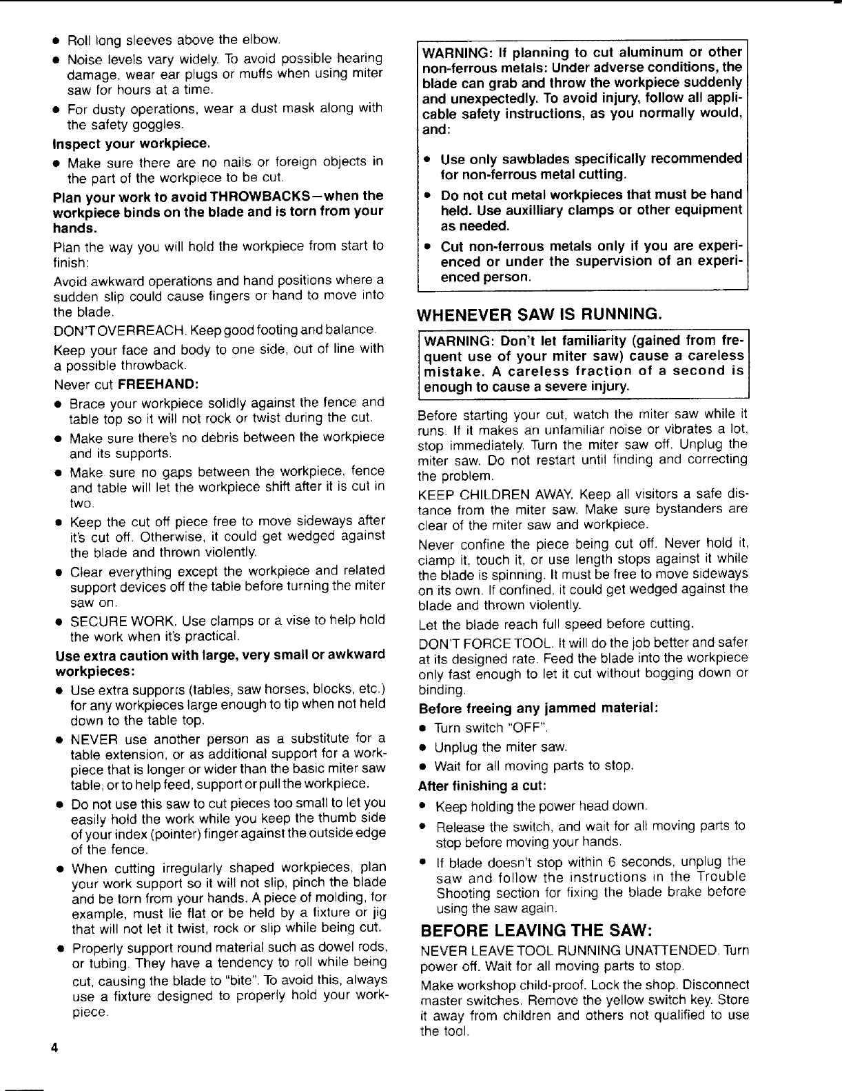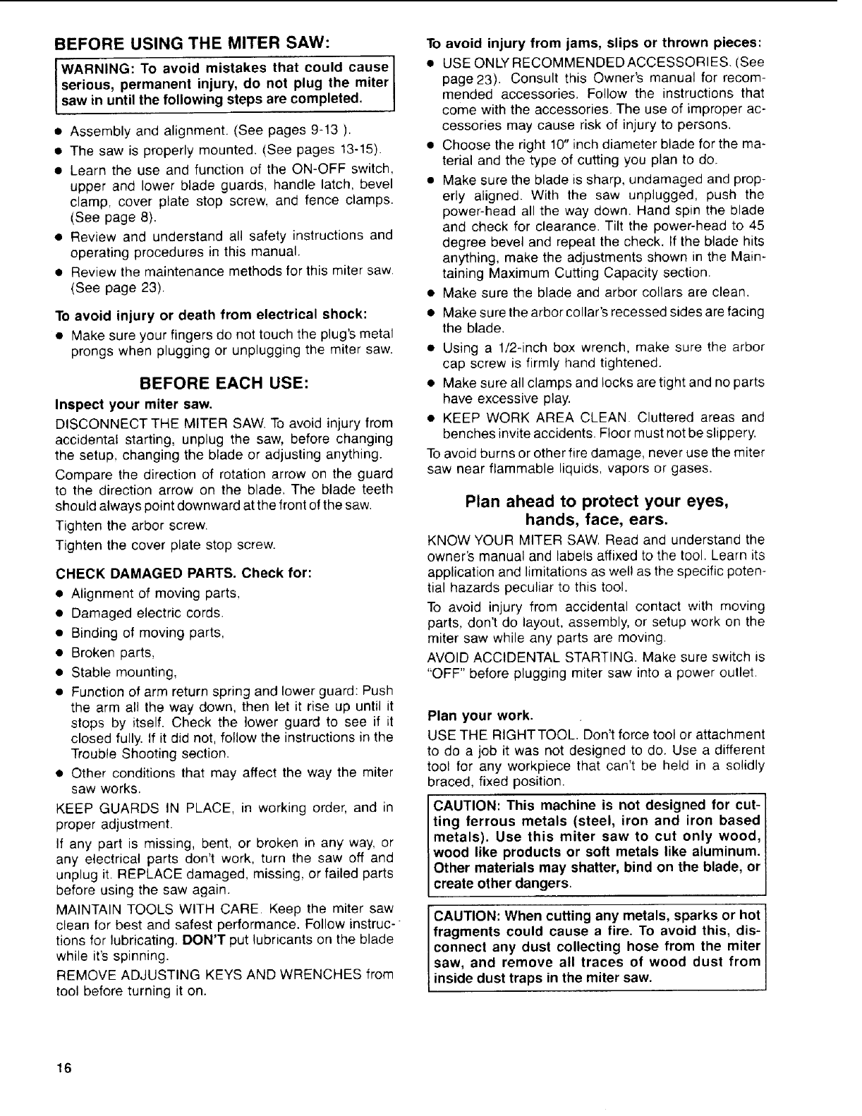 serious, permanent injury, do not plug the miter