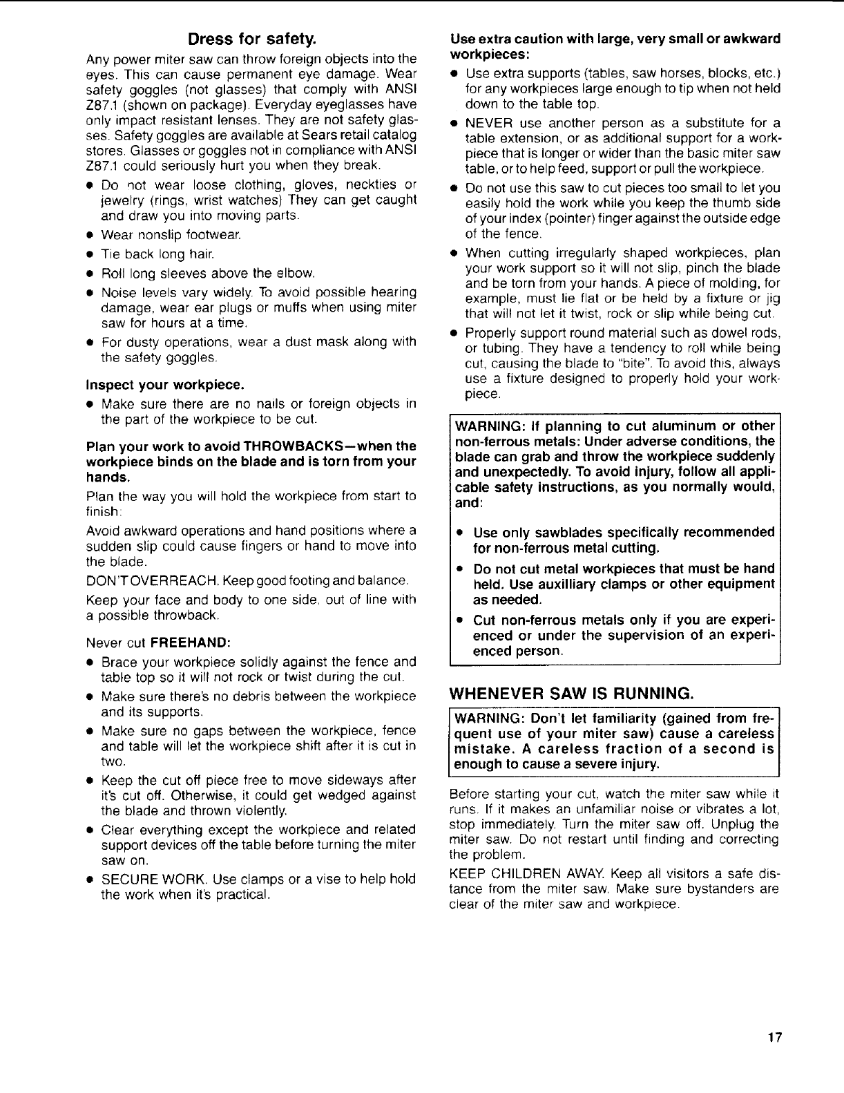 SAFETY INSTRUCTIONS FOR MITER SAW