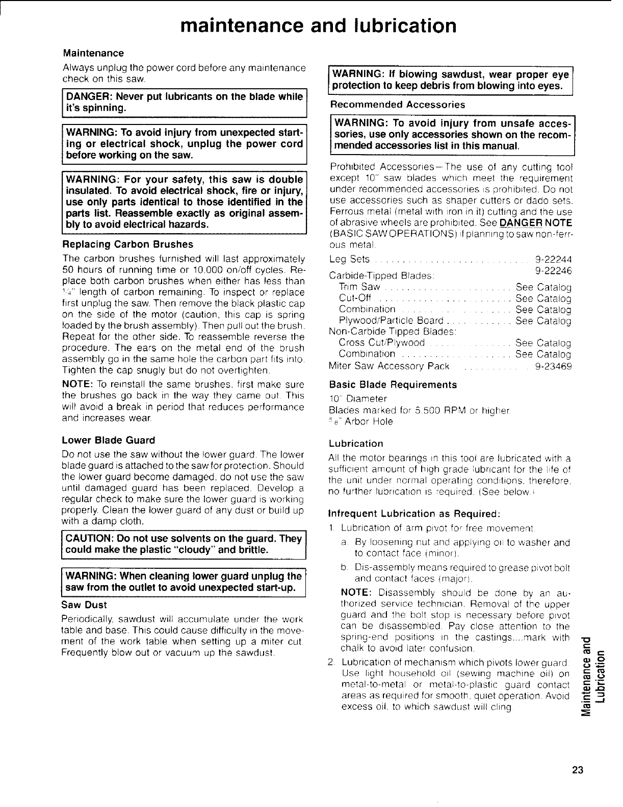 • Review the maintenance methods for this miter saw.