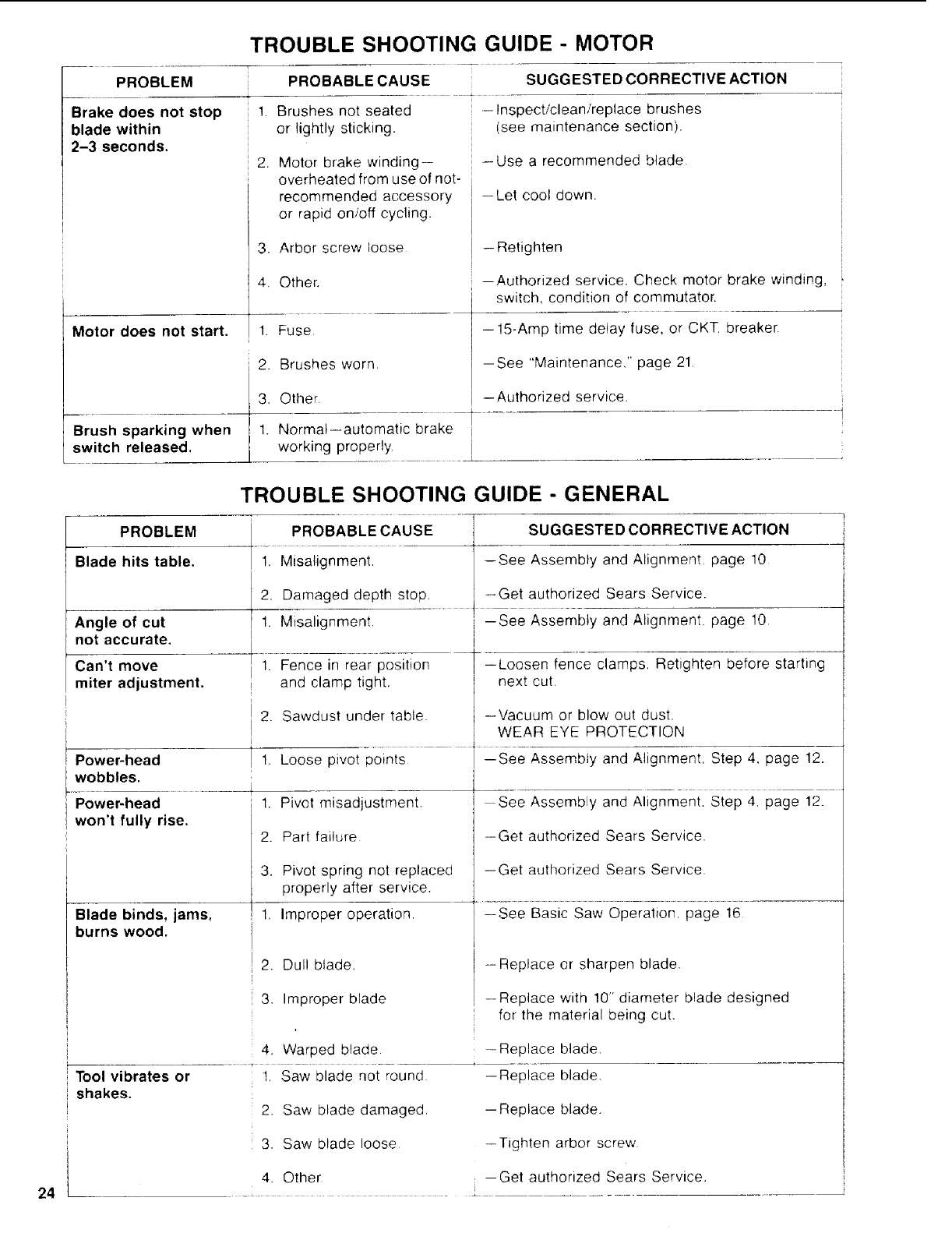Saw, should a need ever exist for repair parts or service,