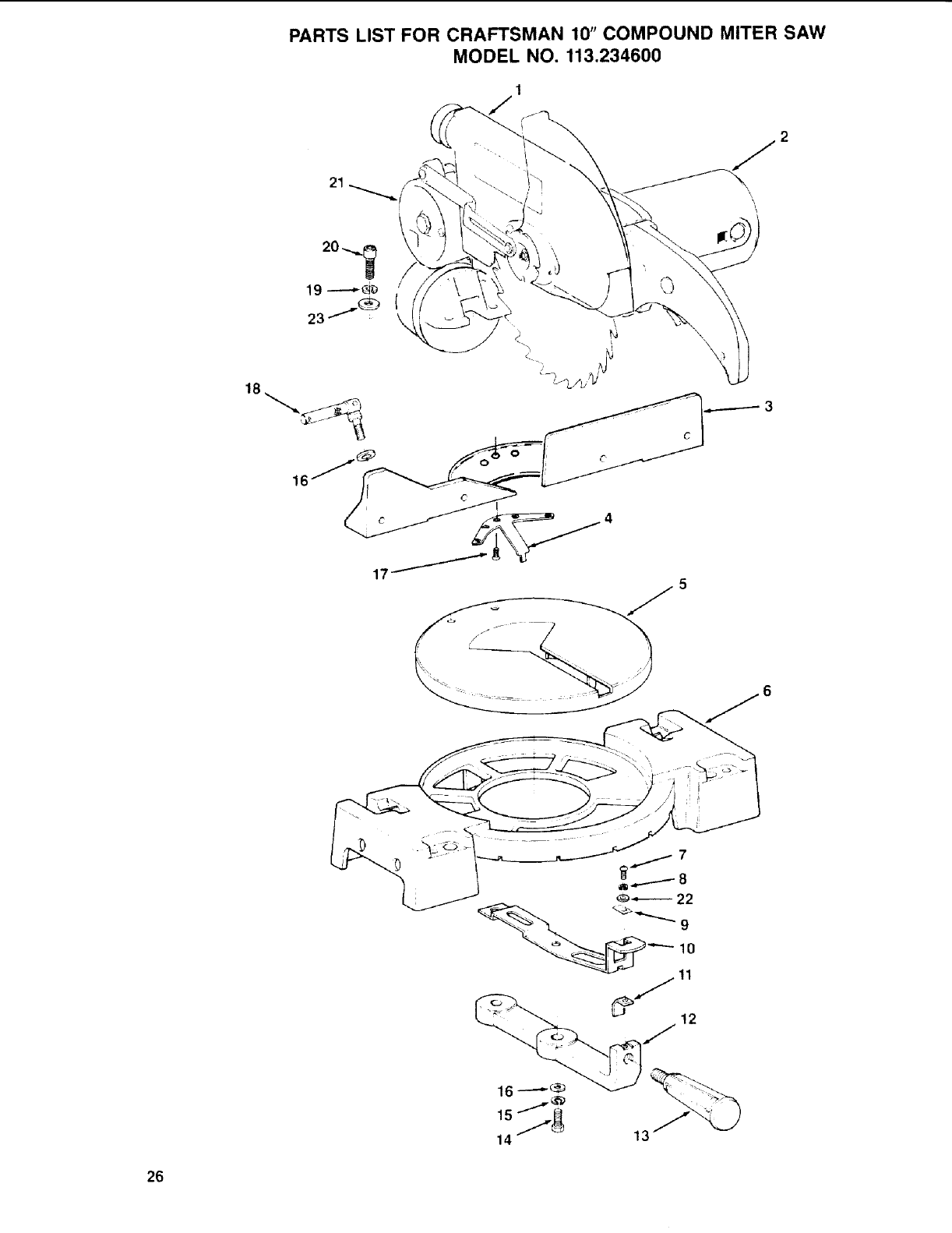 User Manual: Craftsman 113234600 113234600 CRAFTSMAN MITER SAW - Manuals and Guides View the owners manual for your CRAFTSMAN MITER SAW #113234600. Home:Tool Parts:Craftsman Parts:Craftsman MITER SAW Manual