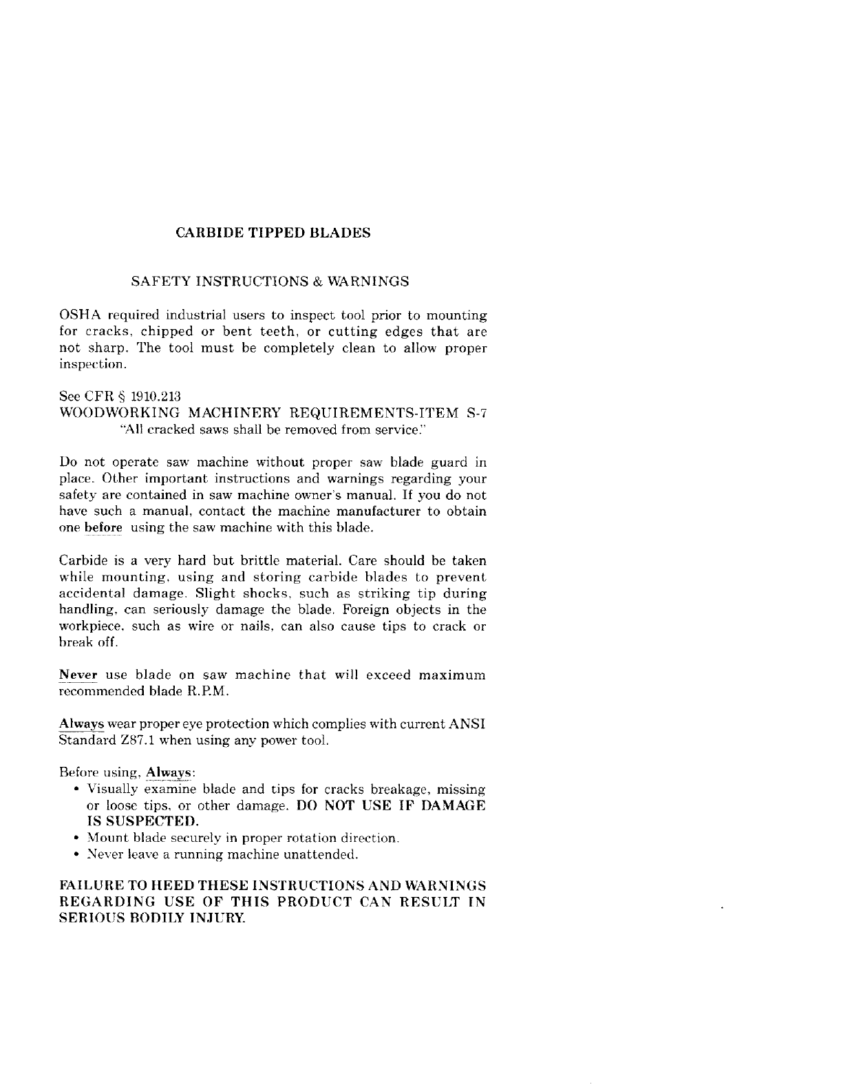 CARBIDE TIPPED BLADES