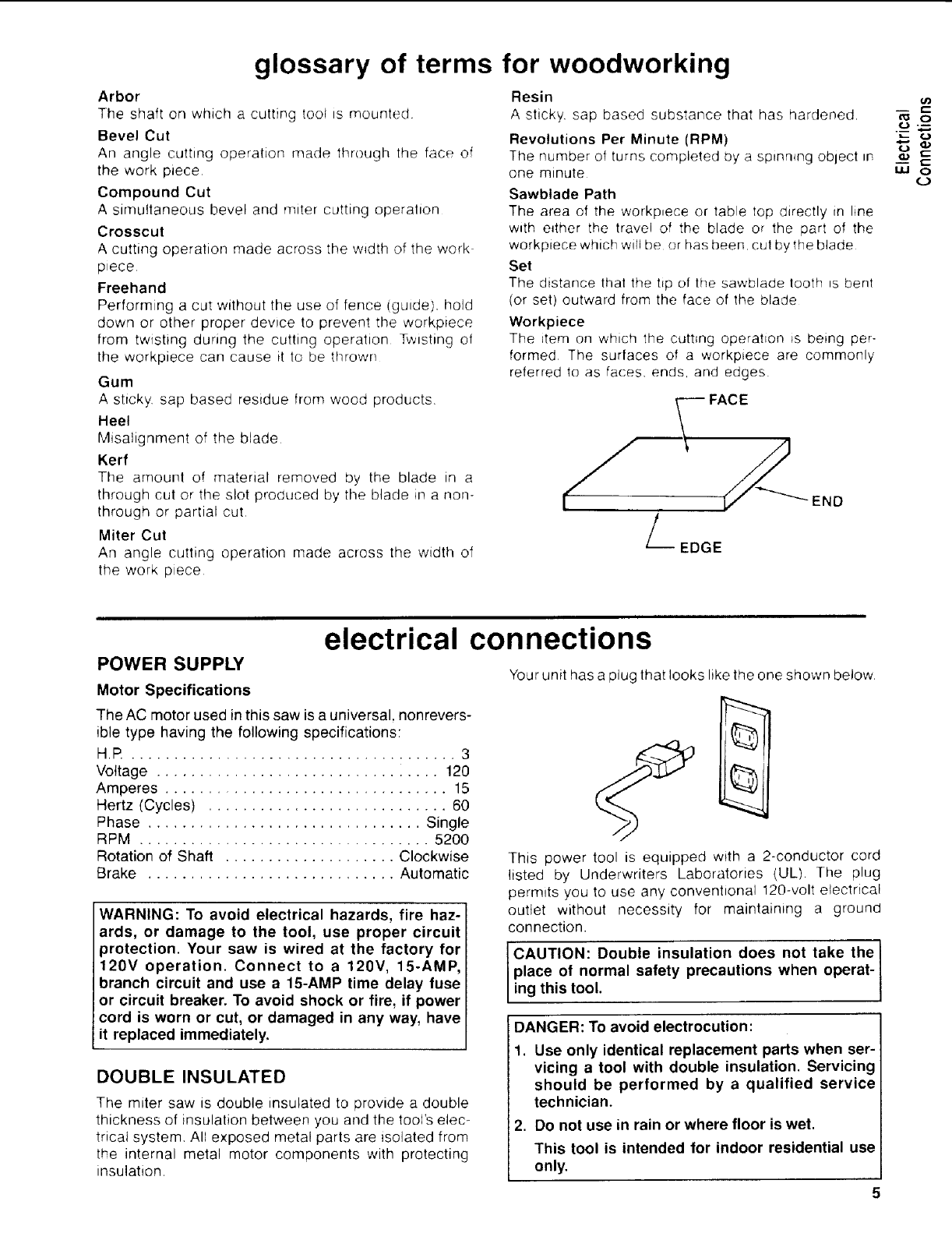 prongs when plugging or unplugging the miter saw.