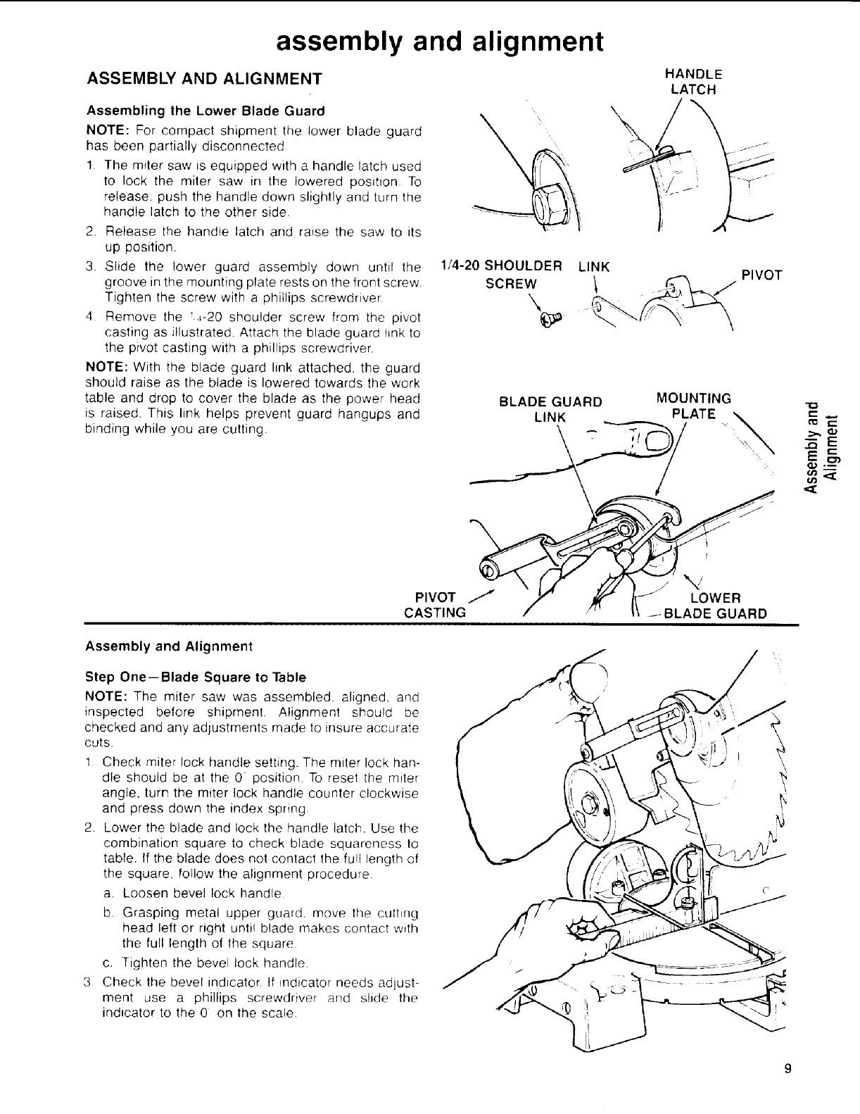 • Assembly and alignment. (See pages 9-13)