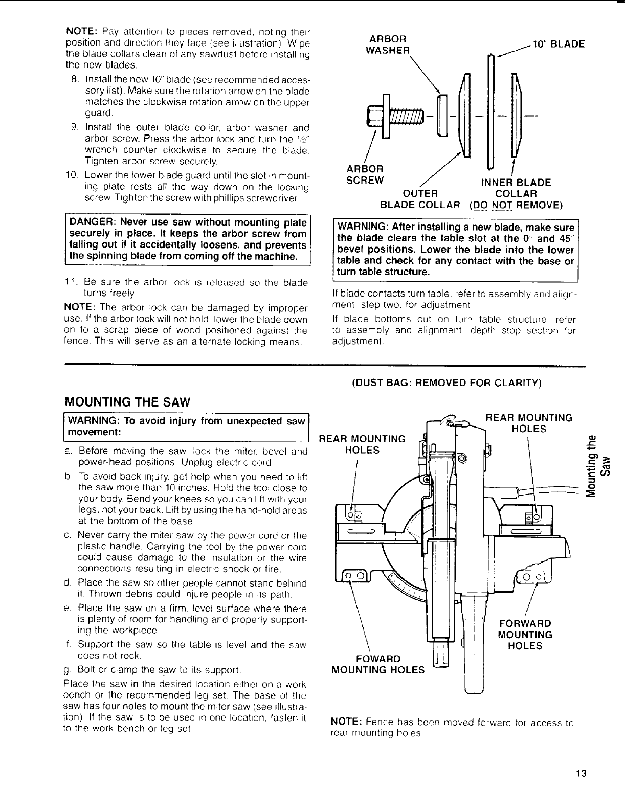 • Mount blade securely, in proper rotation direction.
