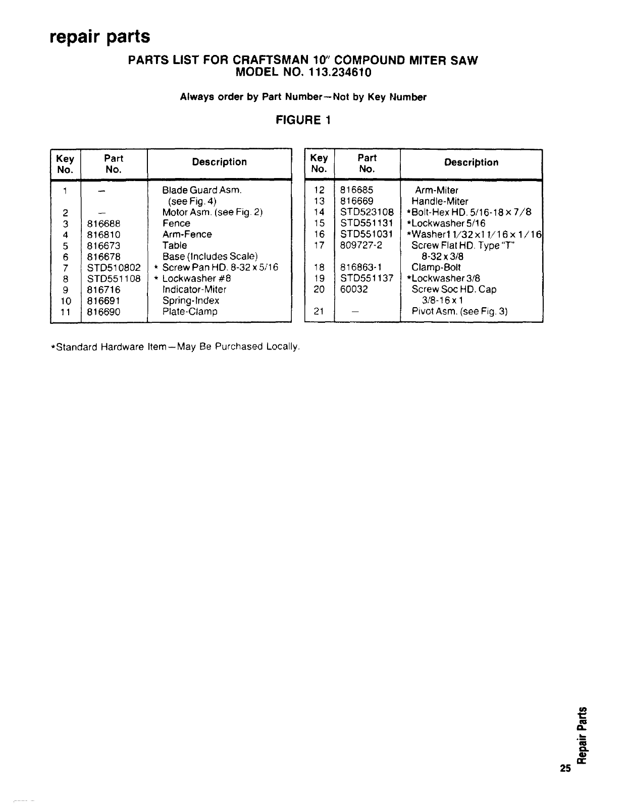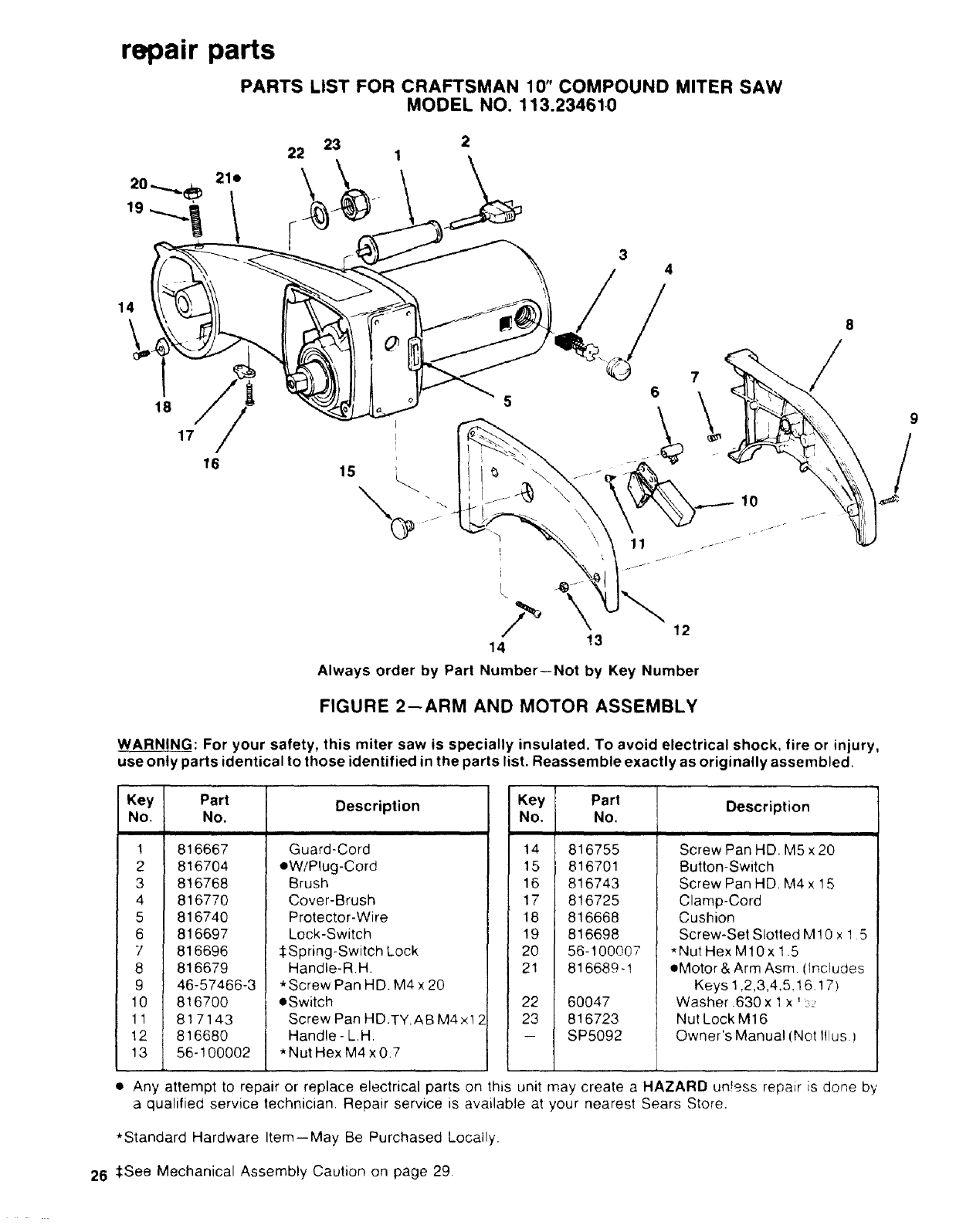 User Manual: Craftsman 113234610 113234610 CRAFTSMAN MITER SAW - Manuals and Guides View the owners manual for your CRAFTSMAN MITER SAW #113234610. Home:Tool Parts:Craftsman Parts:Craftsman MITER SAW Manual
