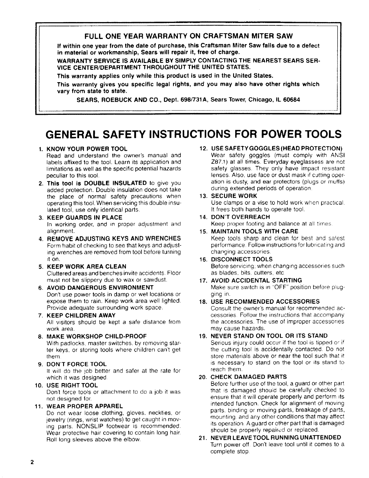 FULL ONE YEAR WARRANTY ON CRAFTSMAN MITER SAW