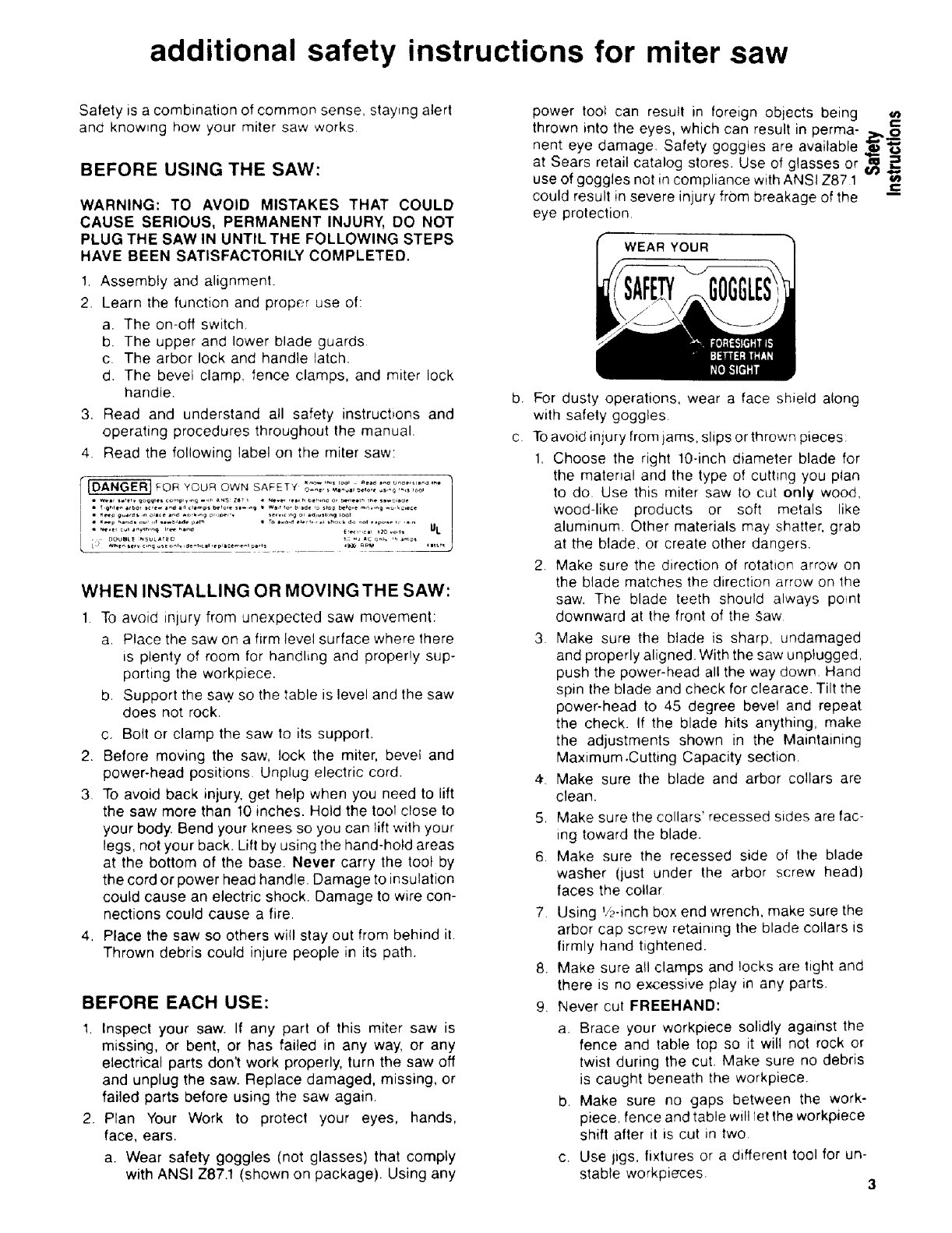 CRAFTSMAN Miter Saw Manual L0803249 CRAFTSMAN Miter Saw Owner's Manual, CRAFTSMAN Miter Saw installation guides
