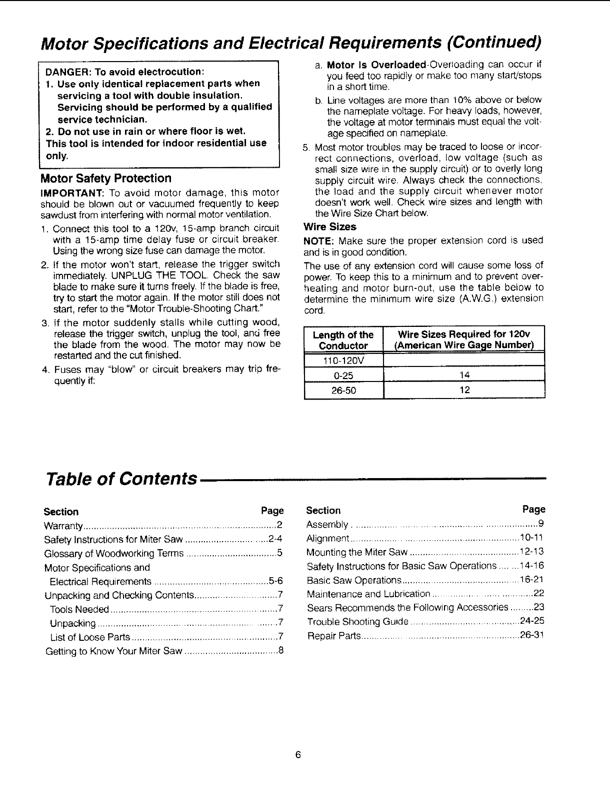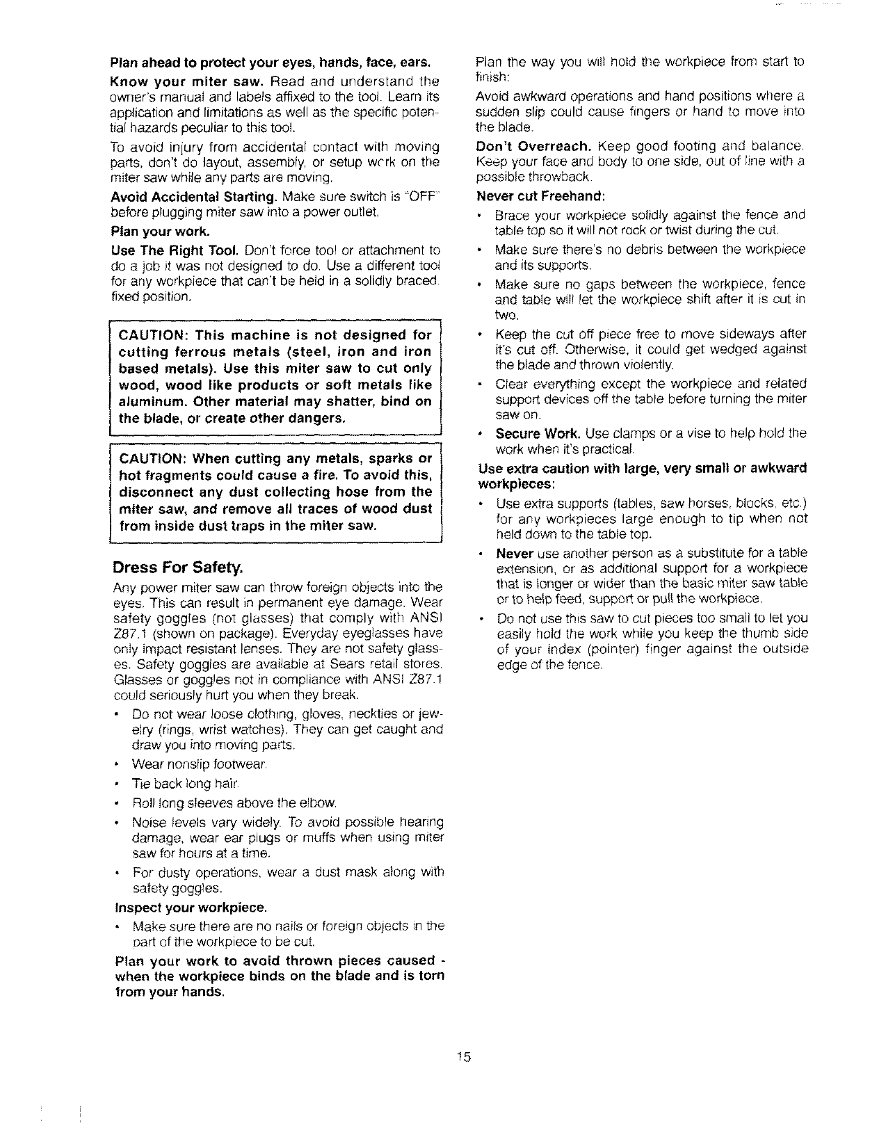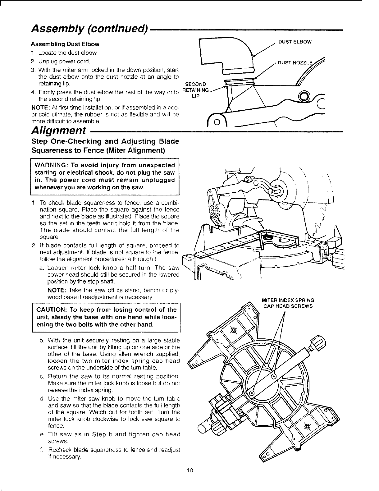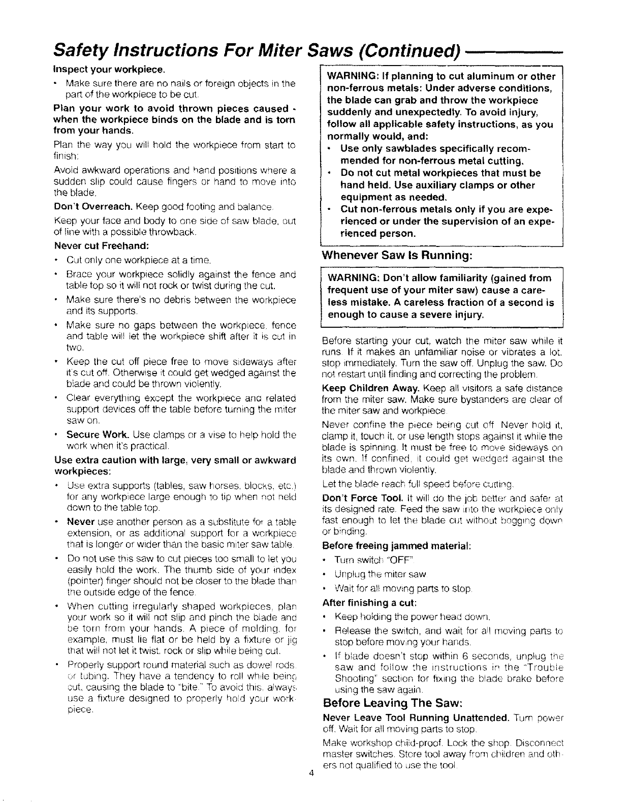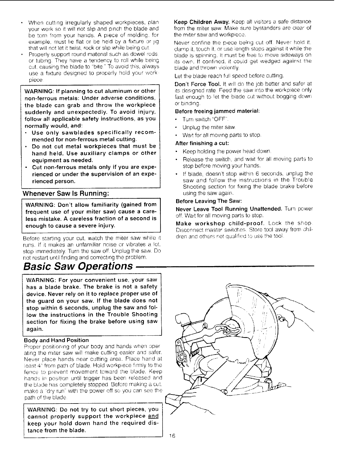 serious, permanent injury, do not plug the miter I