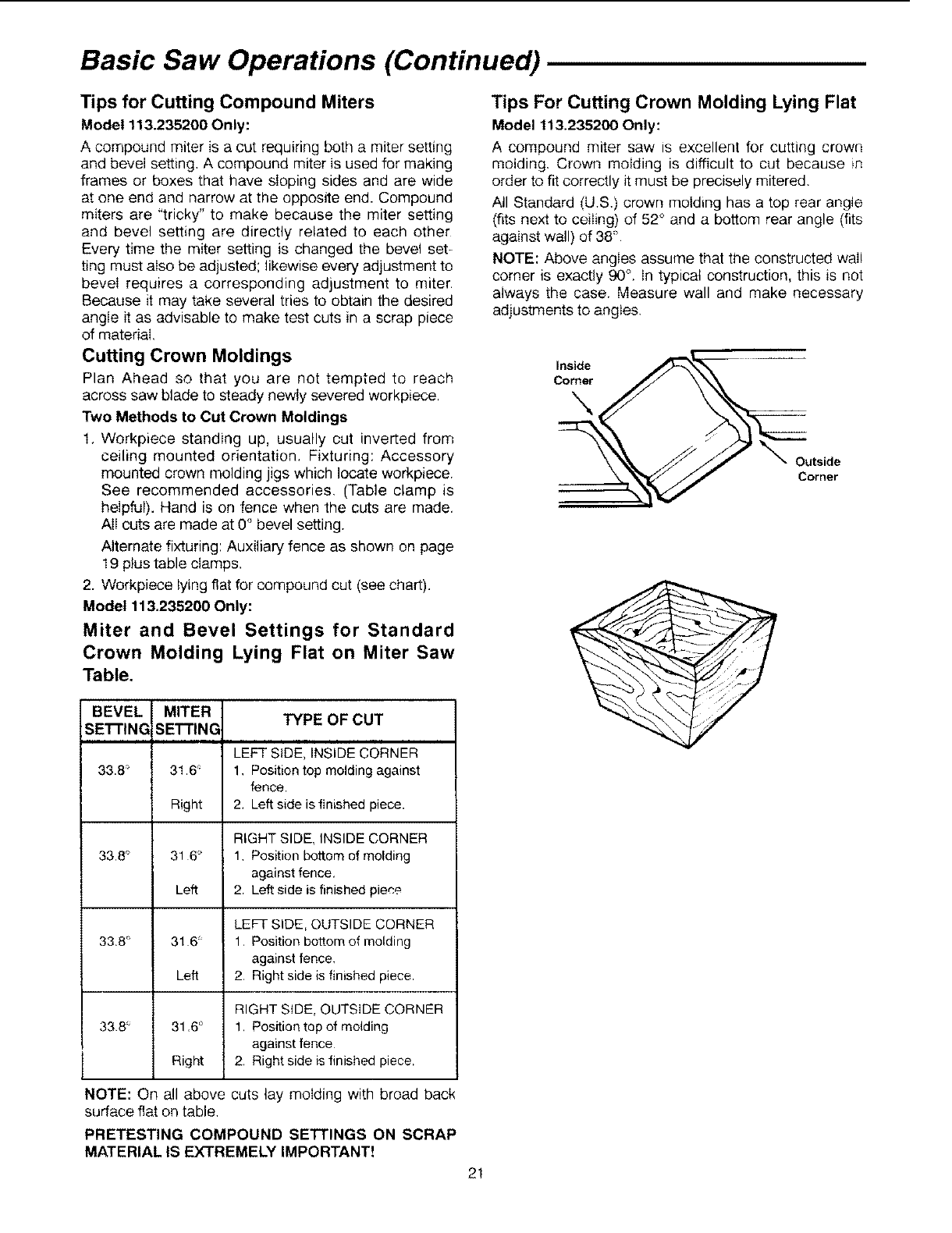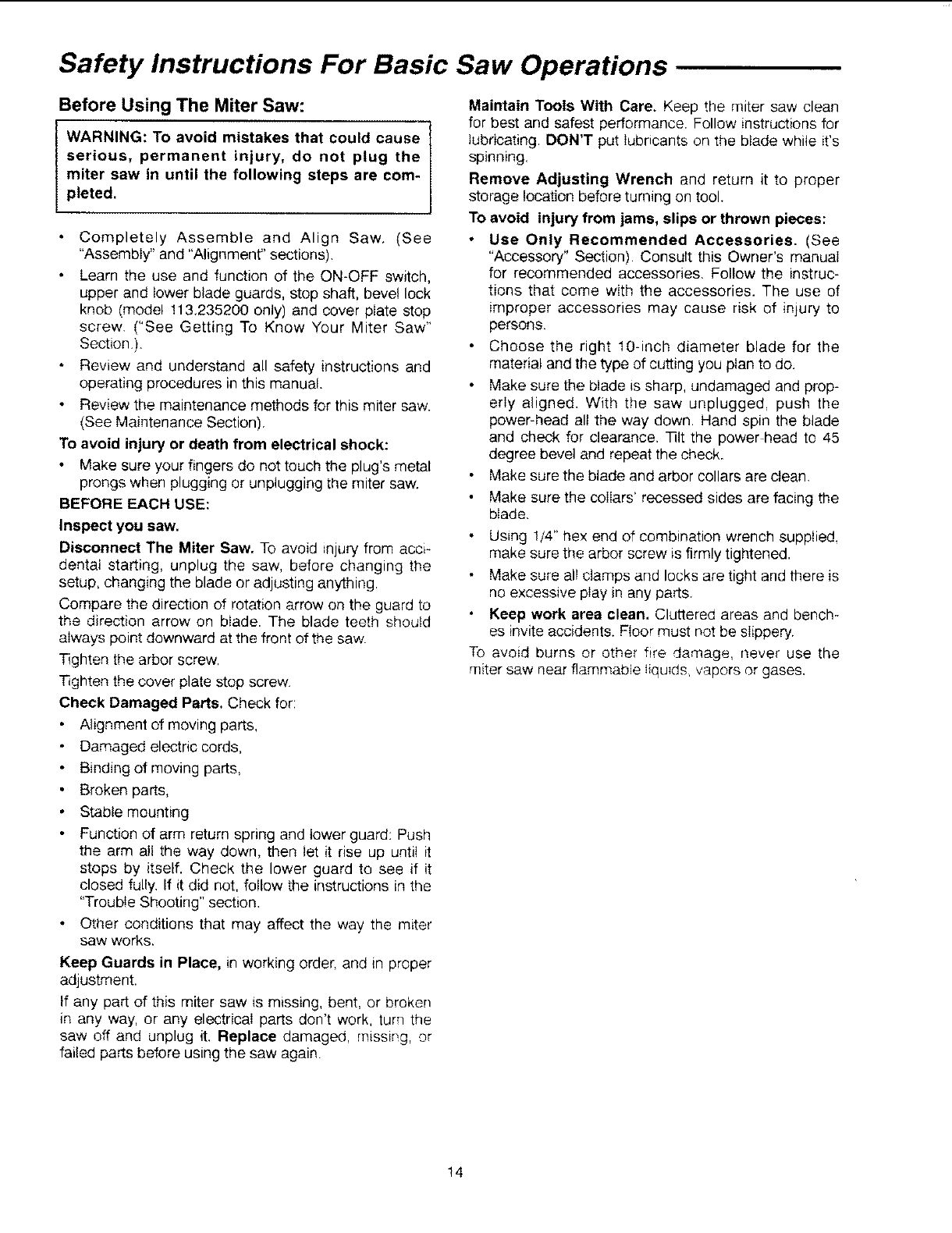 User Manual: Craftsman 113235100 113235100 CRAFTSMAN 10 INCH MITER SAW - Manuals and Guides View the owners manual for your CRAFTSMAN 10 INCH MITER SAW #113235100. Home:Tool Parts:Craftsman Parts:Craftsman 10 INCH MITER SAW Manual