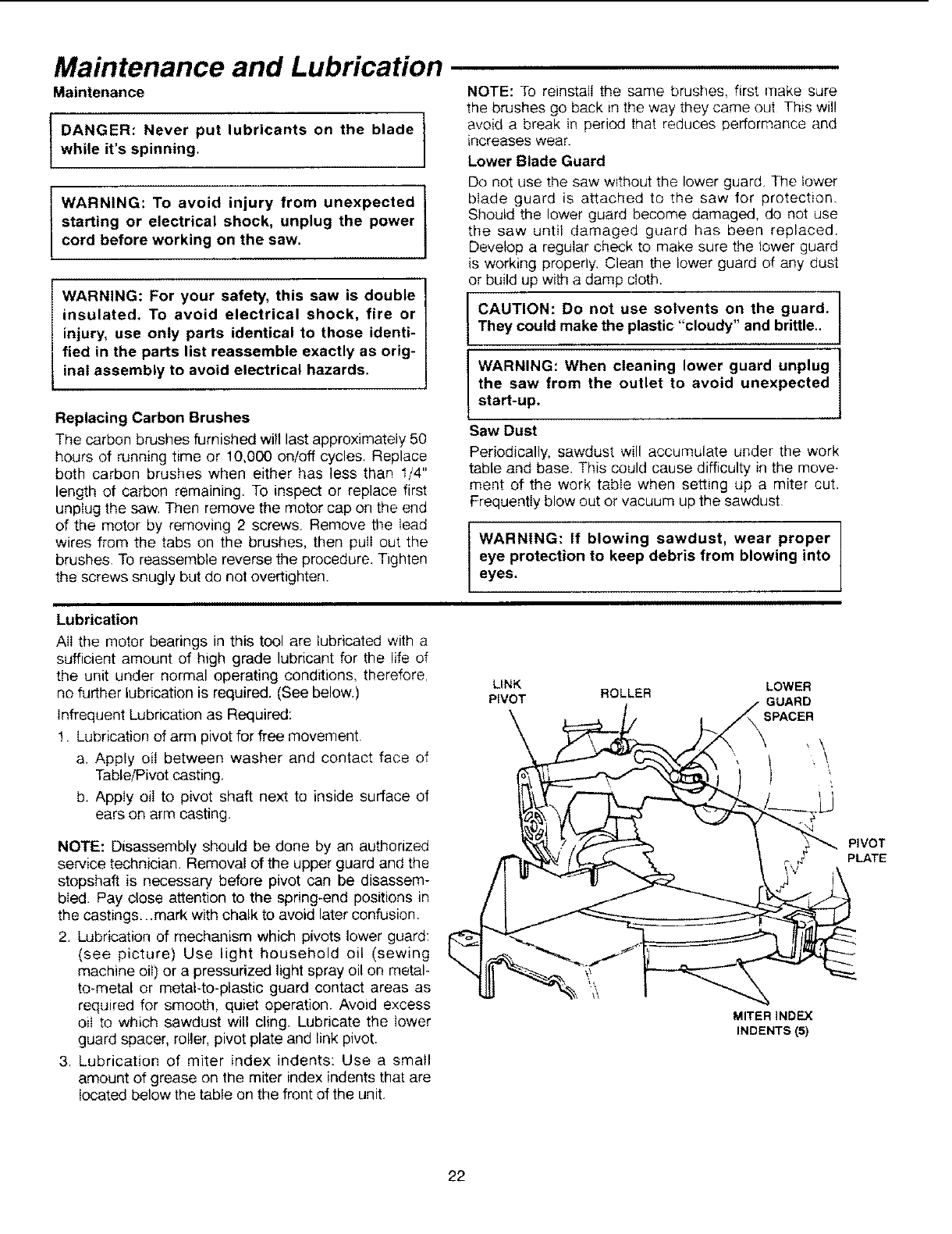 Review the maintenance methods for this miter saw.