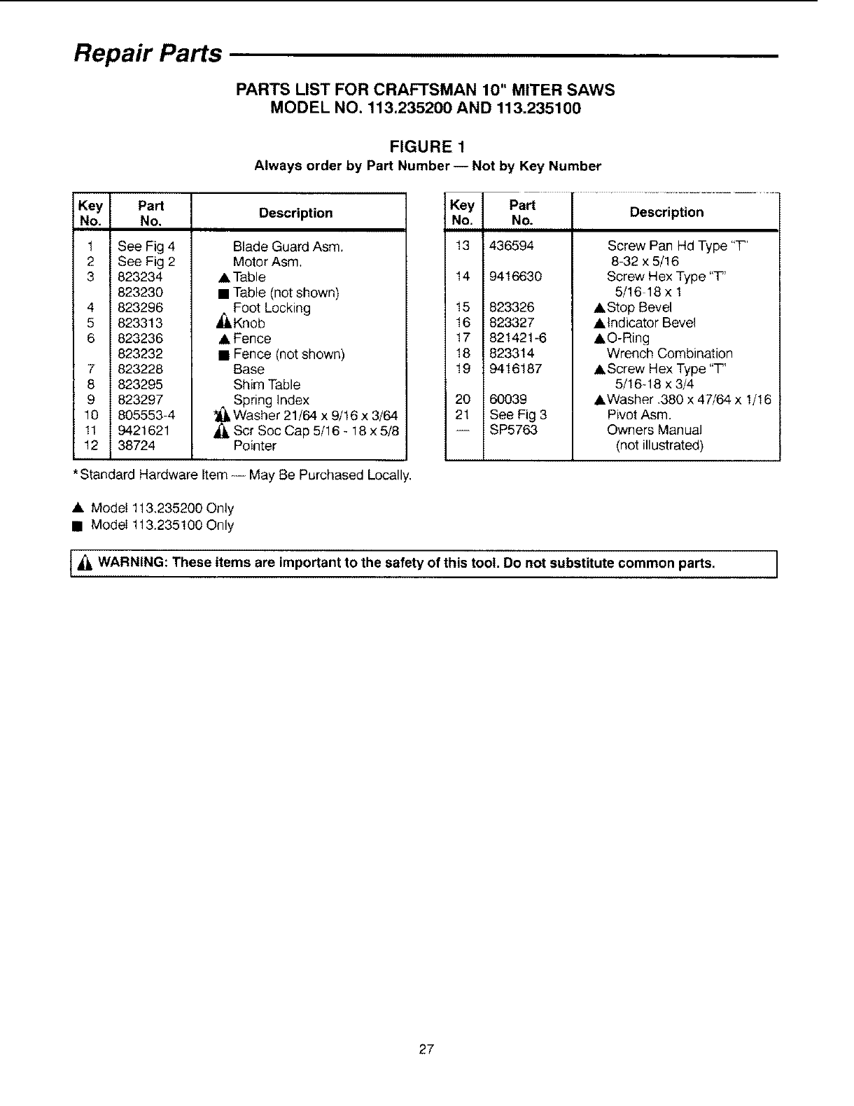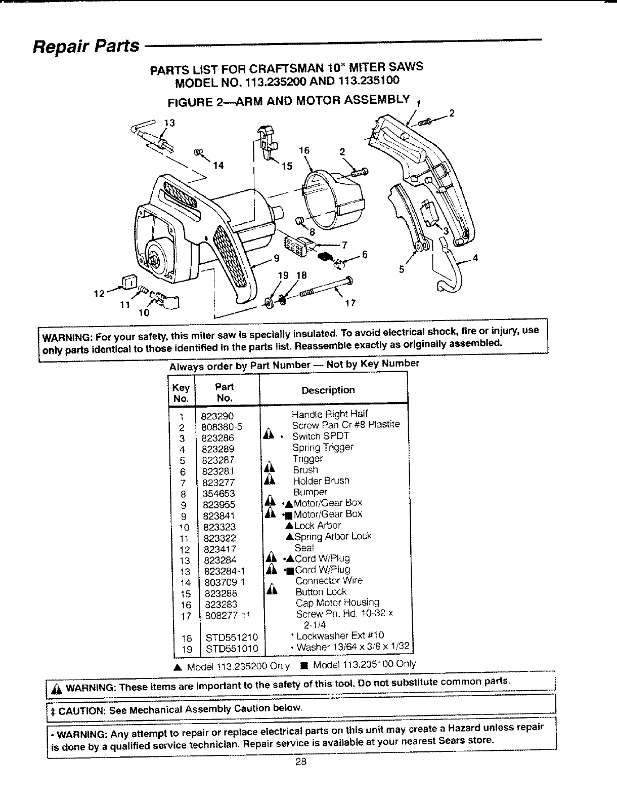 IA*k WARNING: These items are important to the safety of this tool. Do not substitute common parts. )