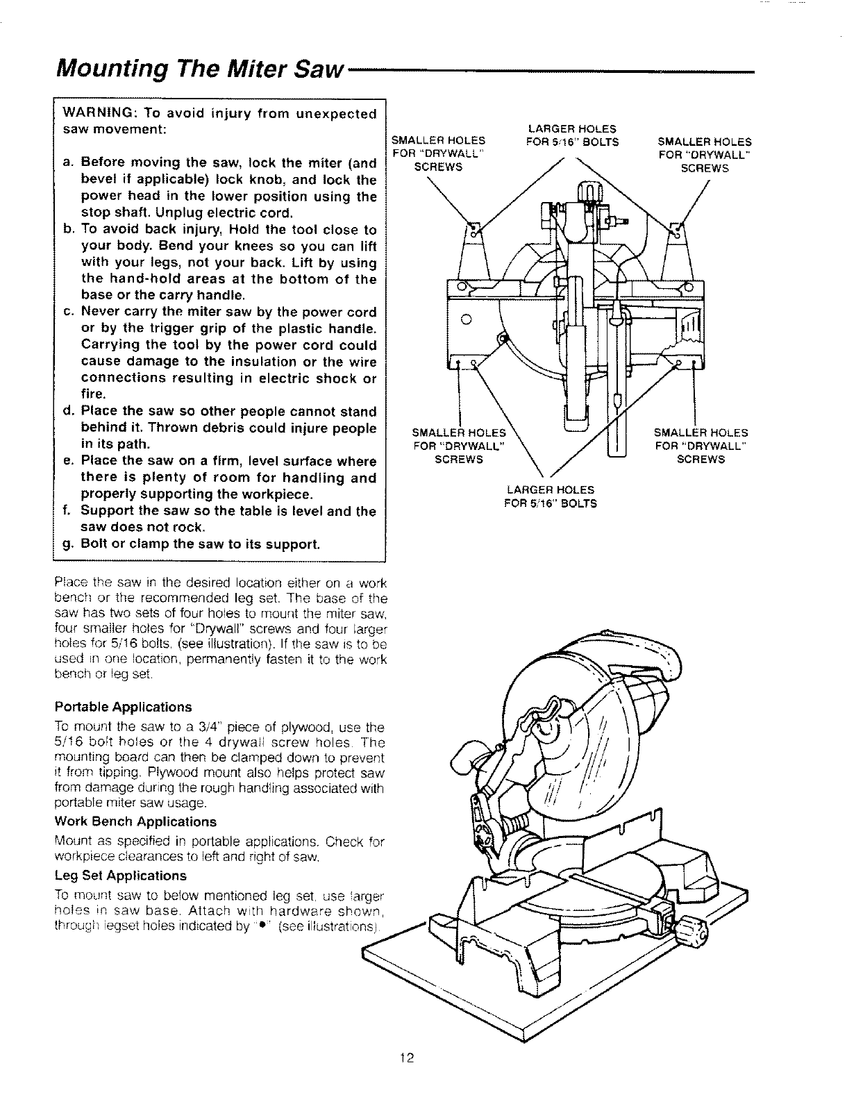 When Installing Or Moving The Miter Saw: