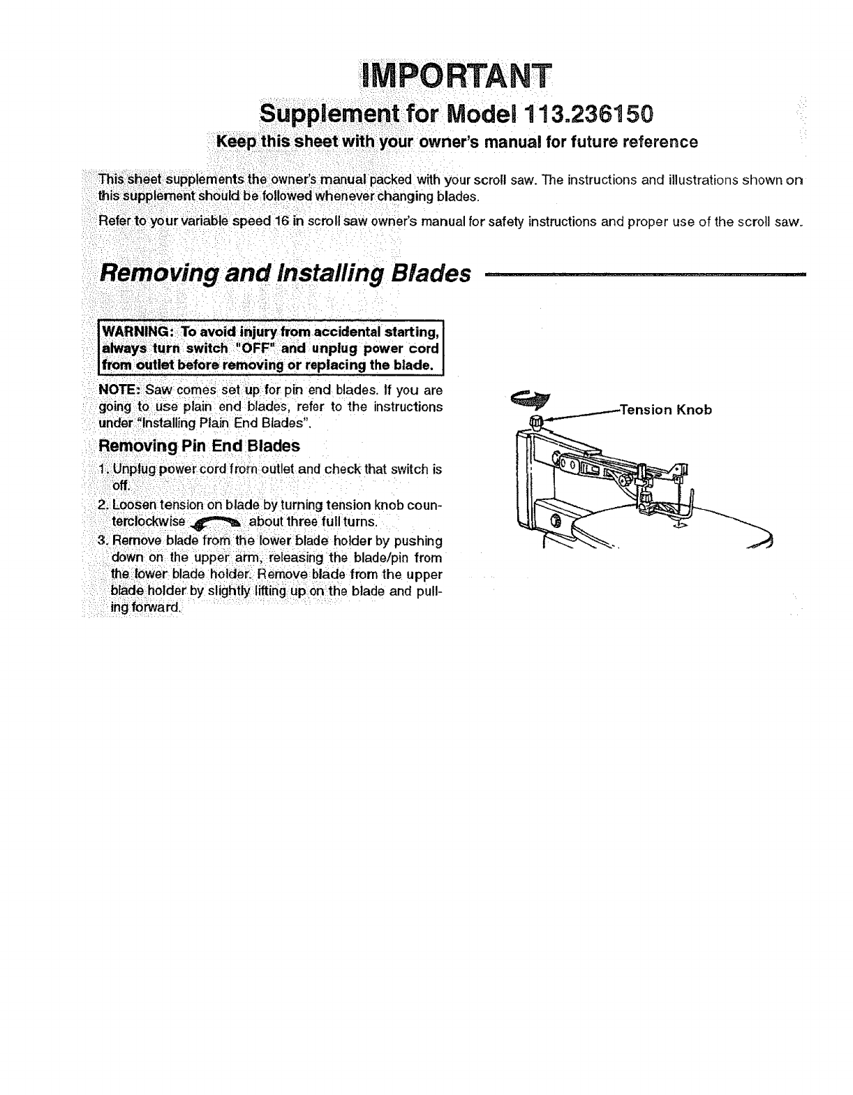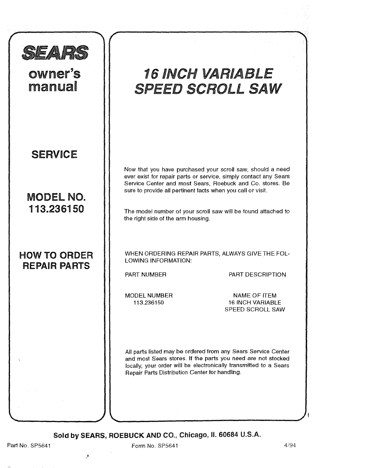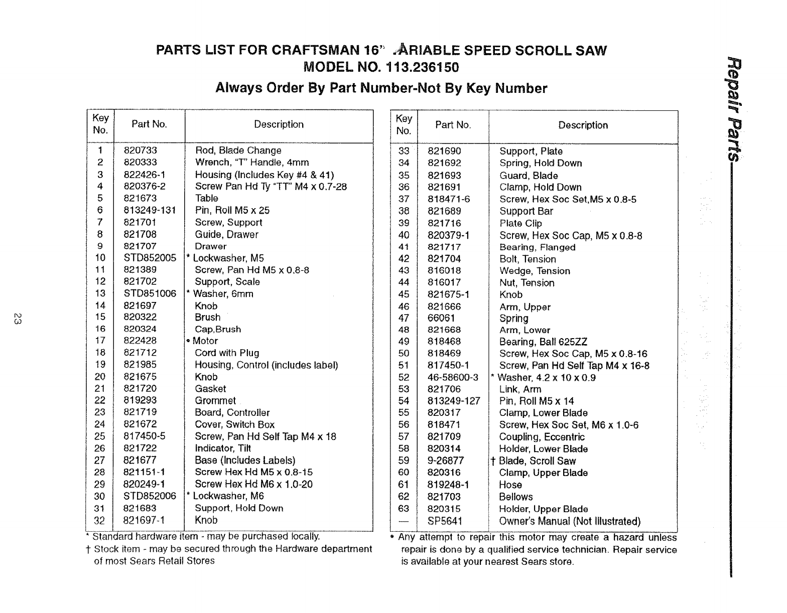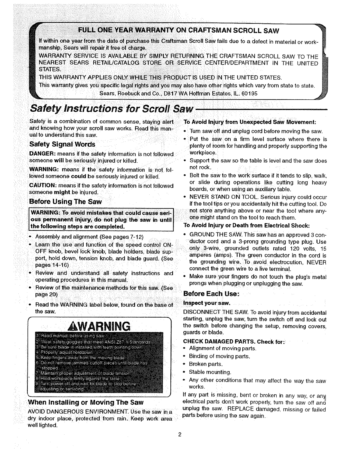 Craftsman 113236150 User Manual SCROLL SAW Manuals And Guides L1002142