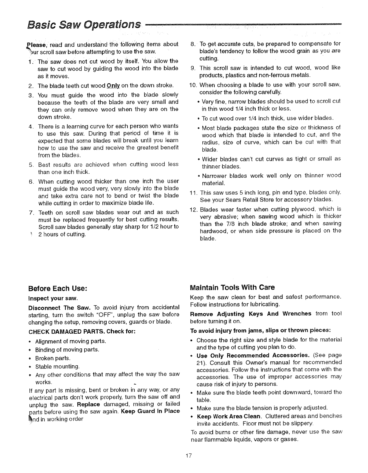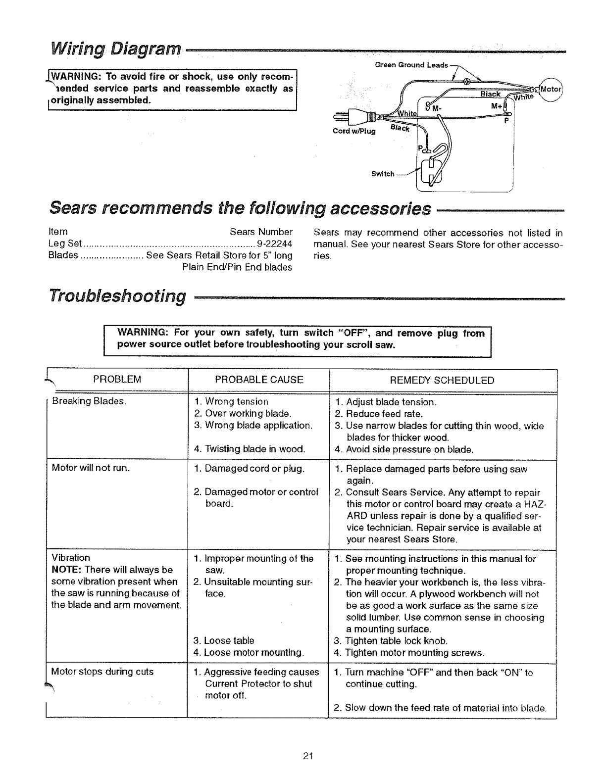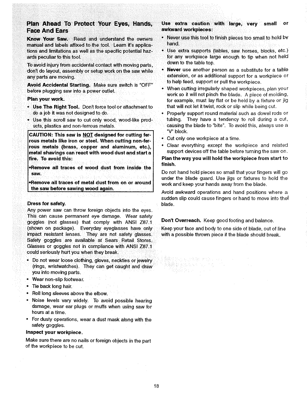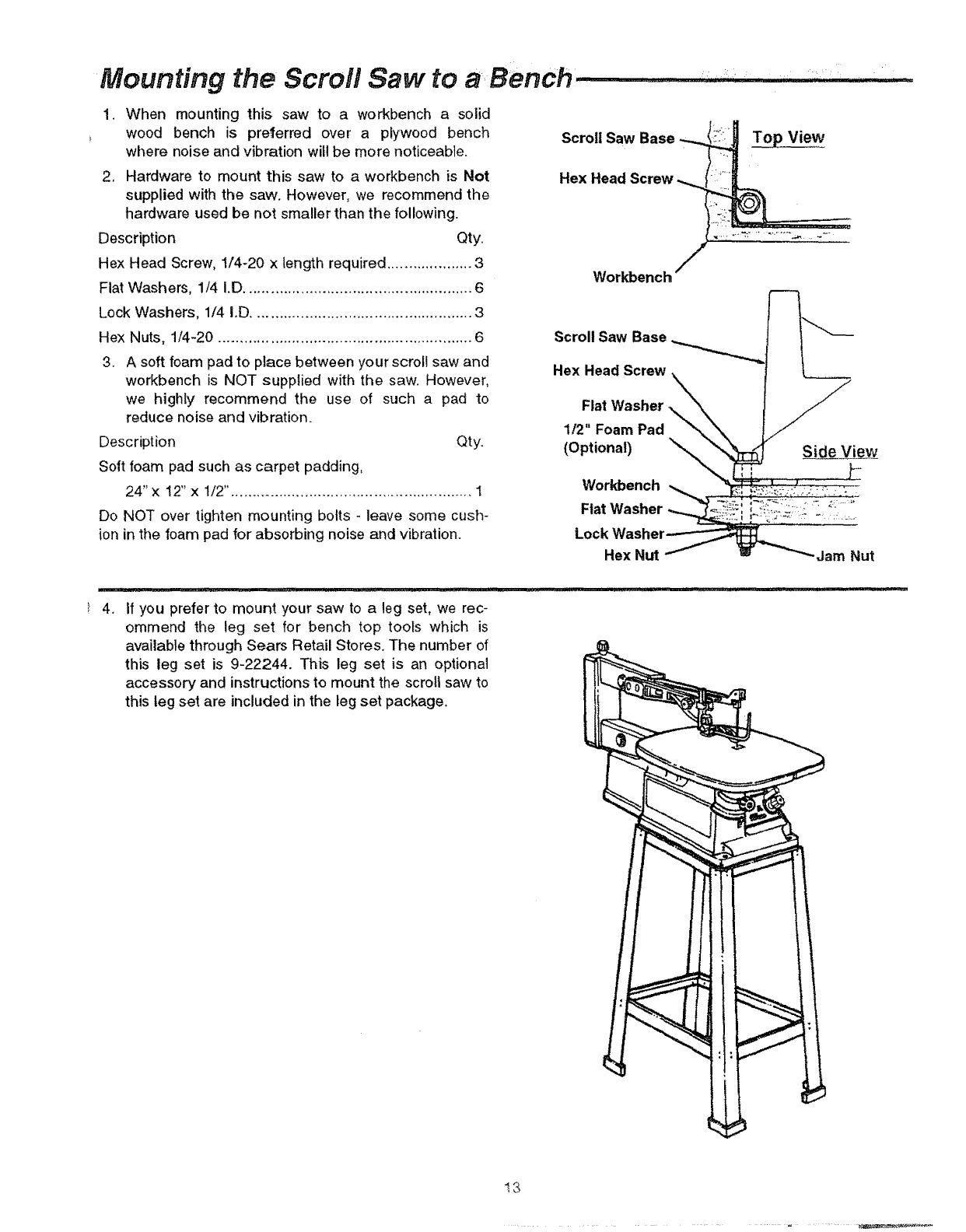 Craftsman 113236150 User Manual SCROLL SAW Manuals And Guides L1002142