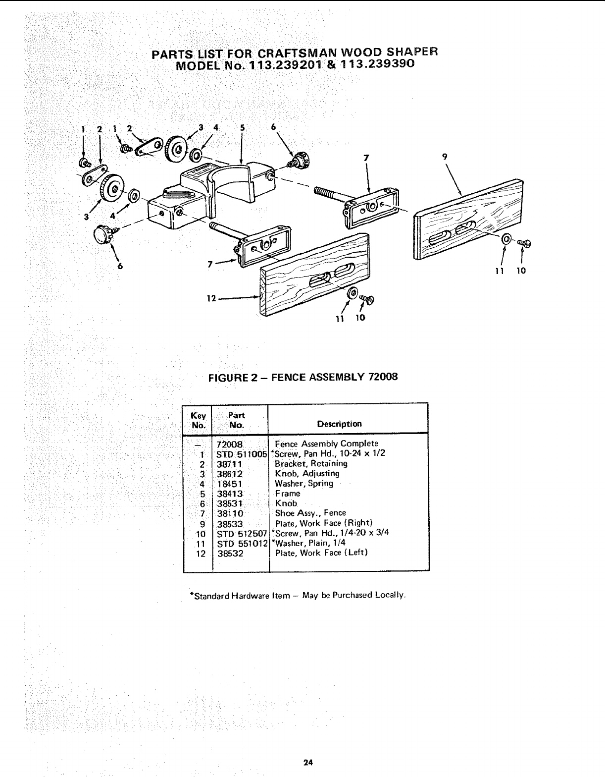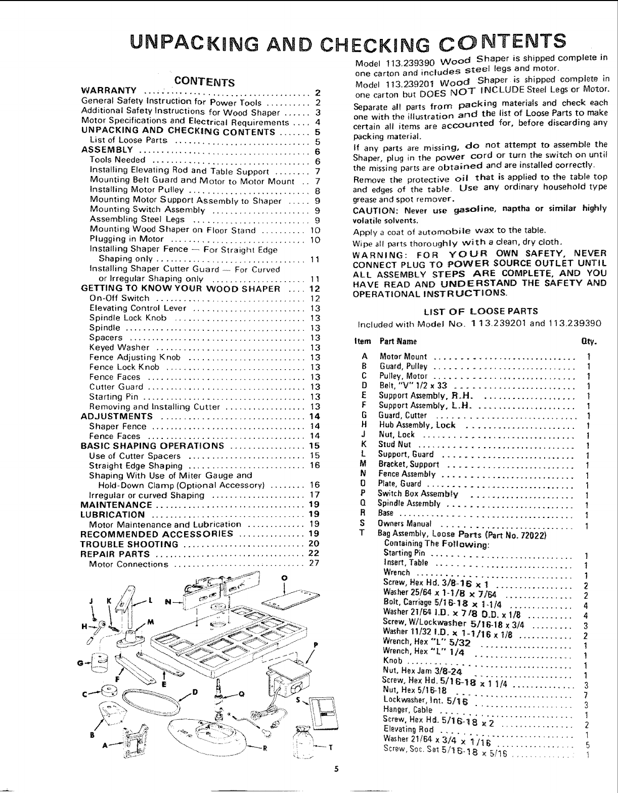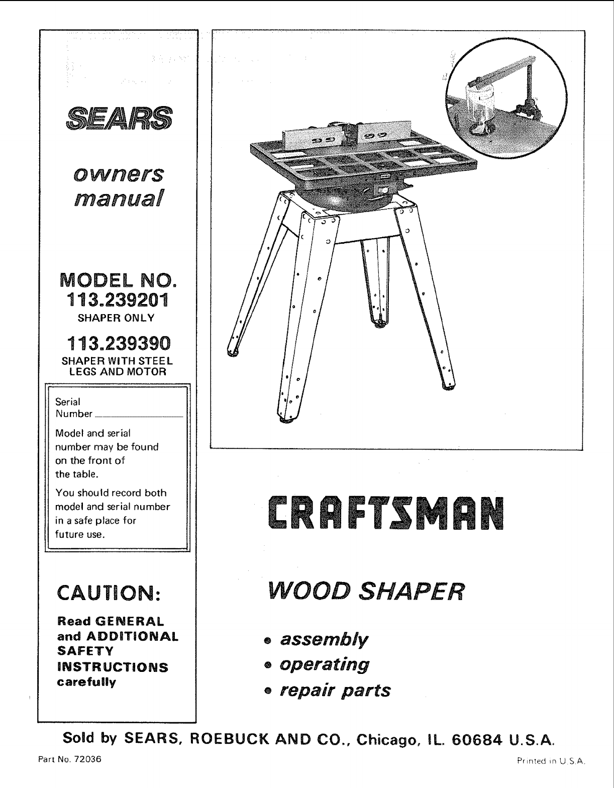 User Manual: Craftsman 113239201 113239201 CRAFTSMAN WOOD SHAPER - Manuals and Guides View the owners manual for your CRAFTSMAN WOOD SHAPER #113239201. Home:Tool Parts:Craftsman Parts:Craftsman WOOD SHAPER Manual