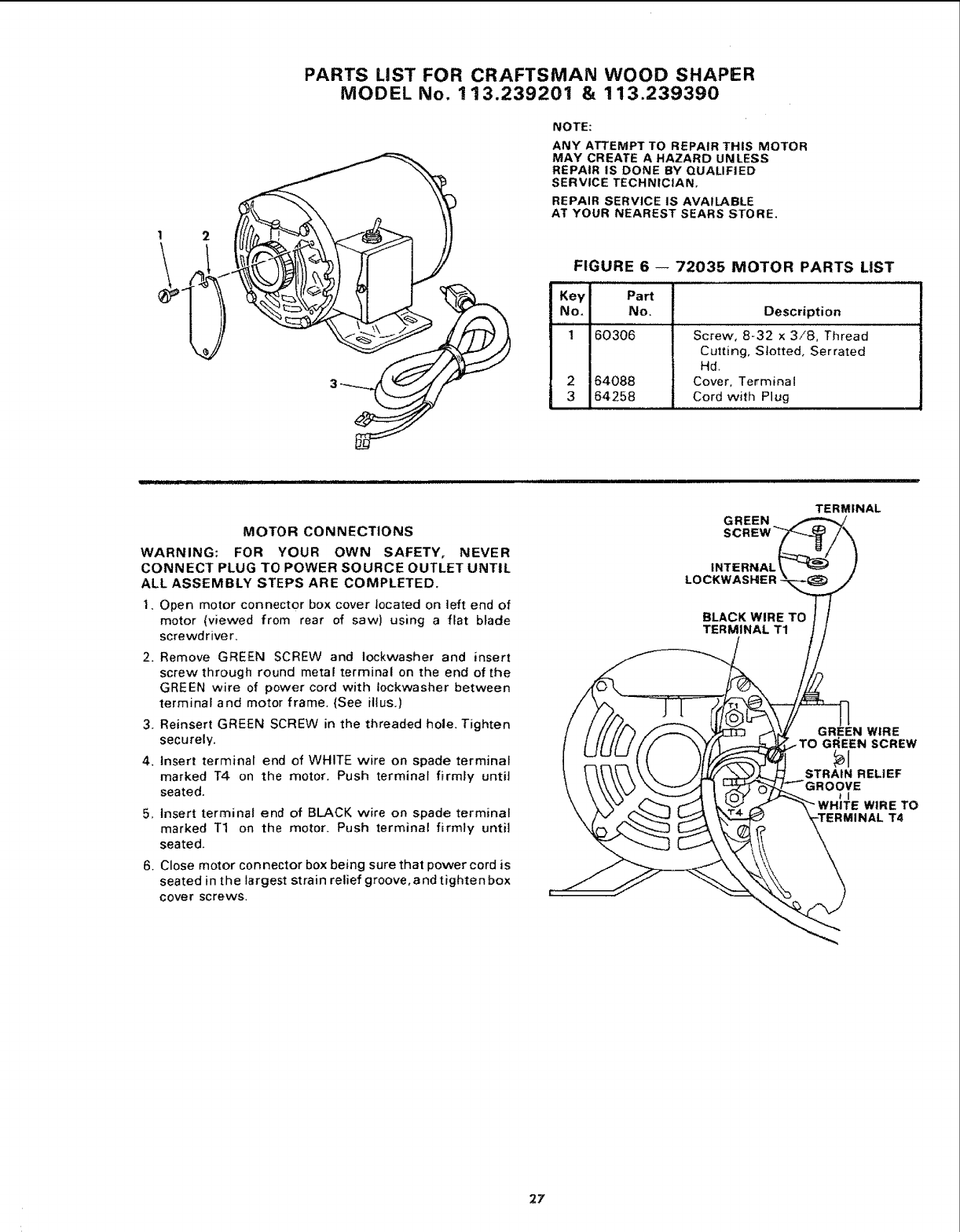FIGURE 6 -- 72035 MOTOR PARTS LIST