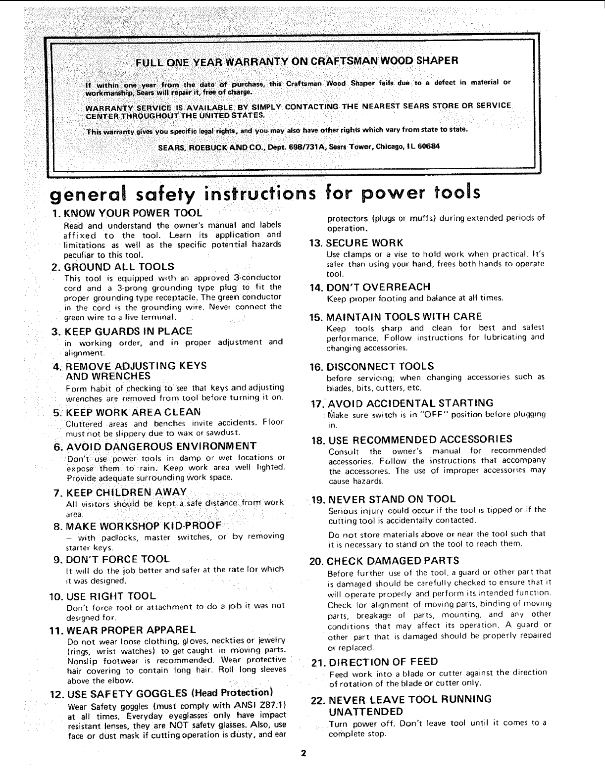 Craftsman 113239201 User Manual WOOD SHAPER Manuals And Guides L0901591