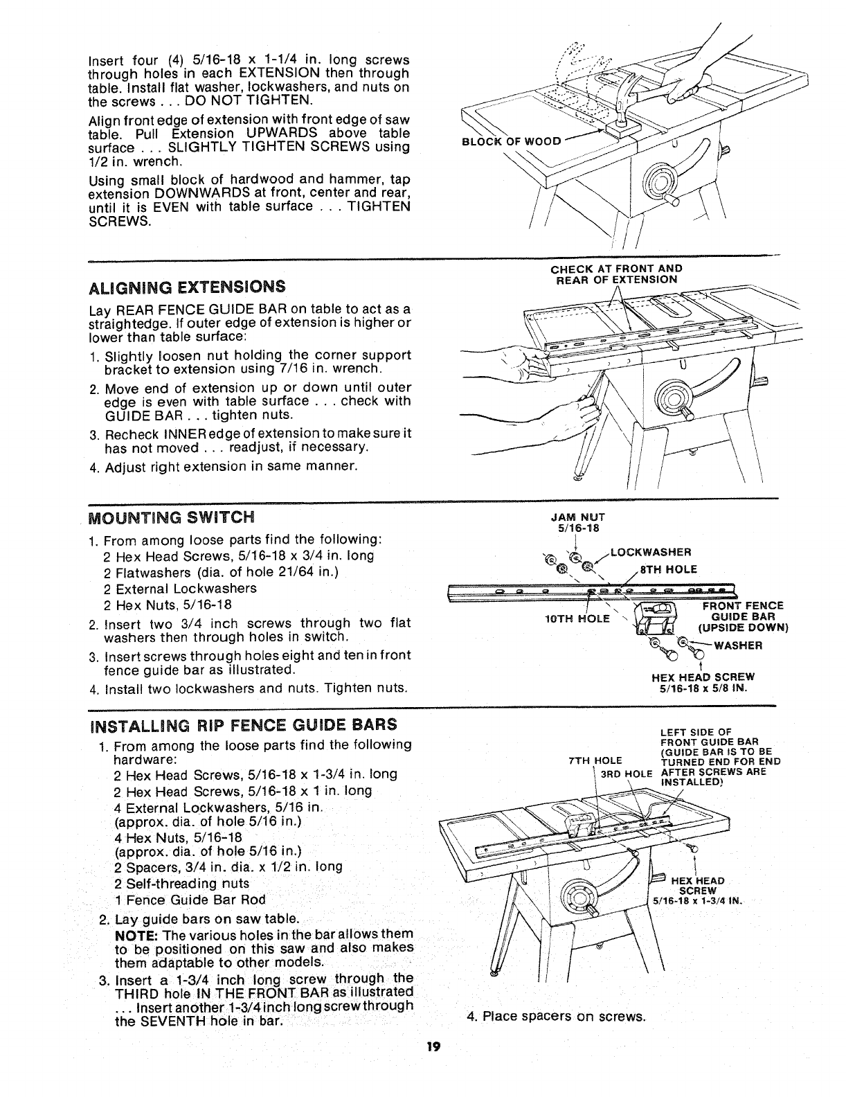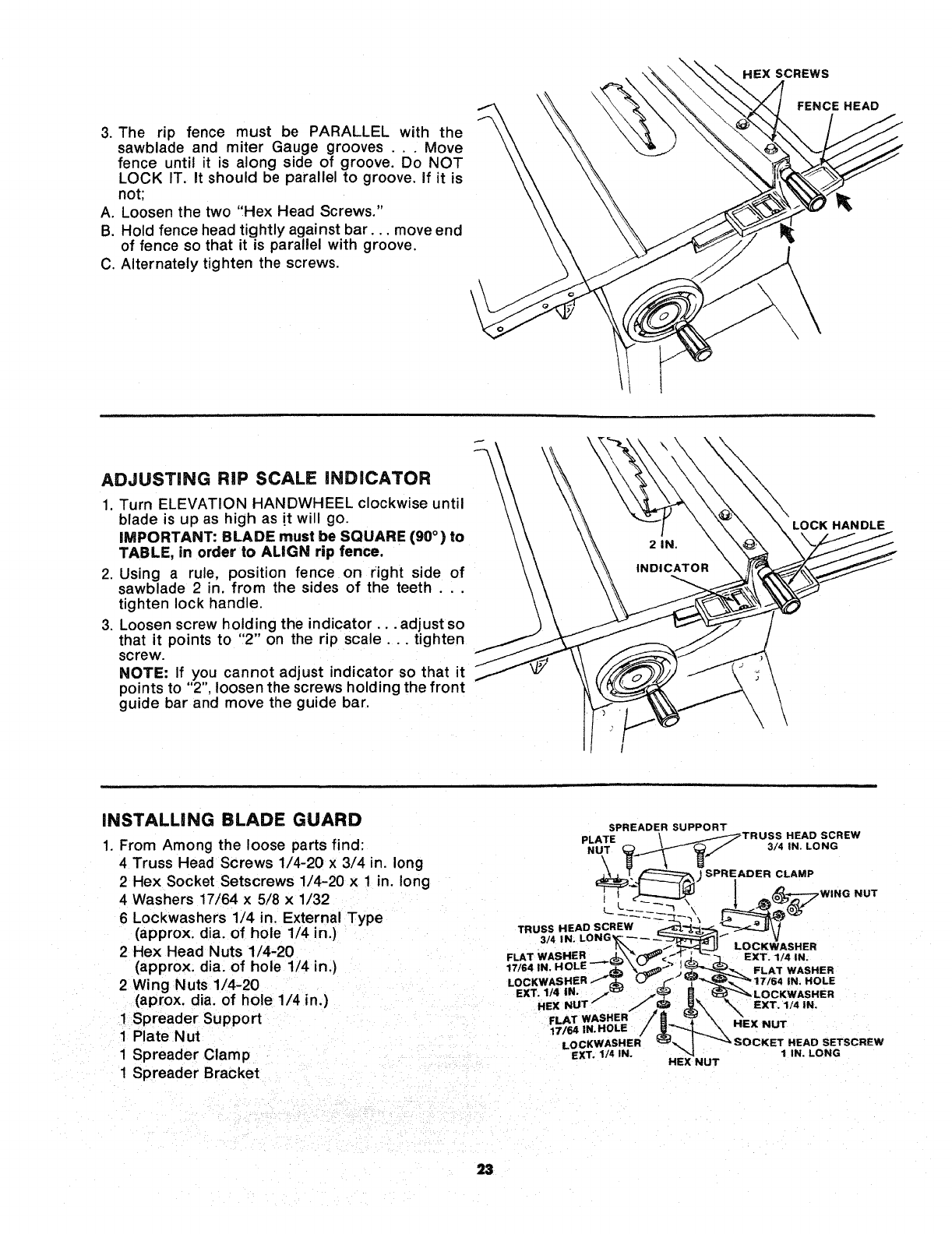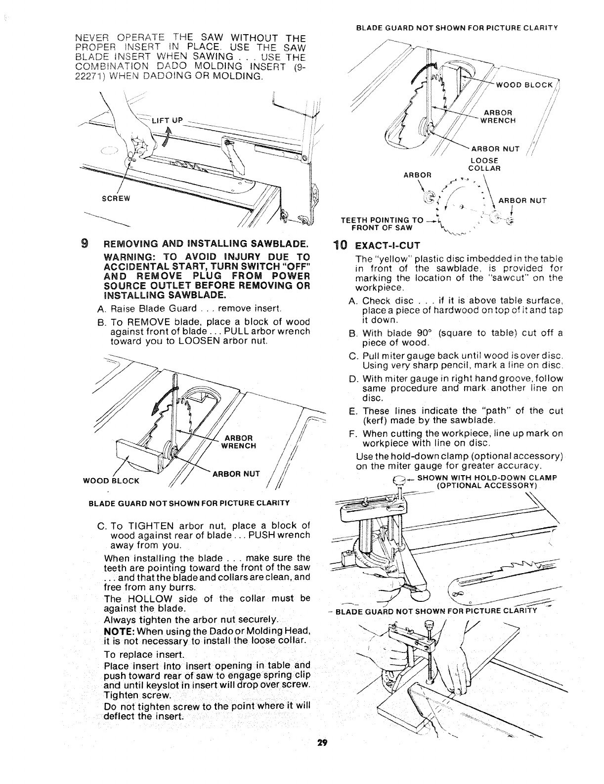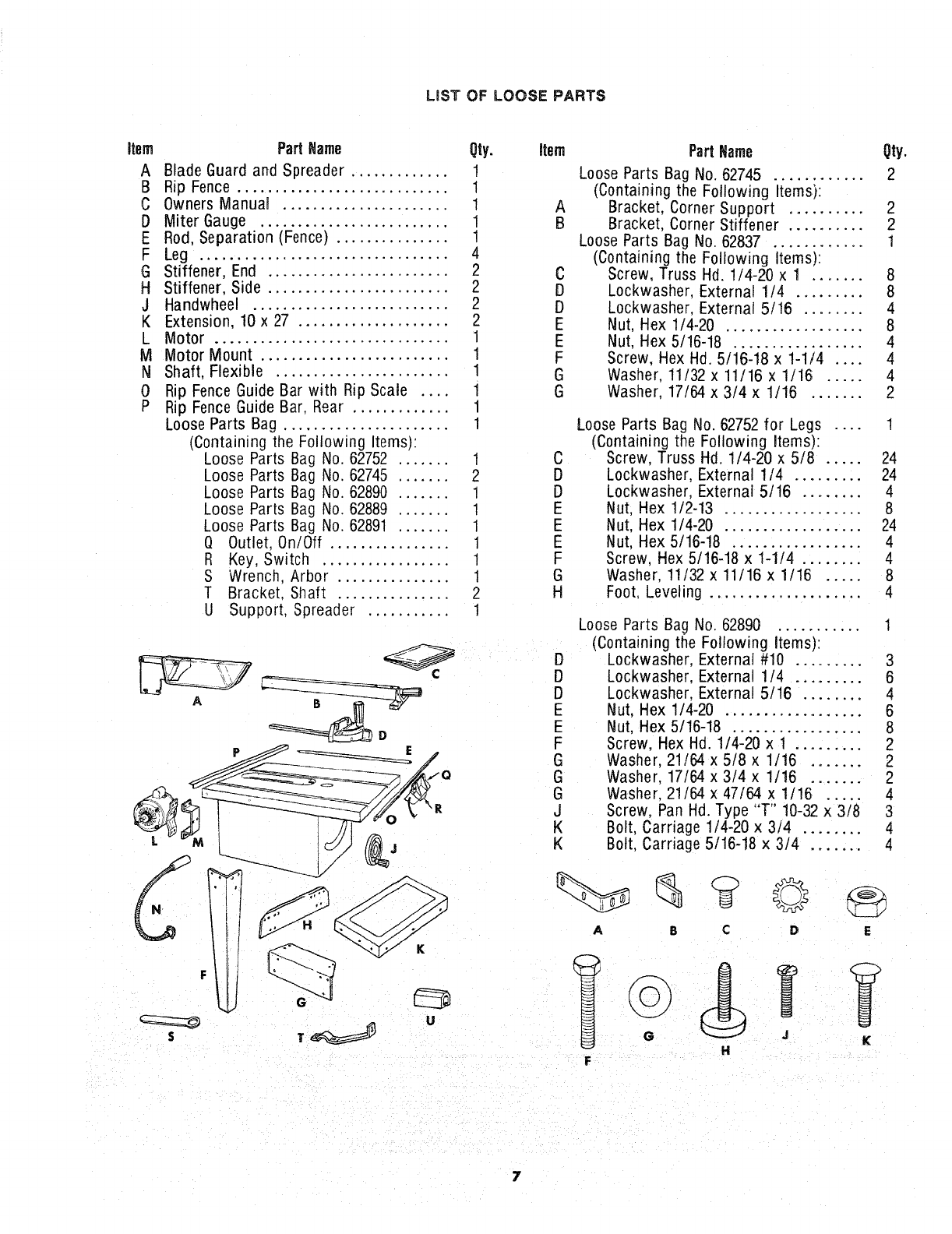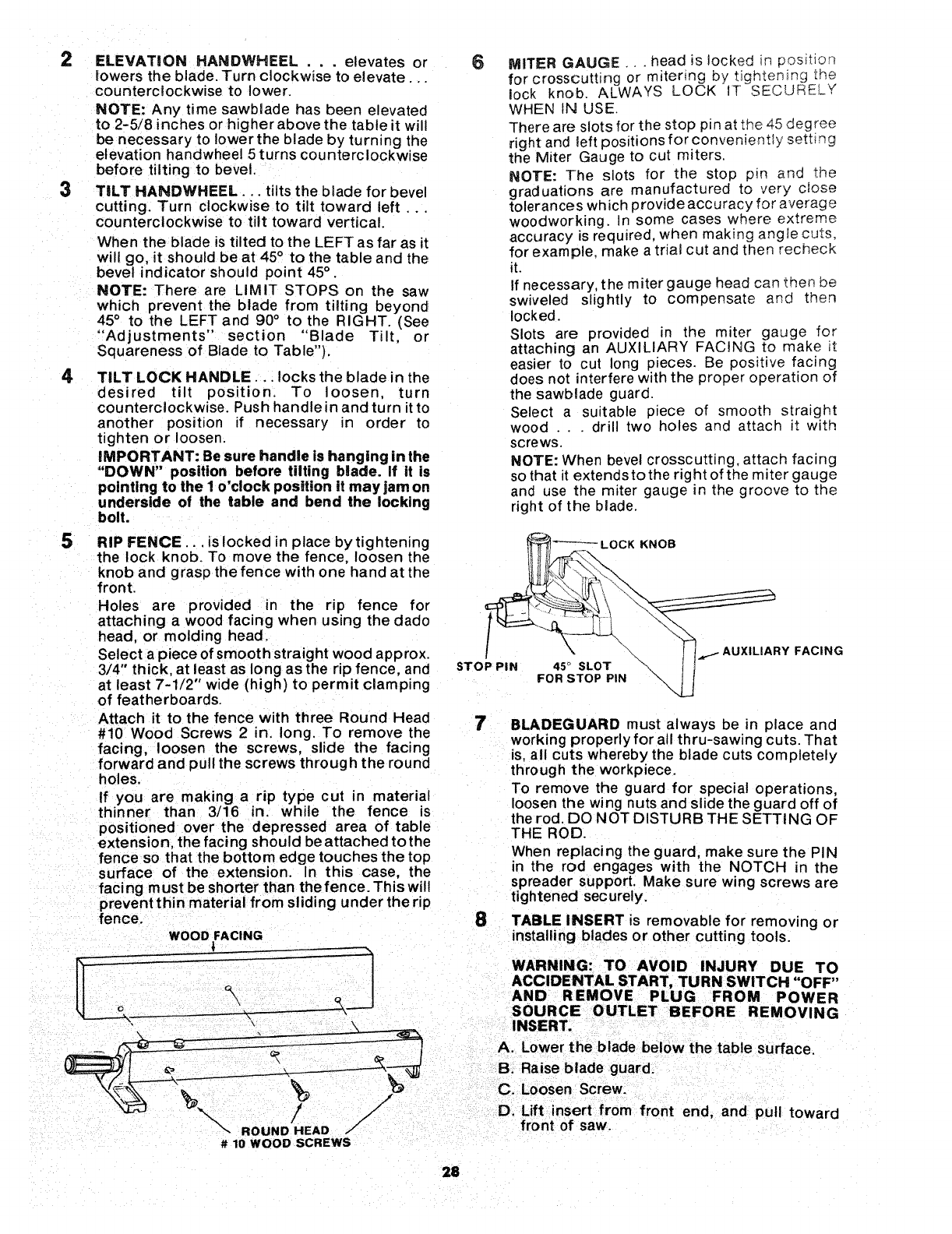 PARTS LIST FOR CRAFTSMAN 10 iNCH TABLE SAW MODEL NO, 113=241680