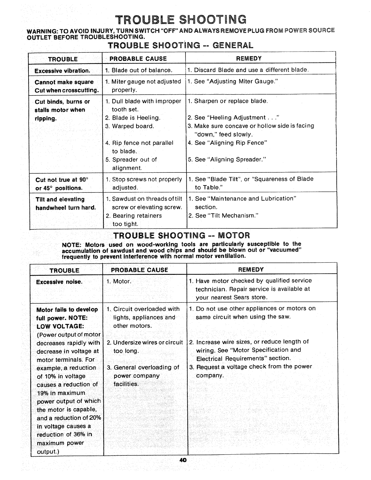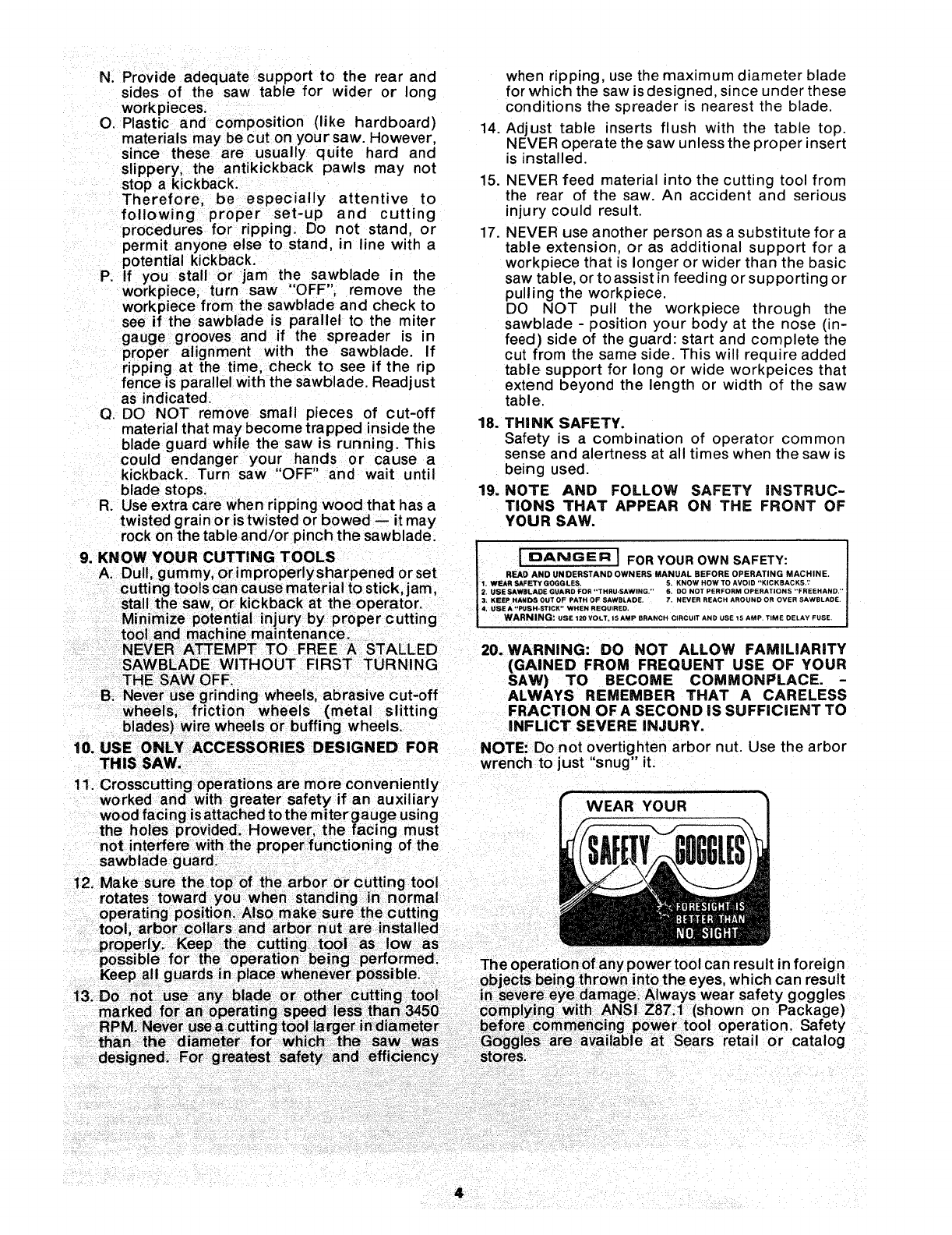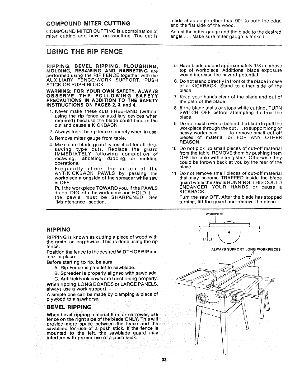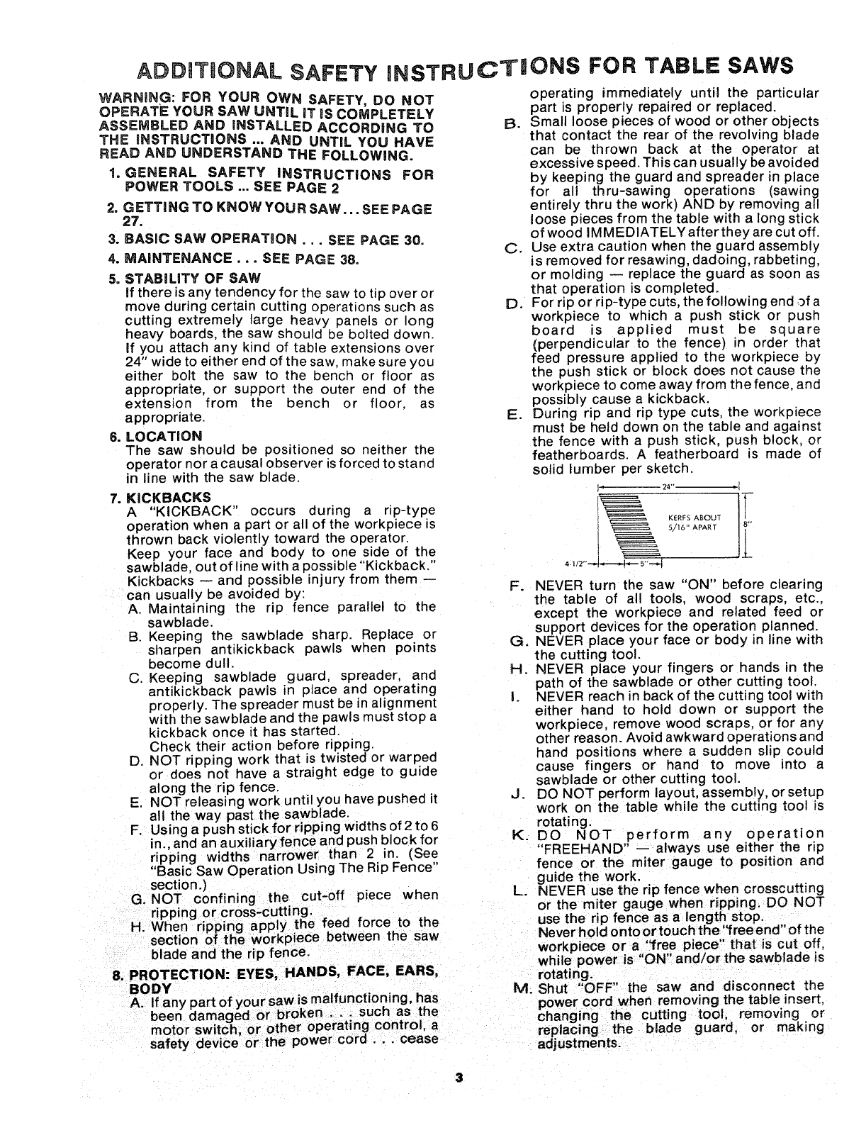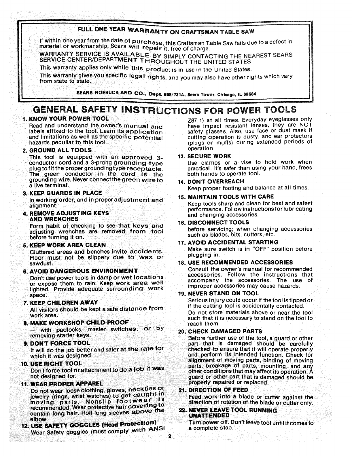 FULL ONE YEAR WARRANTY ON CRAFTSMAN TABLE SAW