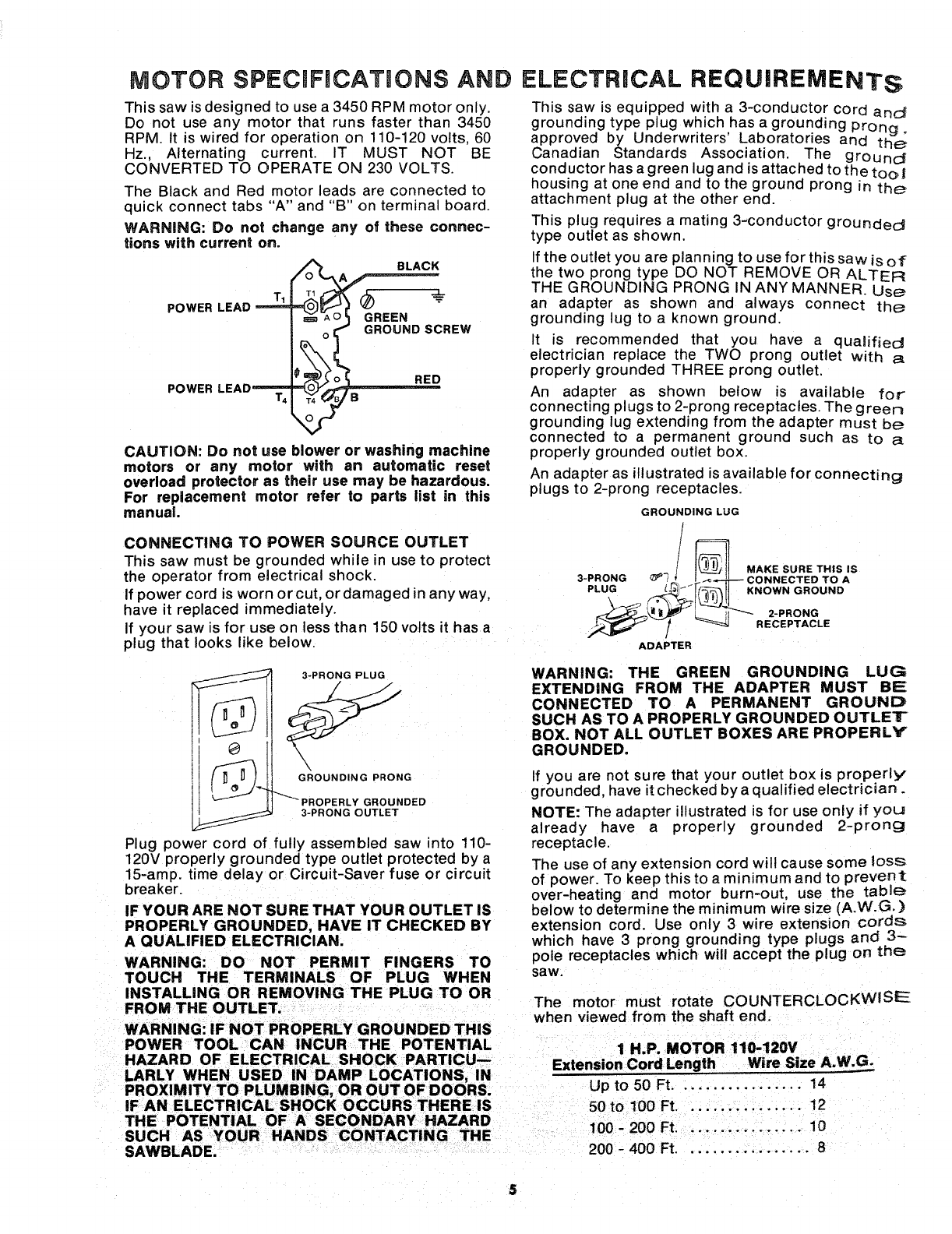 g rounding wire. Never connectthe green wire to